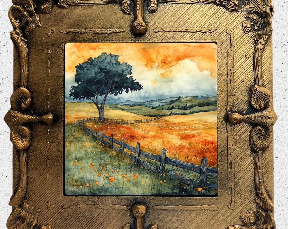 Autumn Flower Field Gold Framed Refrigerator Magnet