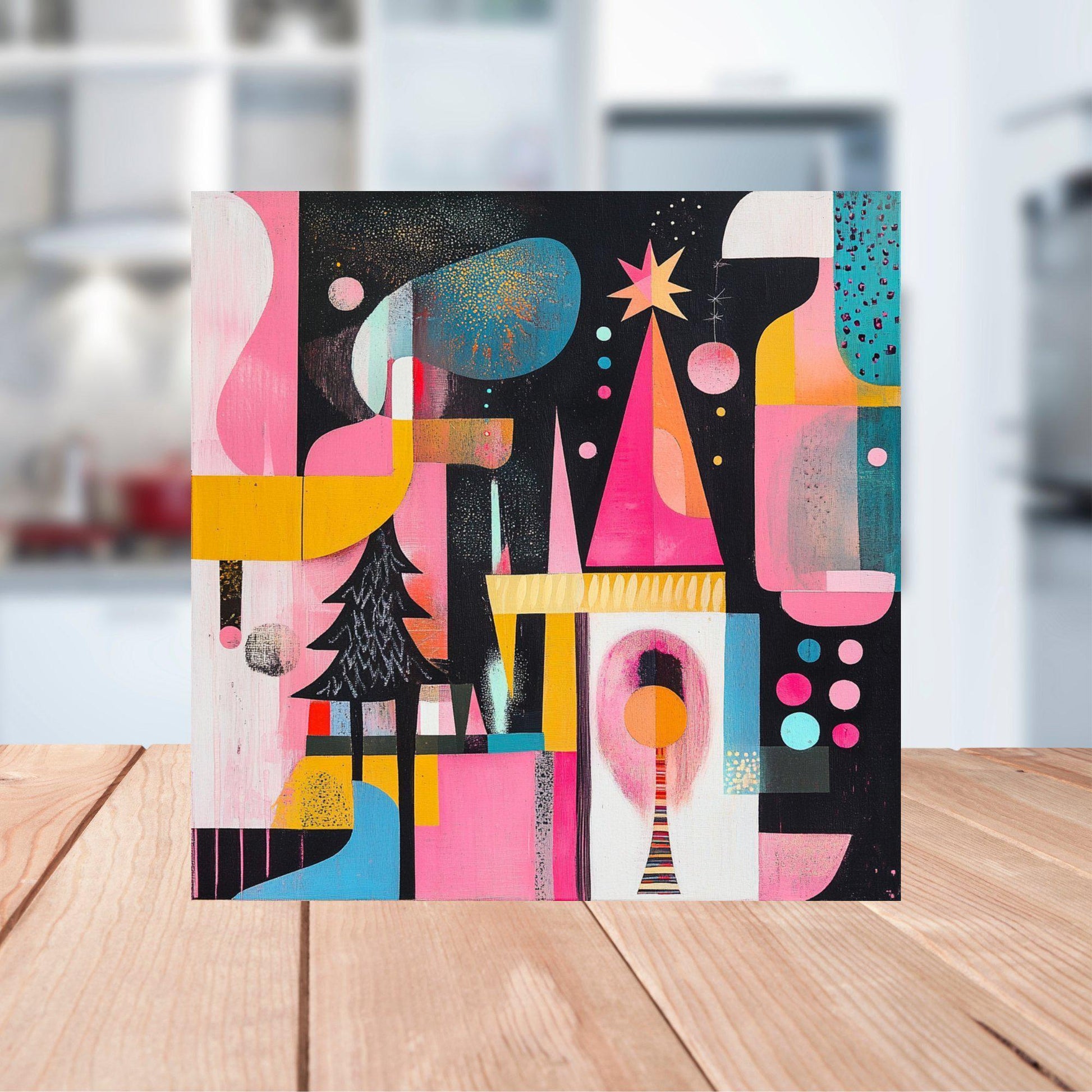 Abstract Christmas Scandinavian Fridge Magnet 2-inch Strong Refrigerator Magnet Kitchen Decor Dopamine Ceramic Tile Art Gift Her