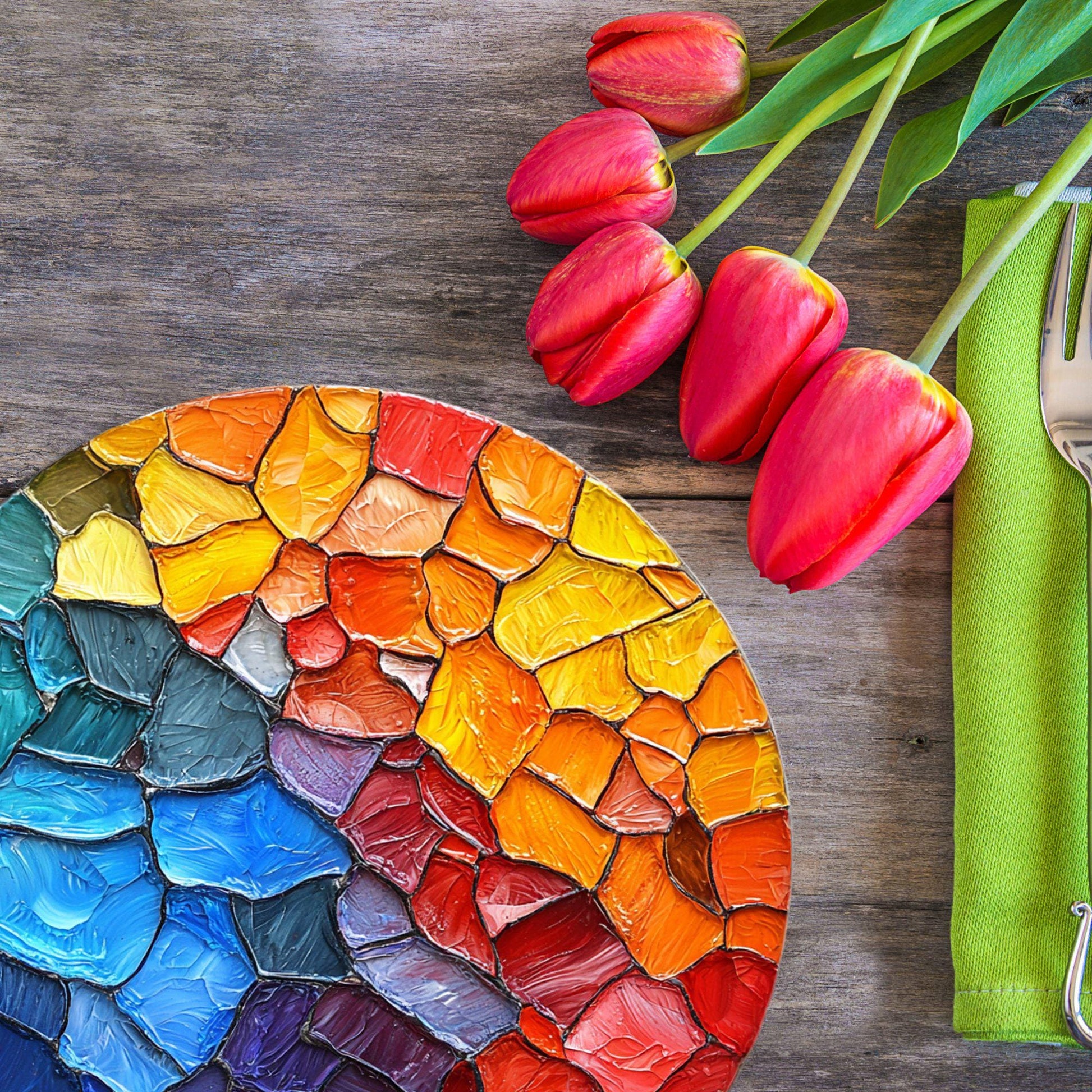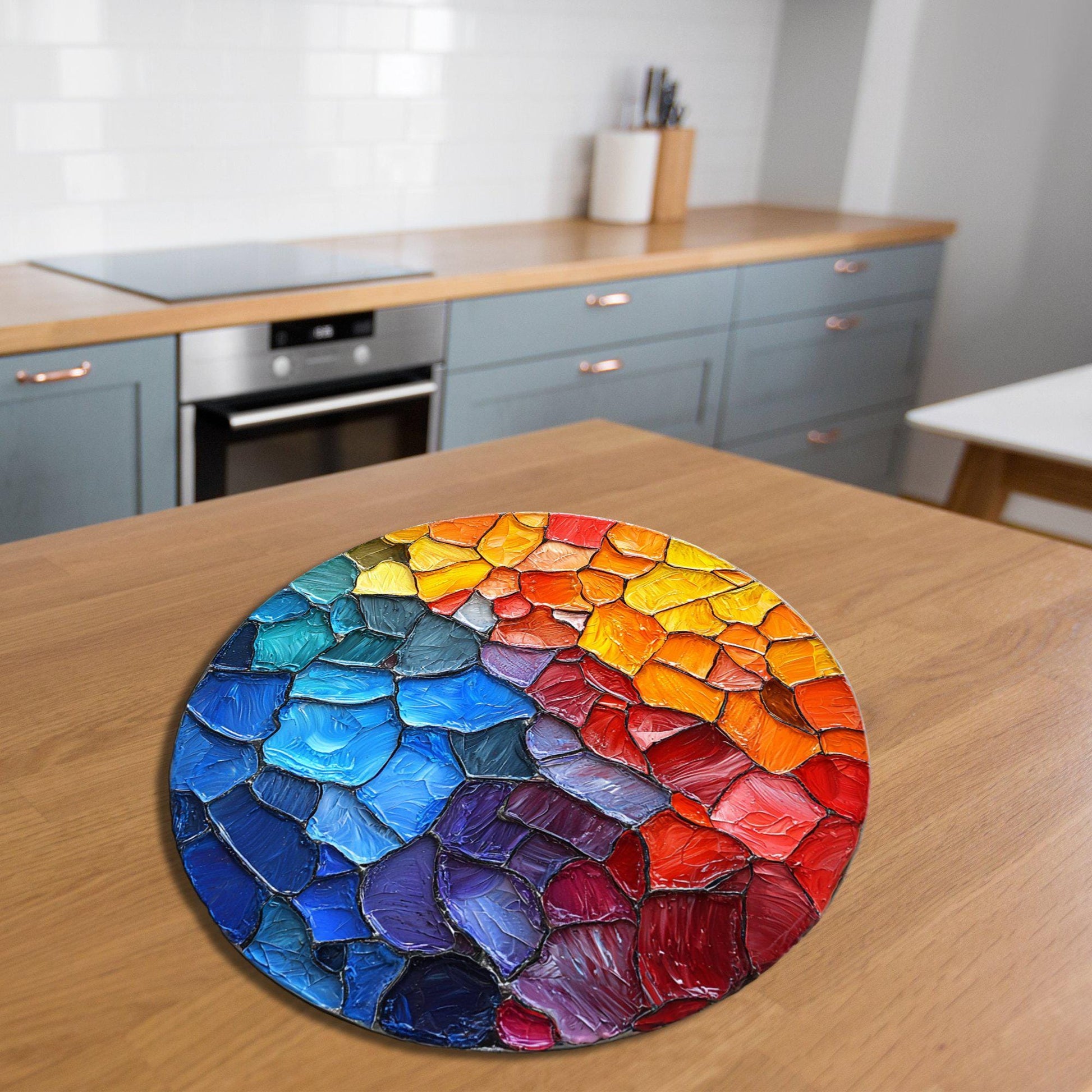 Abstract Colorful Glass Cutting Board Trivet Hot Plate Charcuterie Board Gift for Her Mom Christmas Housewarming