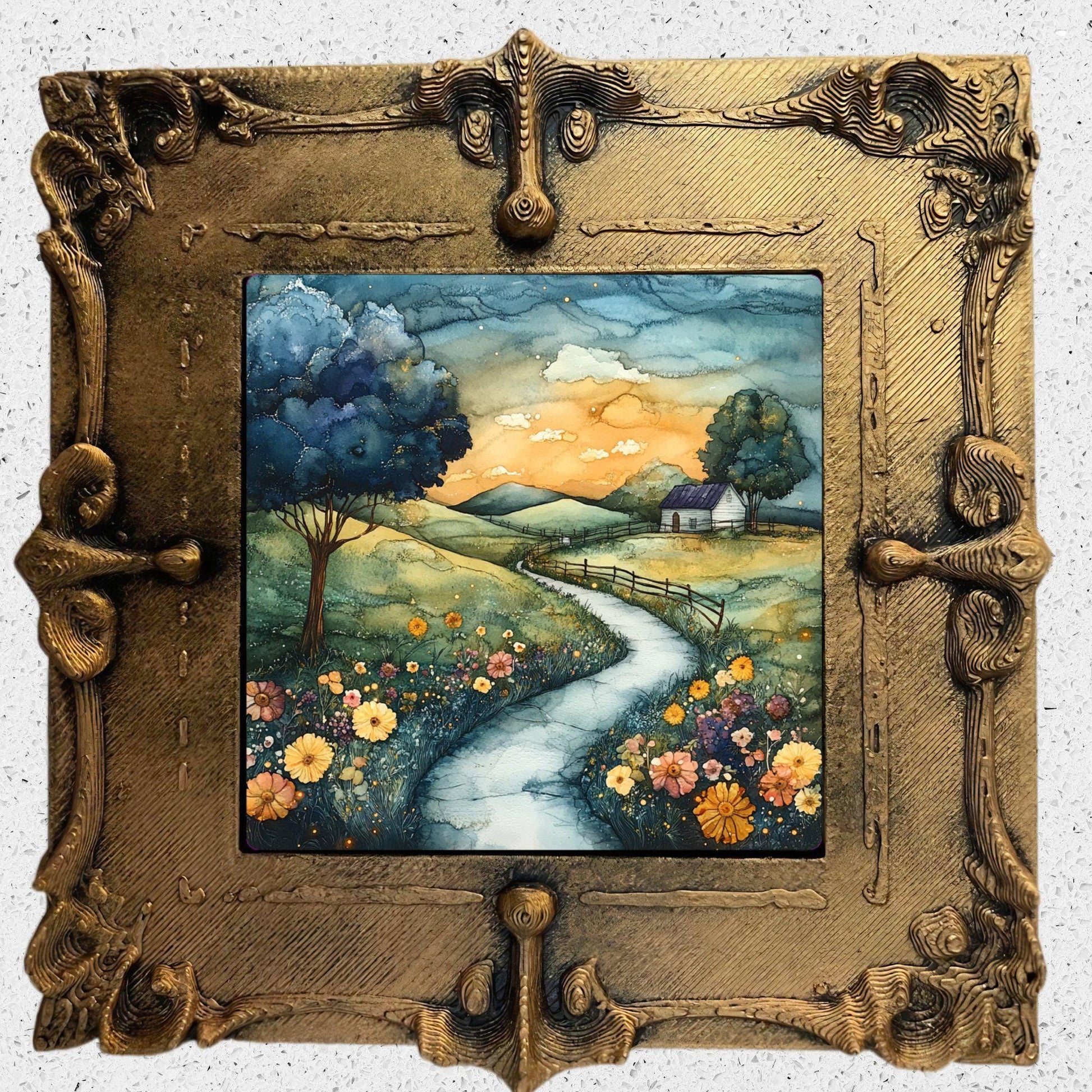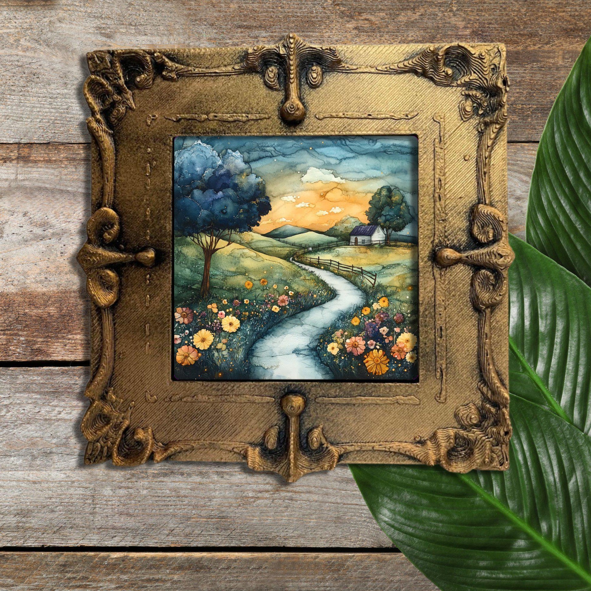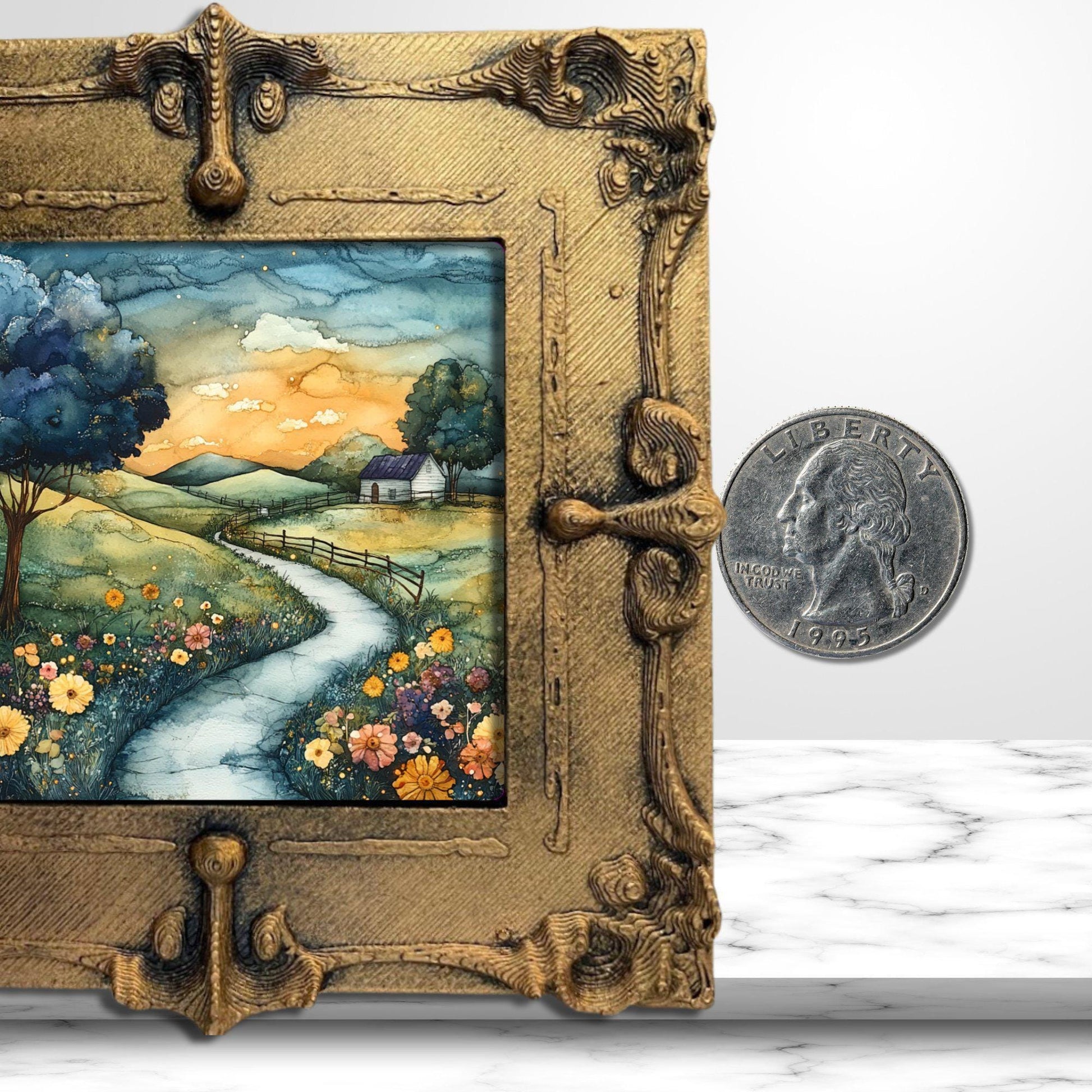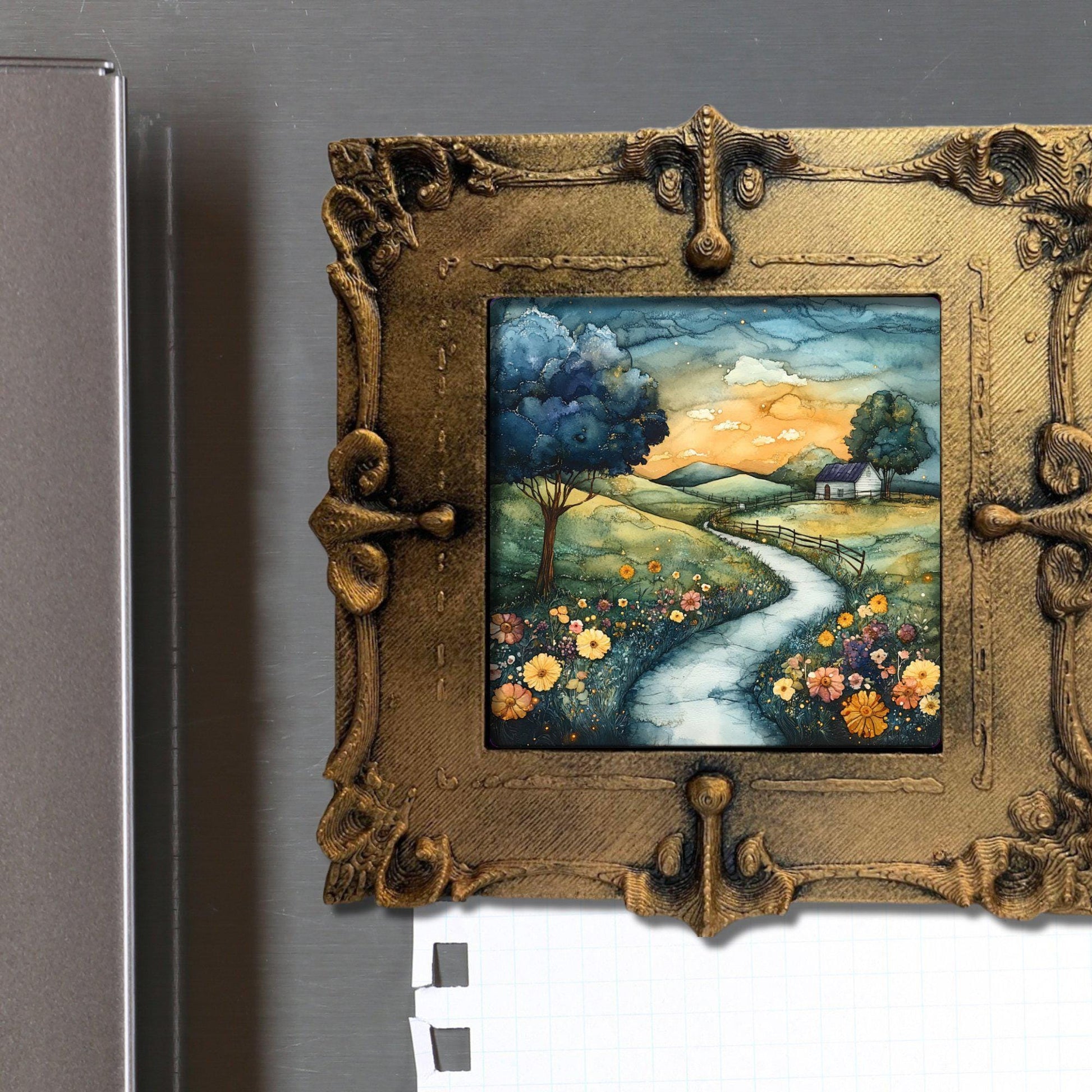 Antique Countryside Gold Framed Refrigerator Magnet, Mini Art, Grand Millennial Style, Artful Kitchen Decor, Gift for Her fridgescaping