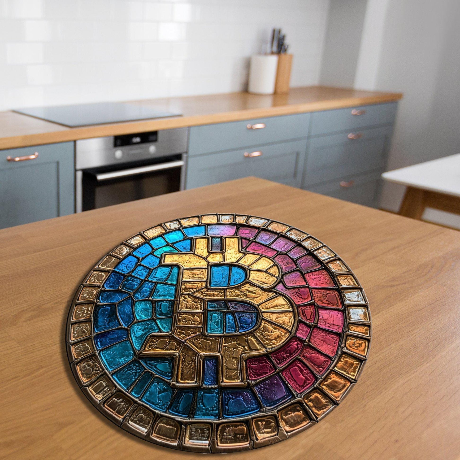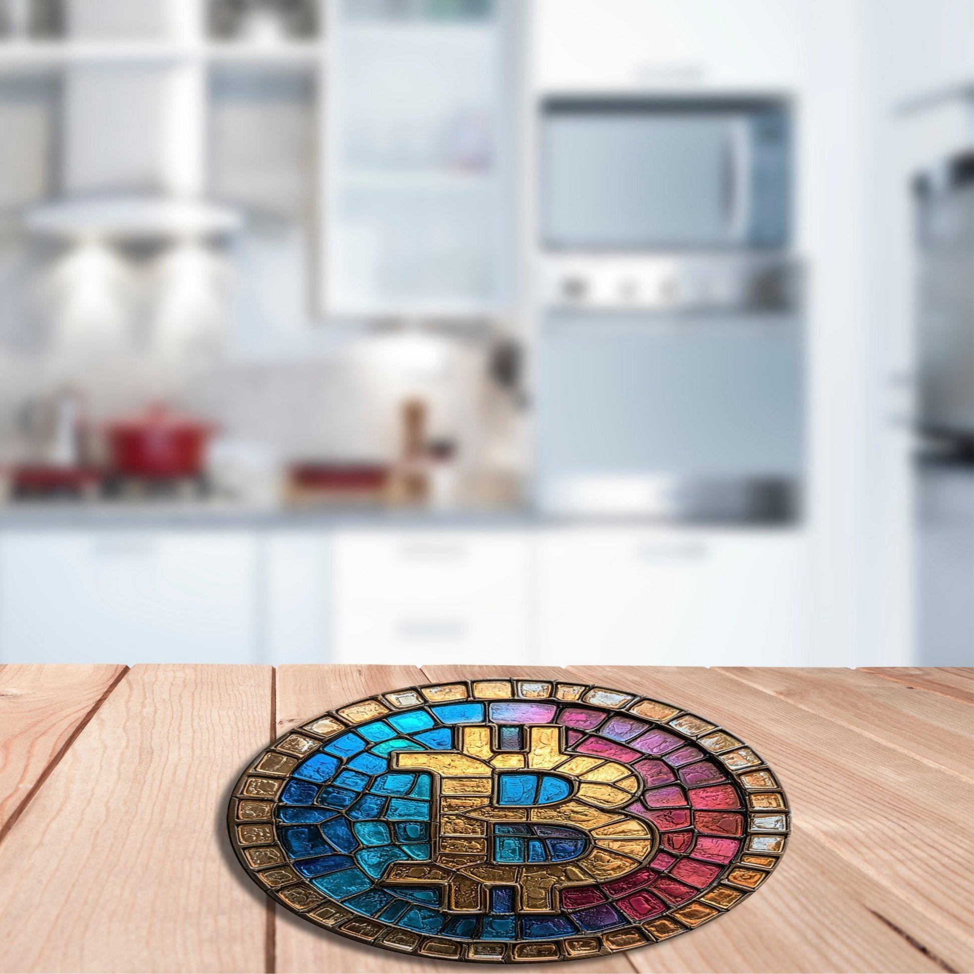 Bitcoin Glass Cutting Board 8-inch Round Trivet Charcuterie Board Gift for Her Mom Kitchen Decor