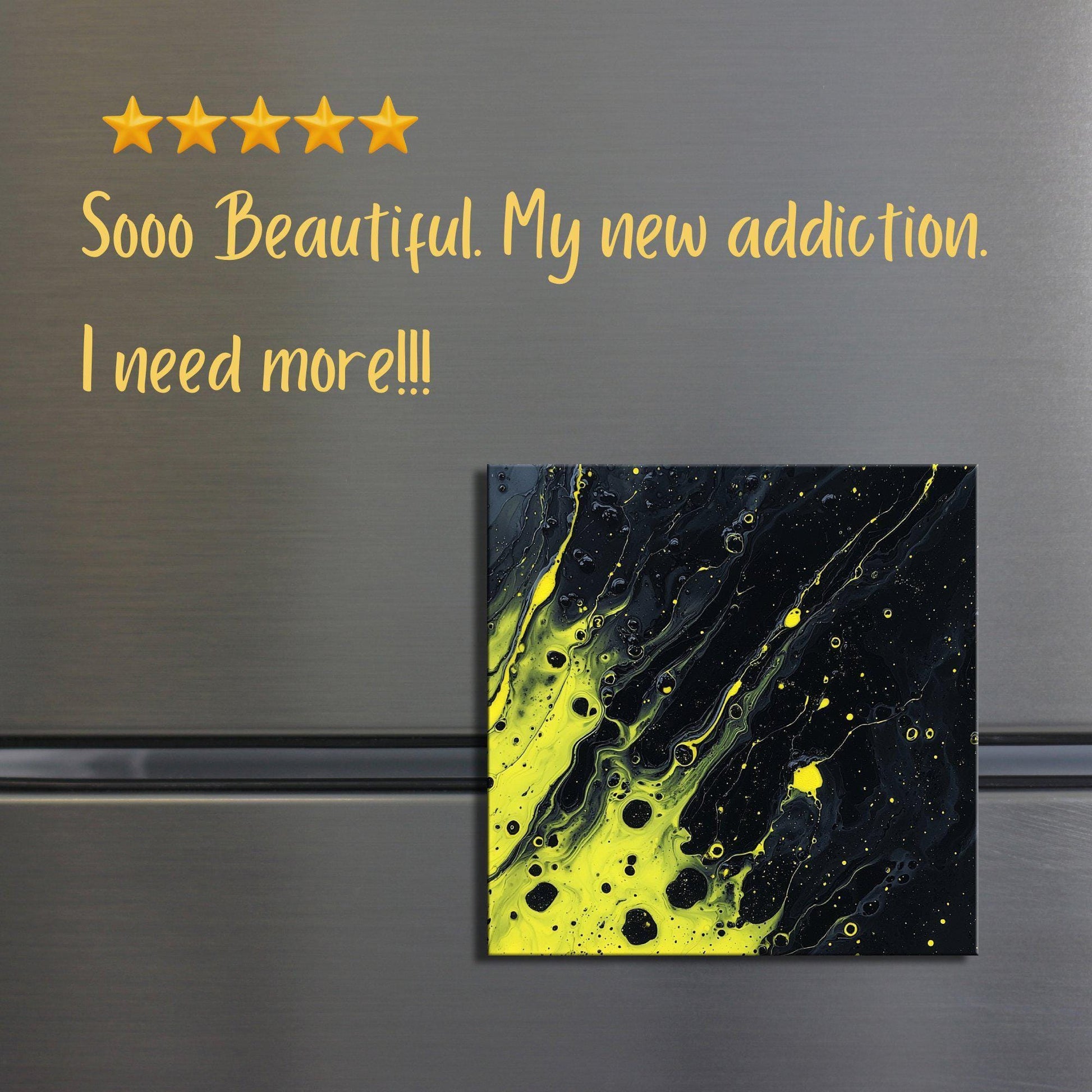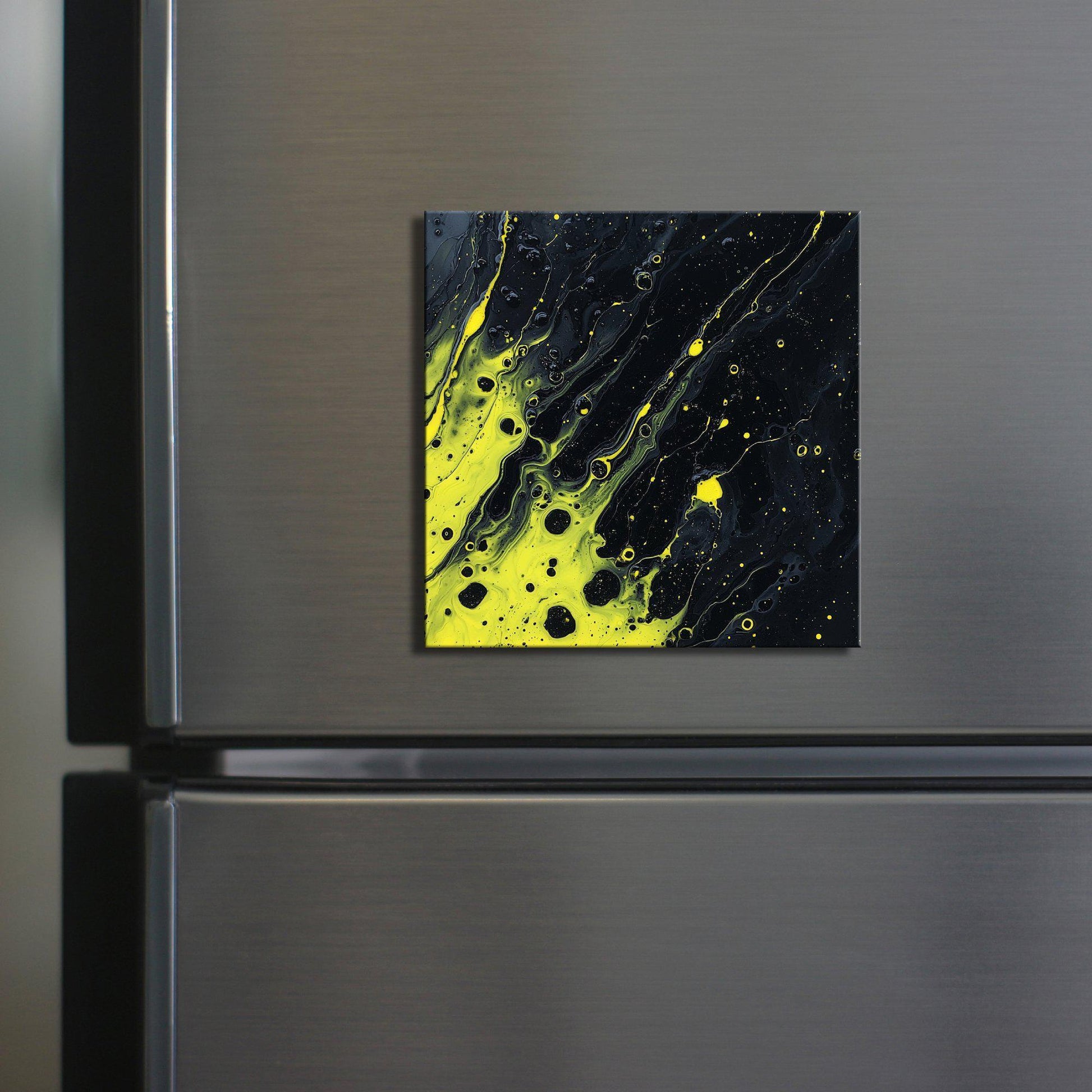 Black and Neon Yellow Fridge Magnet 2-inch Strong Refrigerator Magnet Kitchen Decor Dopamine Ceramic Tile Art Gift for Her fridgescaping