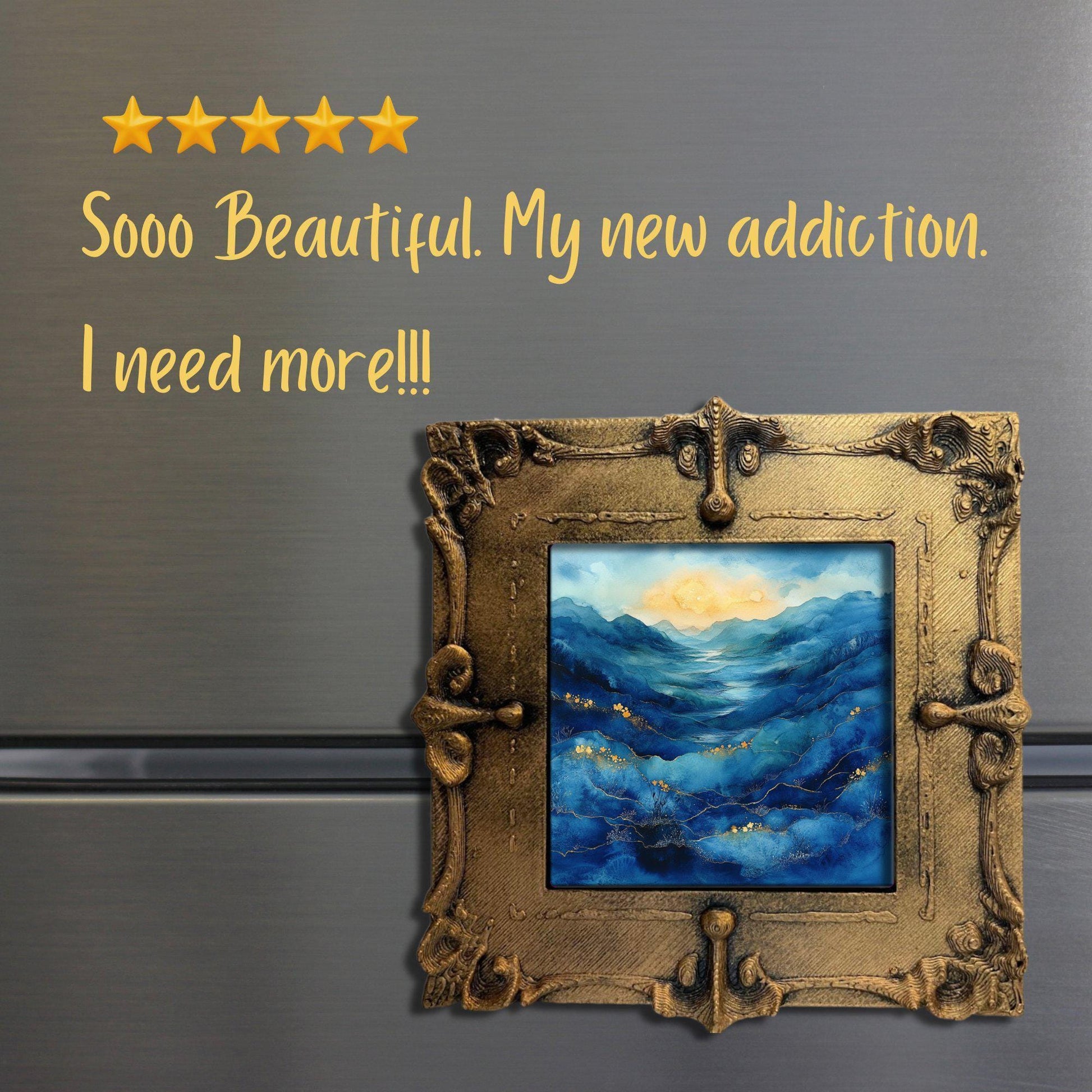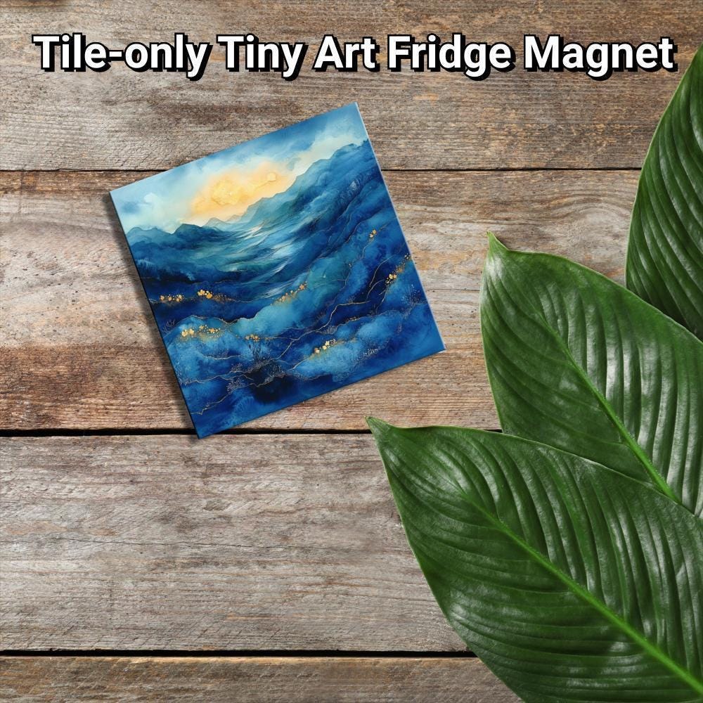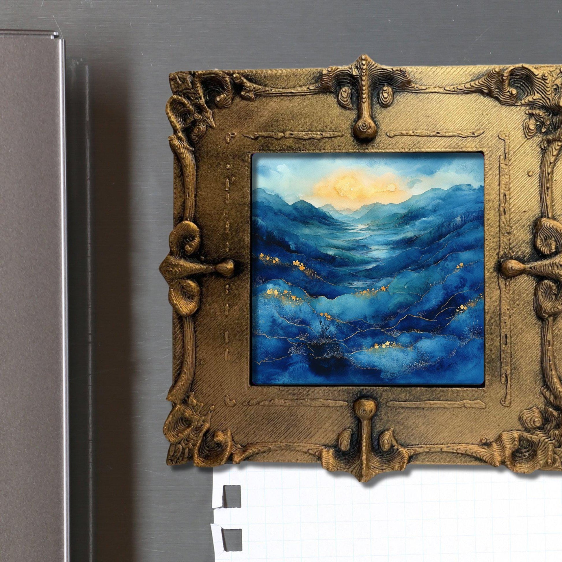 Blue Moors Alcohol Ink Gold Framed Refrigerator Magnet, Mini Art, Grand Millennial Style, Artful Kitchen Decor, Gift for Her fridgescaping