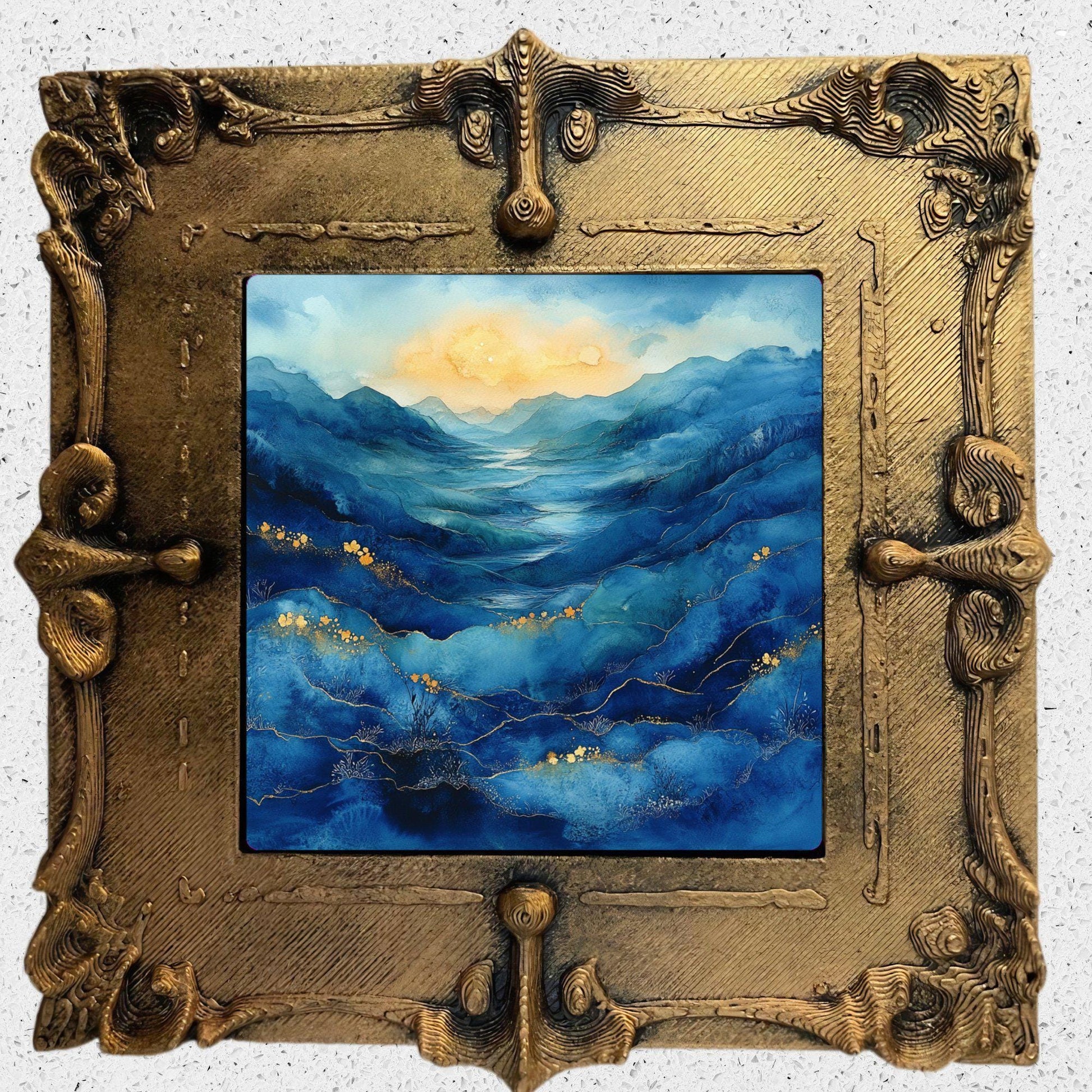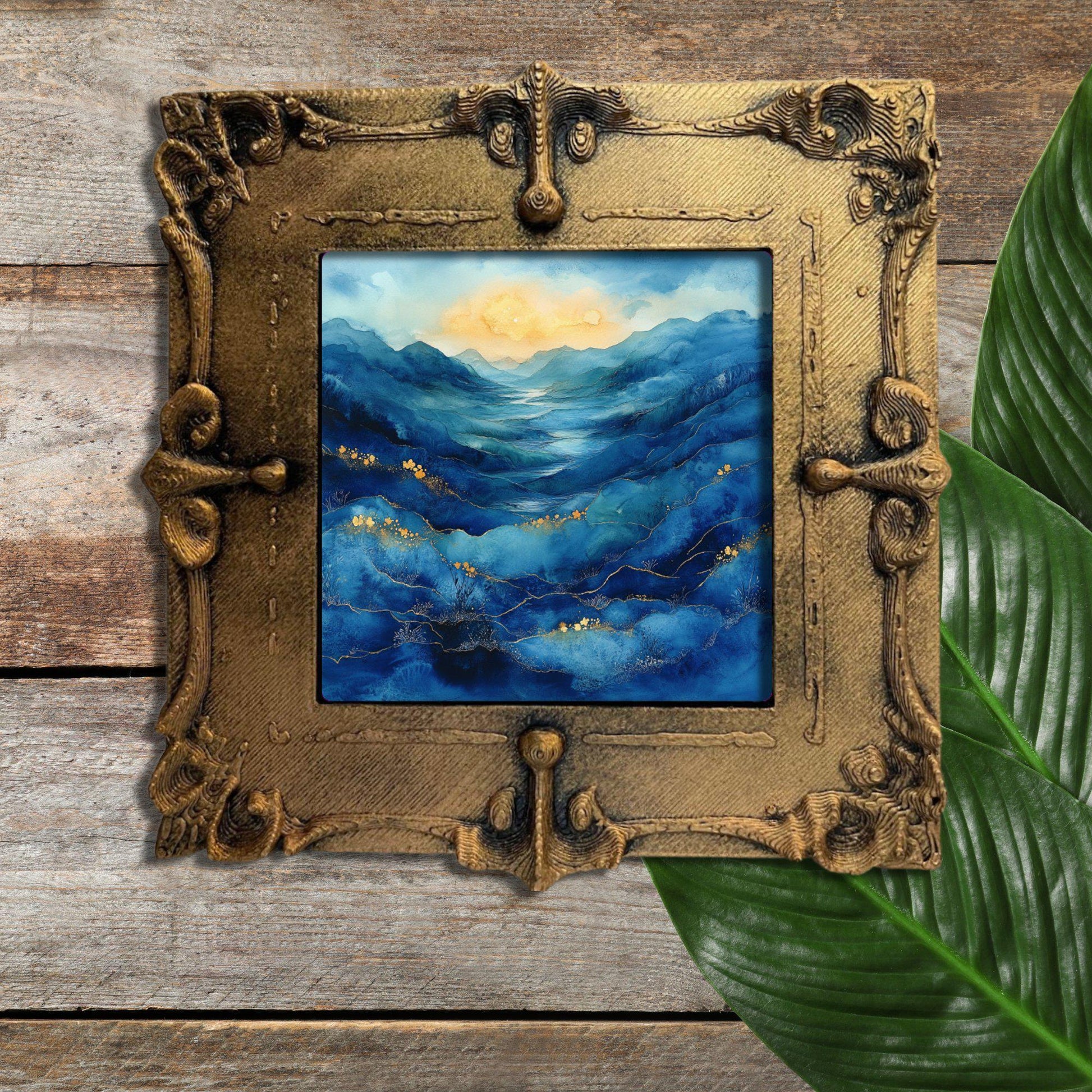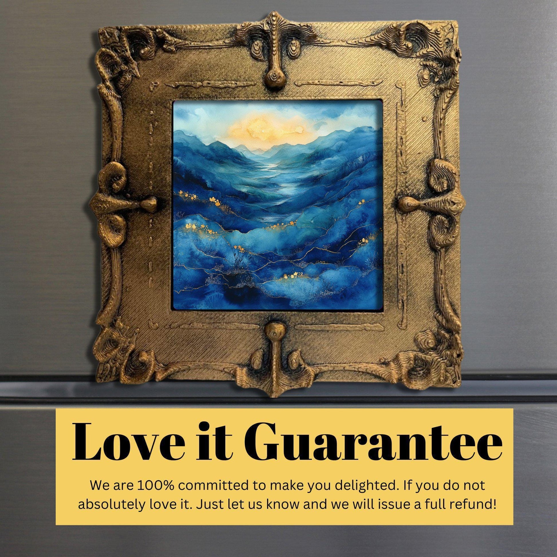 Blue Moors Alcohol Ink Gold Framed Refrigerator Magnet, Mini Art, Grand Millennial Style, Artful Kitchen Decor, Gift for Her fridgescaping