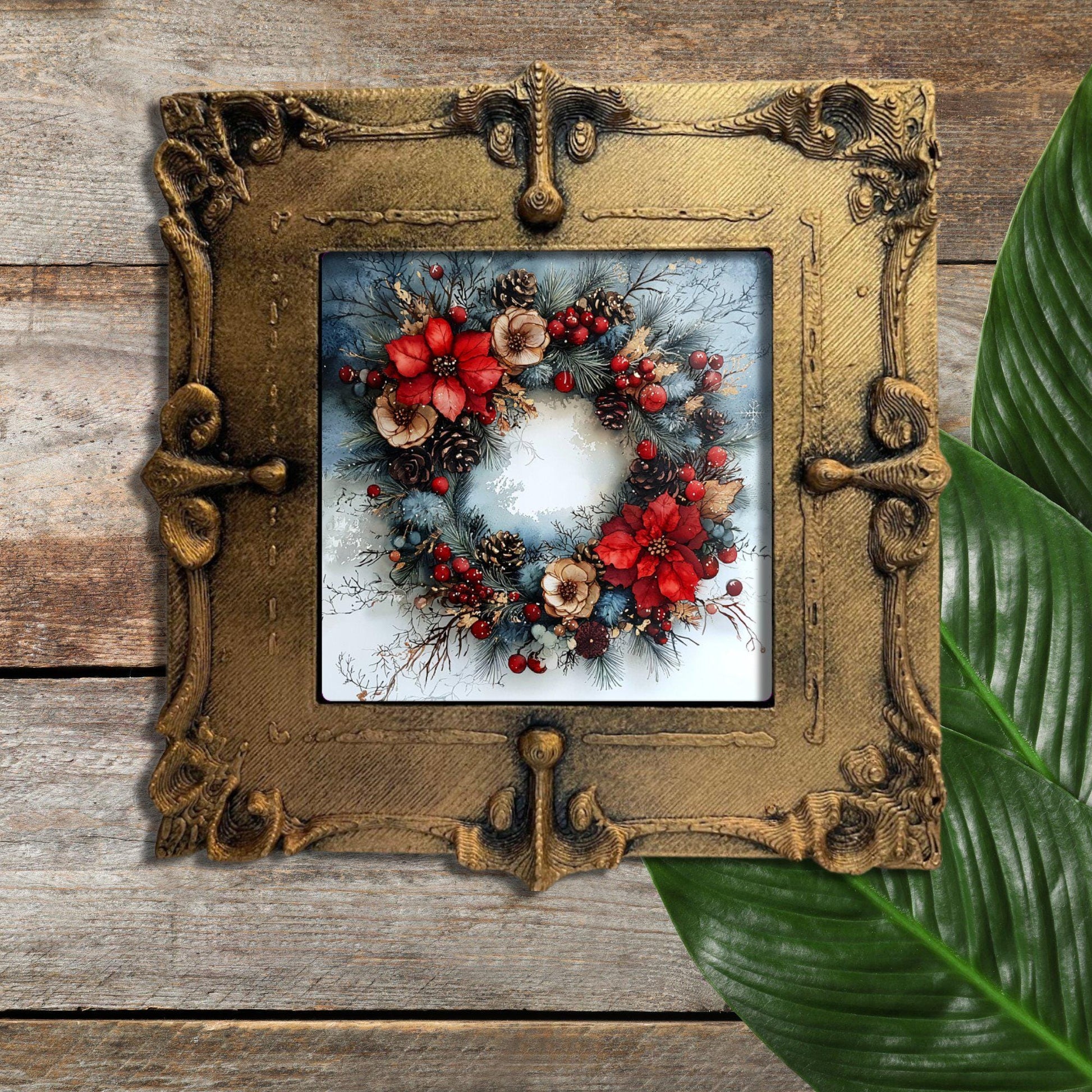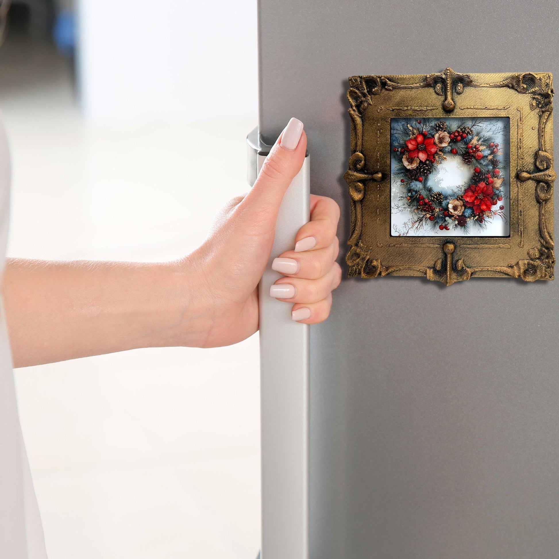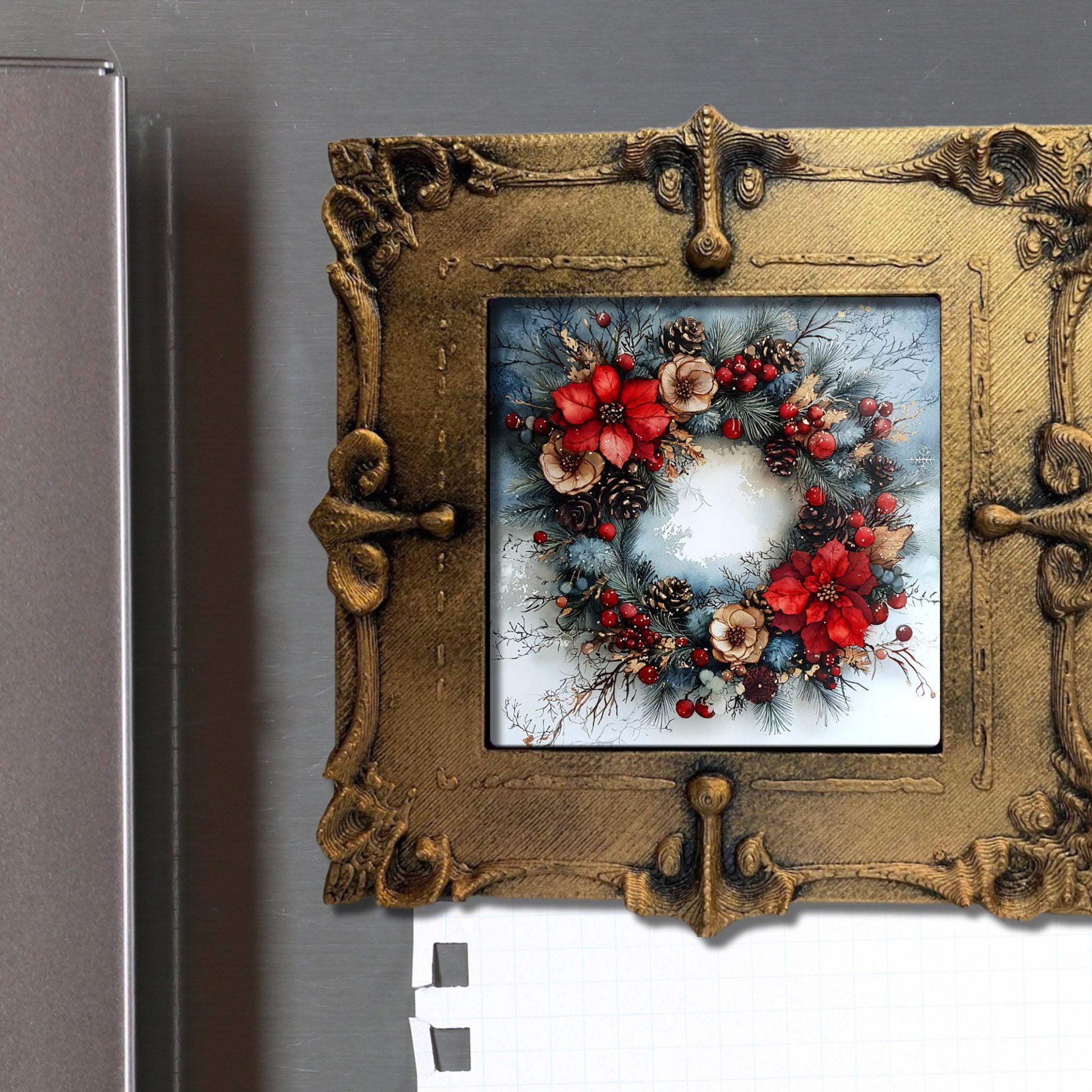 Boho Chic Christmas Tiny Art Fridge Magnet Gold Framed Fridgescaping Art Picture Gallery Tiny Art Gift for Her Wife Mom