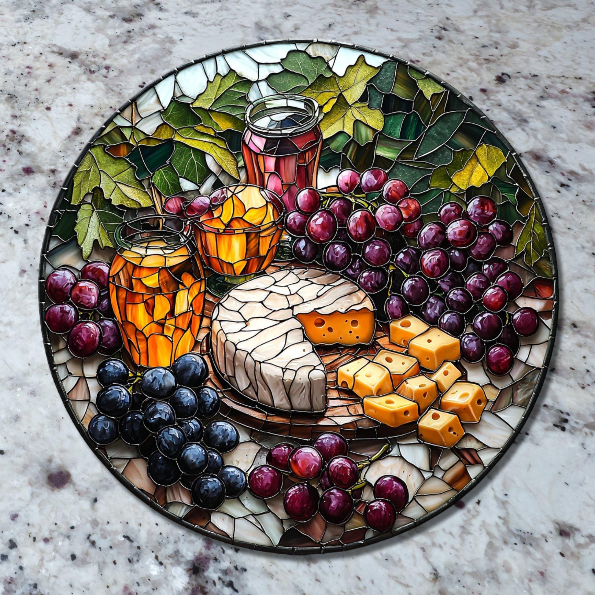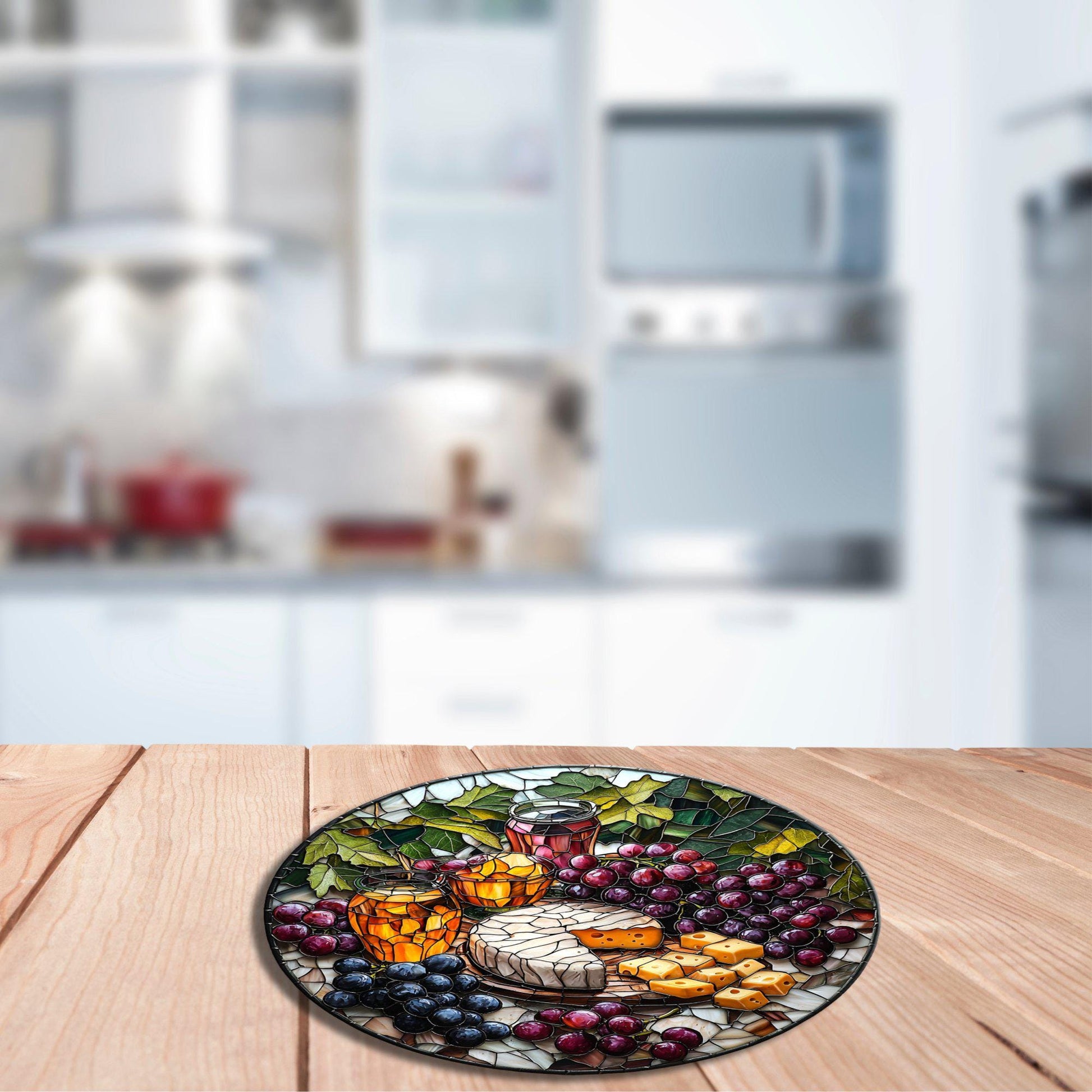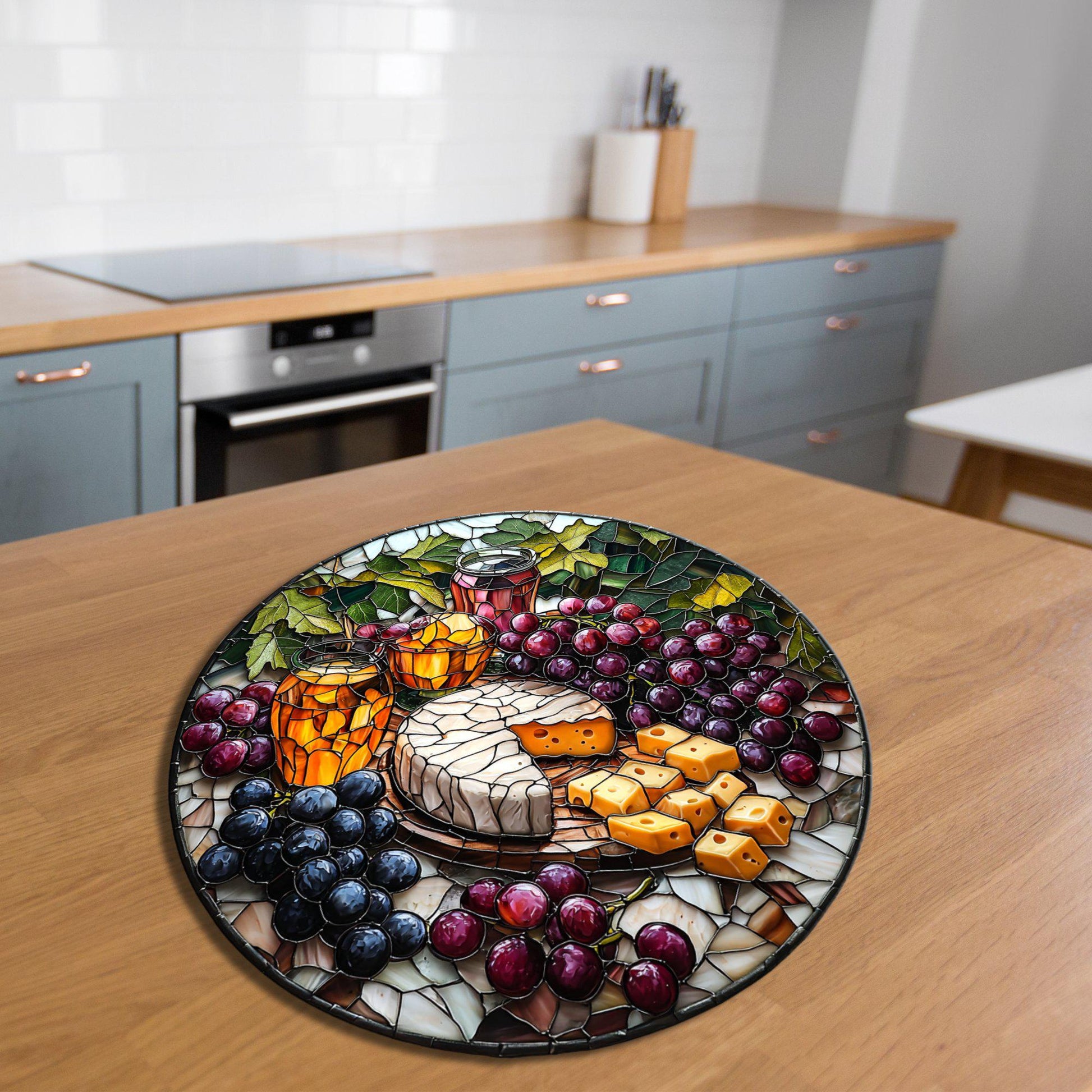 Cheese and Grapes Glass Cutting Board Trivet Hot Plate Charcuterie Board Gift for Her Mom Christmas Housewarming