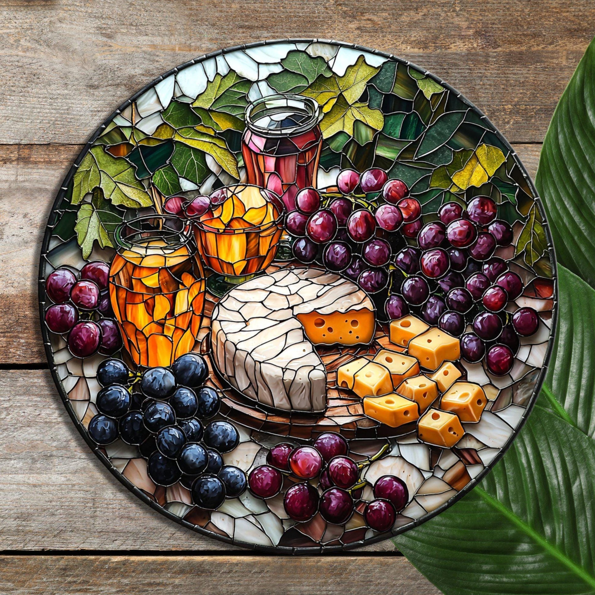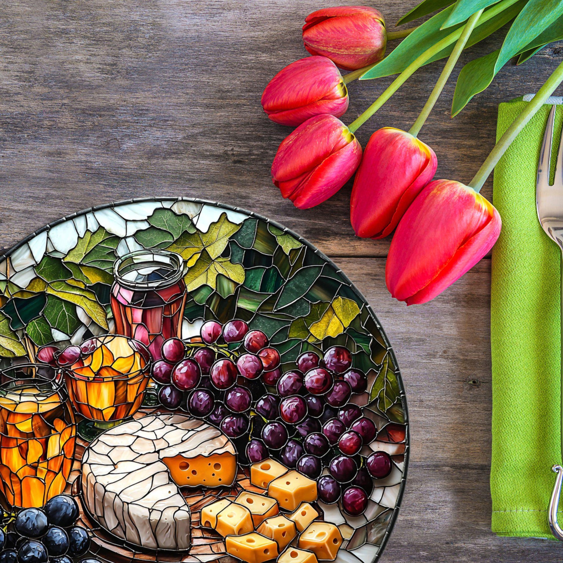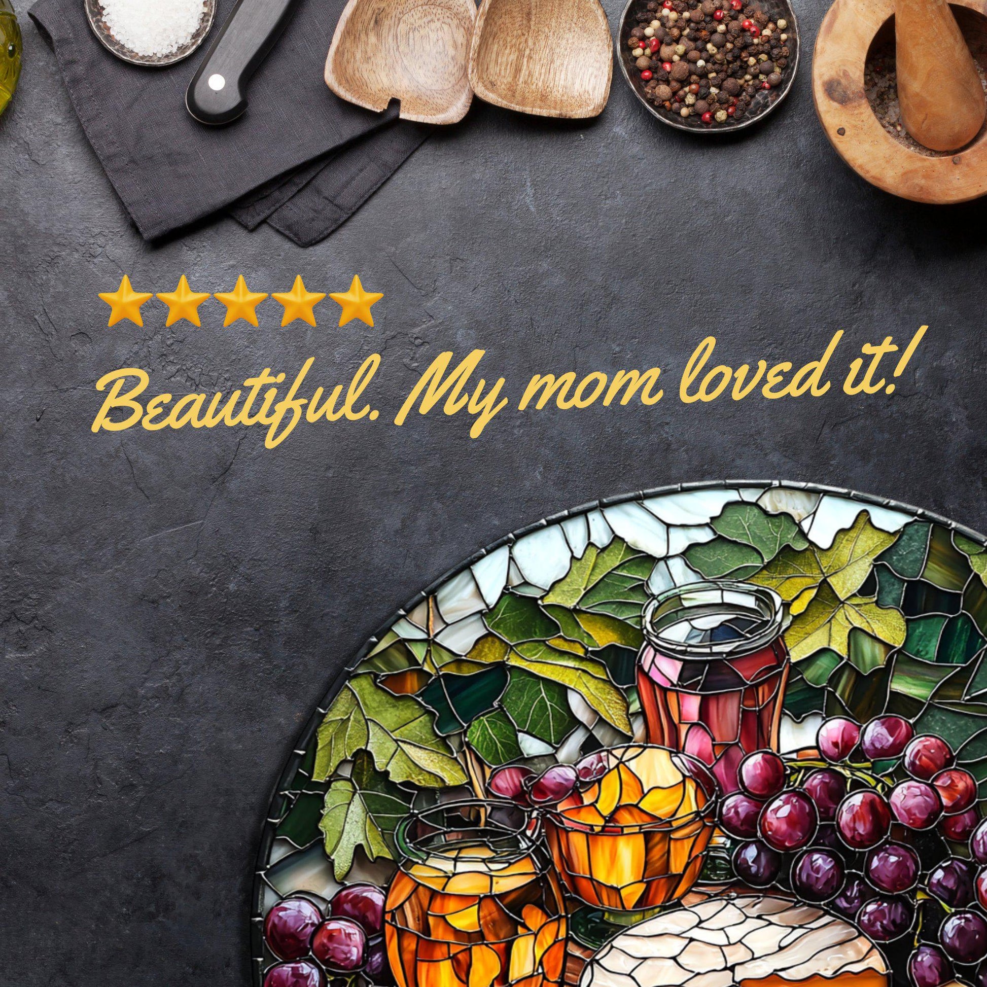 Cheese and Grapes Glass Cutting Board Trivet Hot Plate Charcuterie Board Gift for Her Mom Christmas Housewarming
