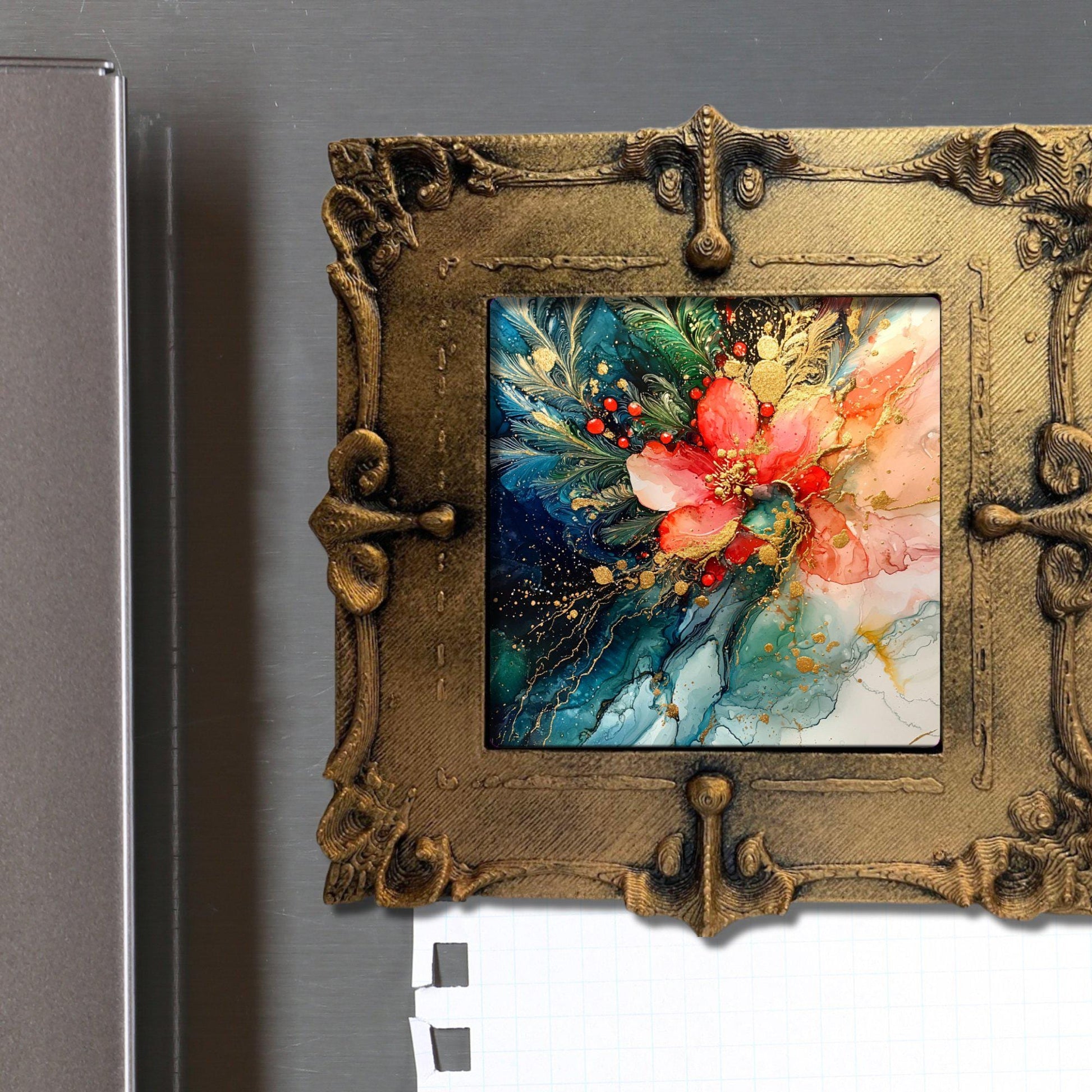 Christmas Aesthetic Tiny Art Fridge Magnet Gold Framed Fridgescaping Art Picture Gallery Tiny Art Gift for Her Wife Mom