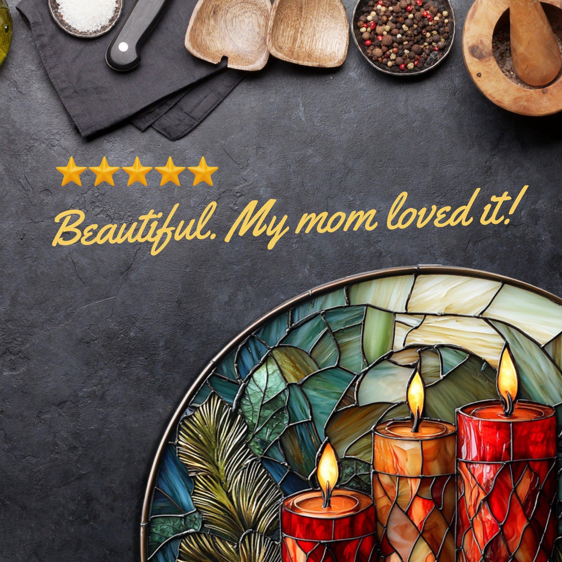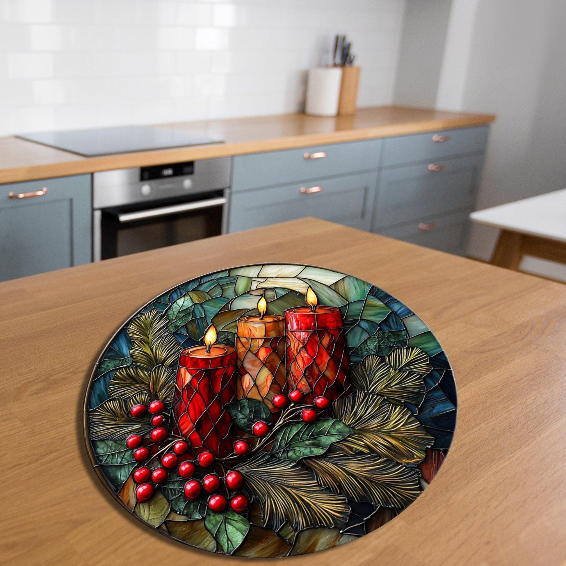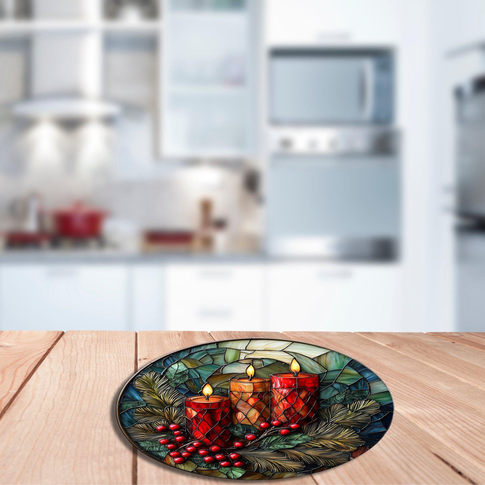 Christmas Candles Glass Cutting Board 8-inch Round Trivet Charcuterie Board Gift for Her Mom Kitchen Decor