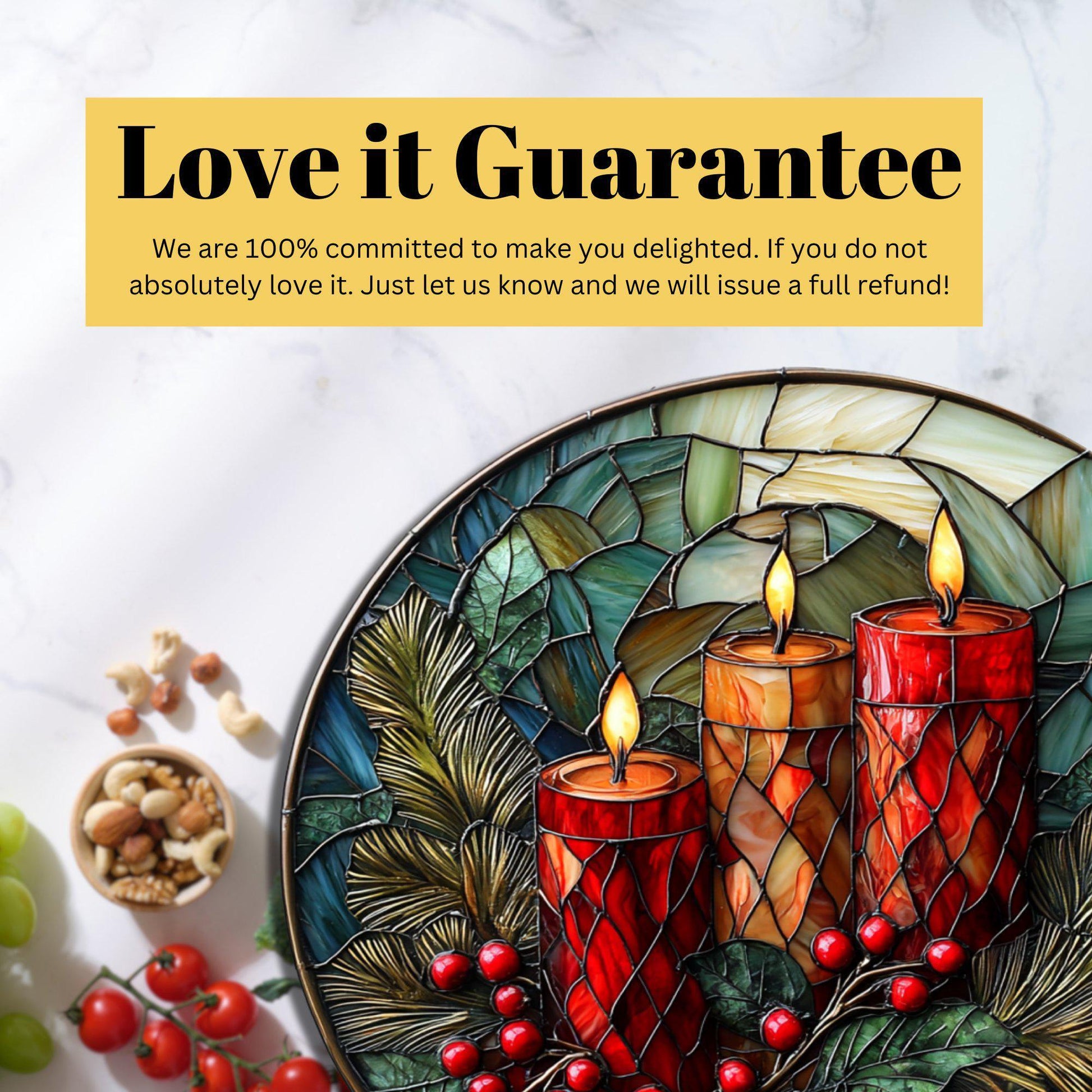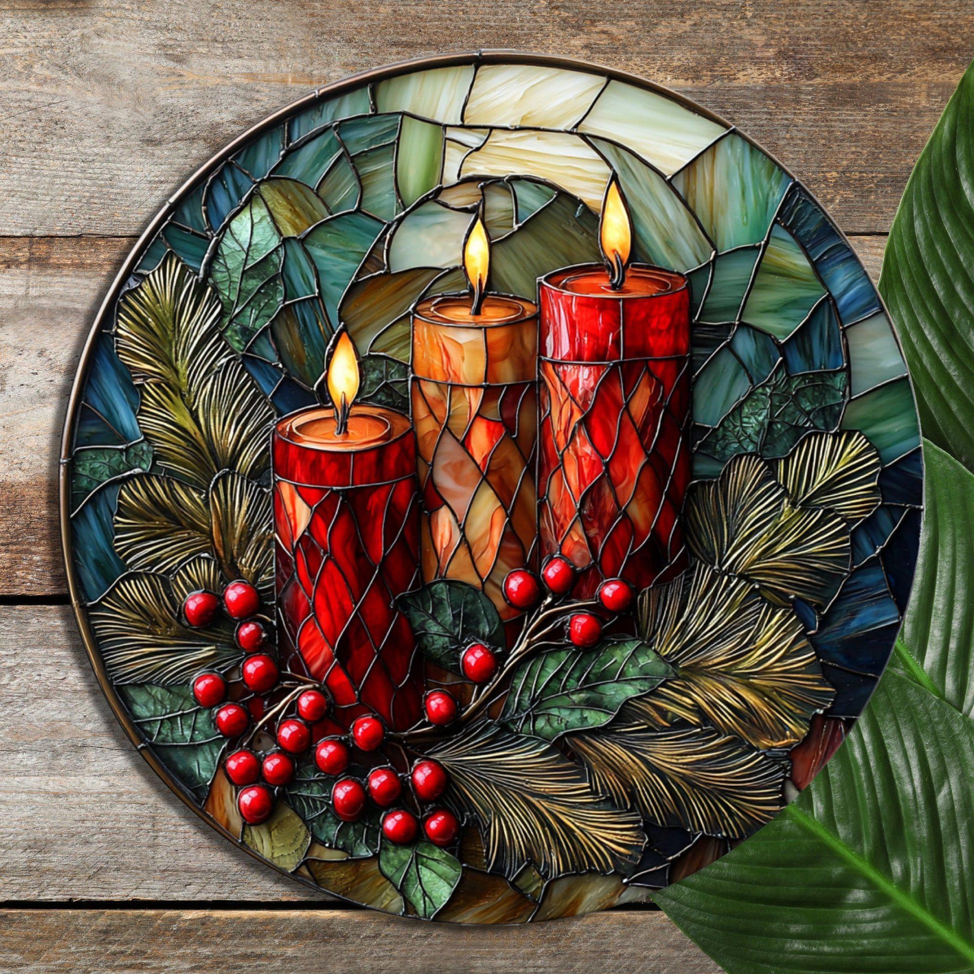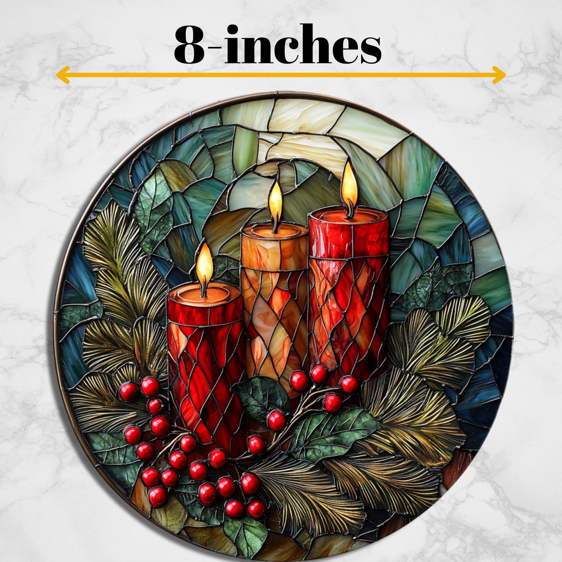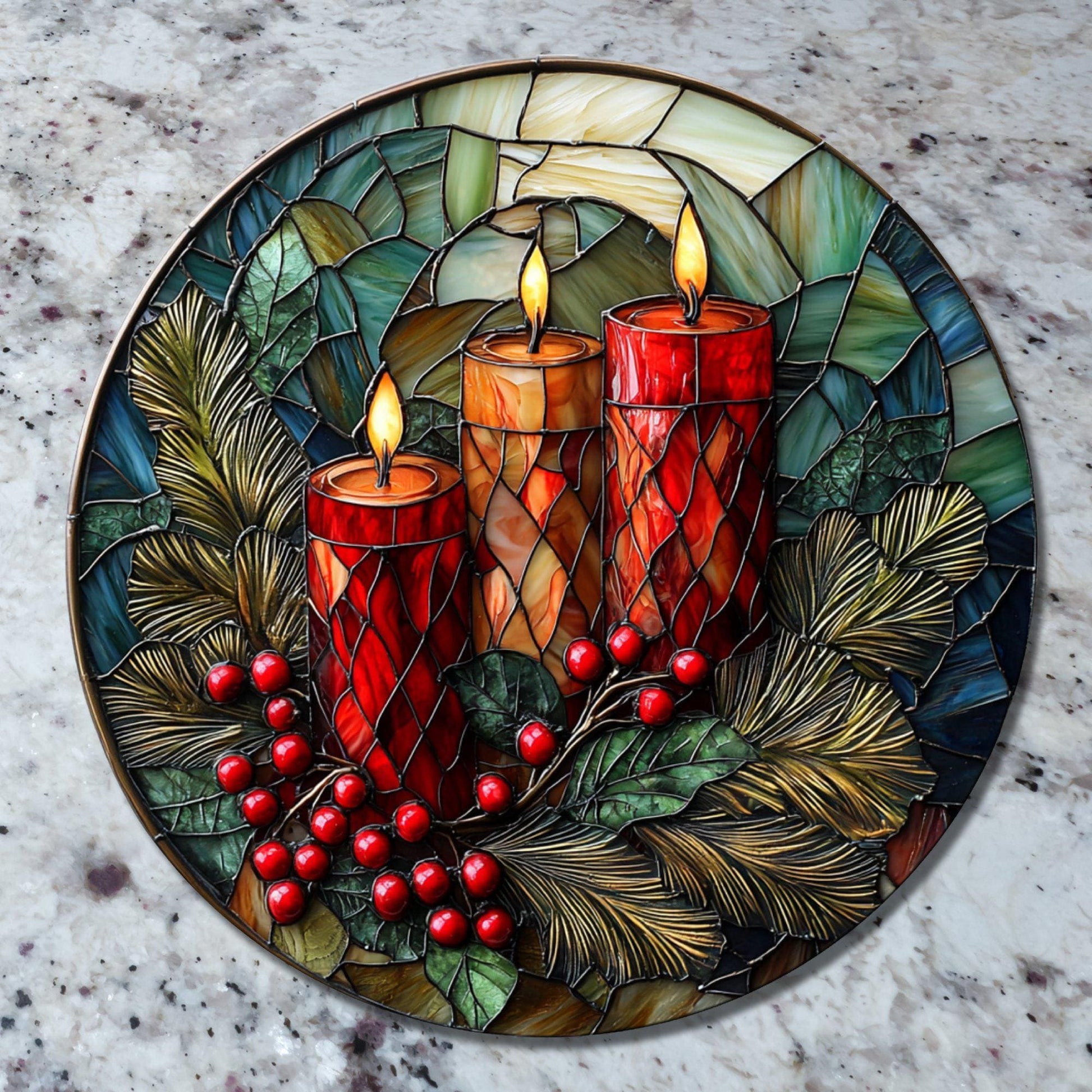 Christmas Candles Glass Cutting Board 8-inch Round Trivet Charcuterie Board Gift for Her Mom Kitchen Decor