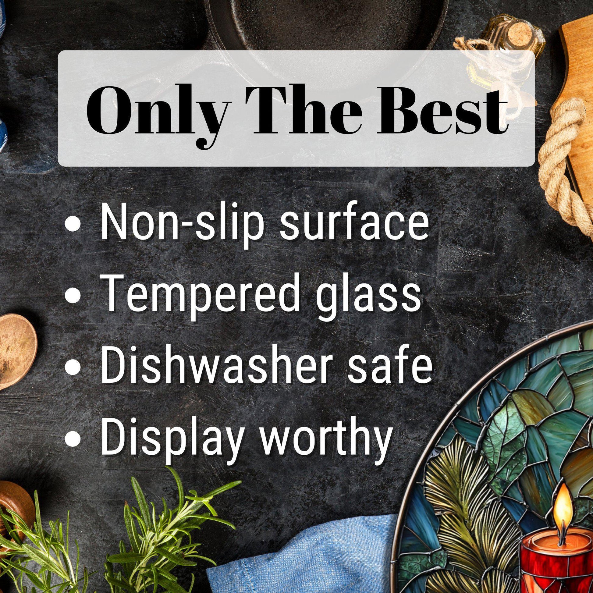 Elevate your kitchen with this functional and beautiful glass cutting board that seamlessly blends practicality with artistry.