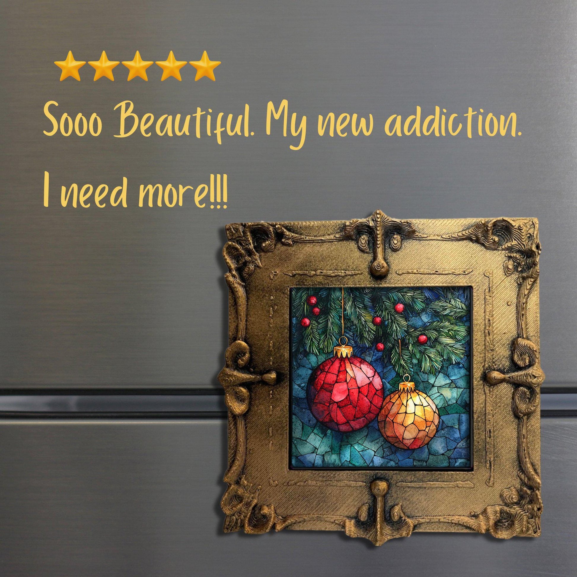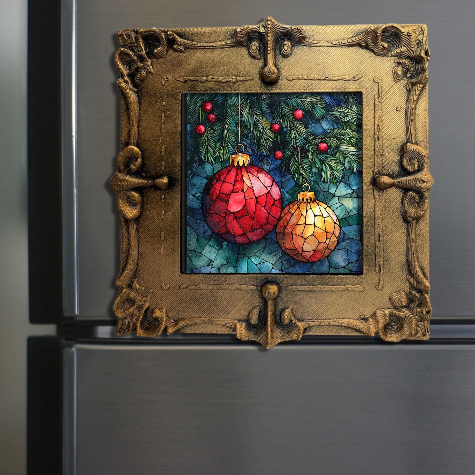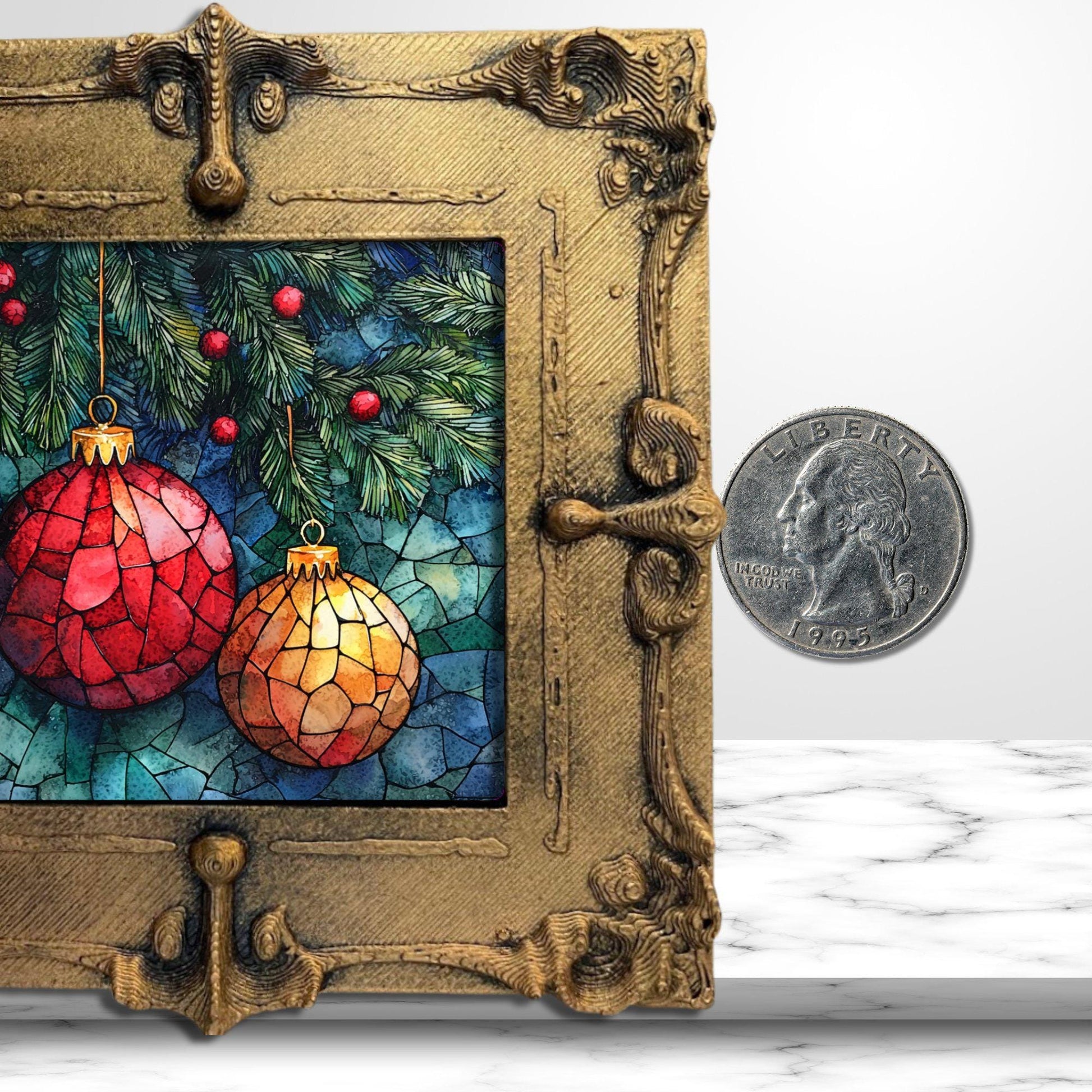 Christmas Ornaments Tiny Art Fridge Magnet Gold Framed Fridgescaping Art Picture Gallery Tiny Art Gift for Her Wife Mom