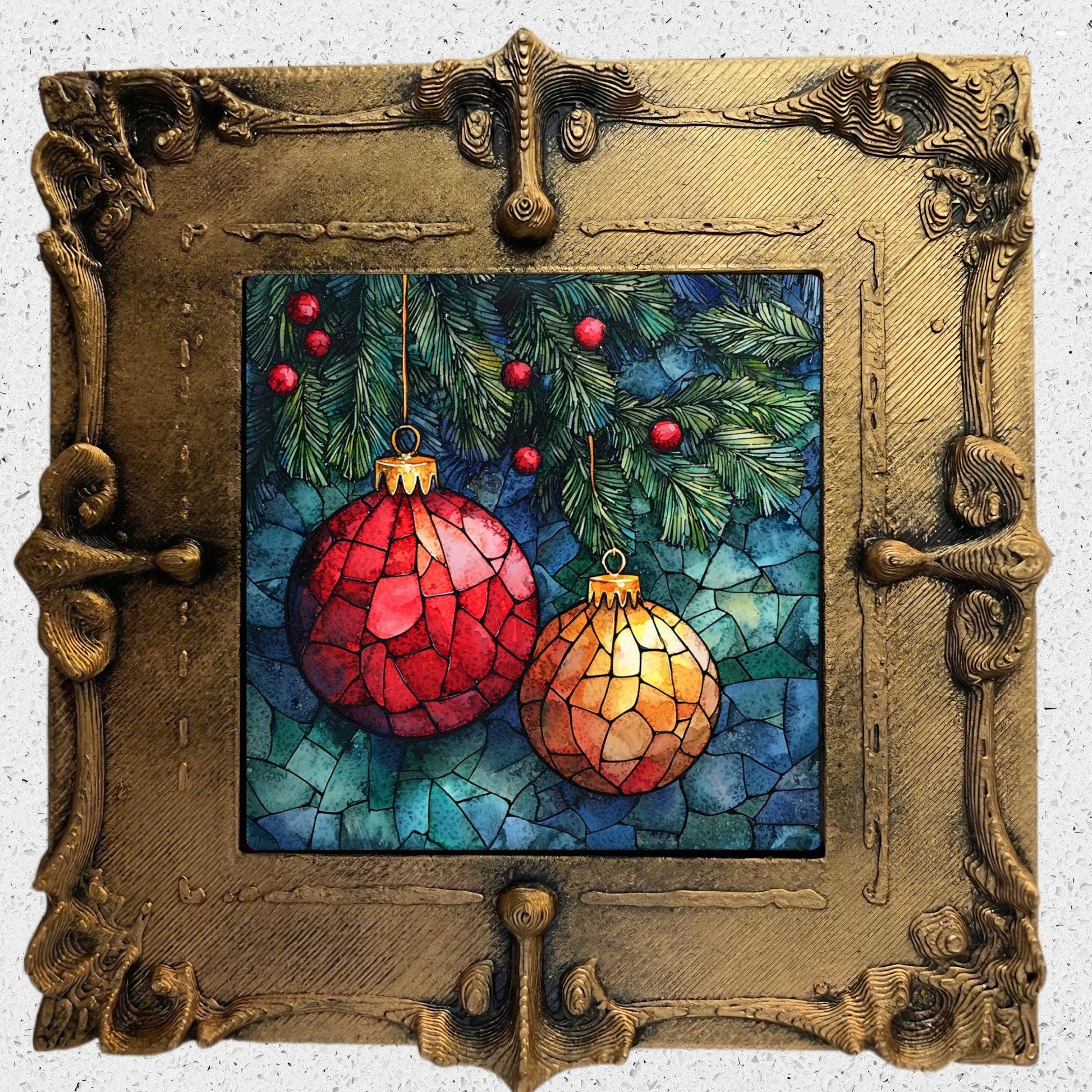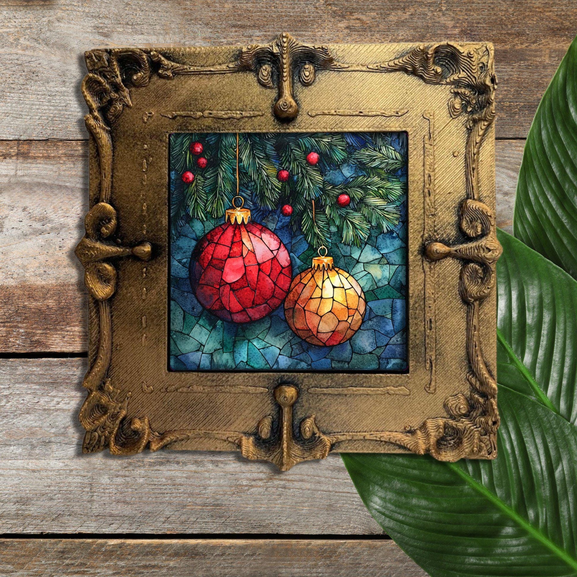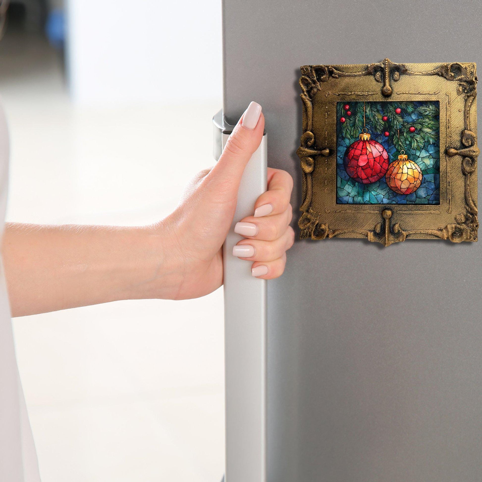 Christmas Ornaments Tiny Art Fridge Magnet Gold Framed Fridgescaping Art Picture Gallery Tiny Art Gift for Her Wife Mom