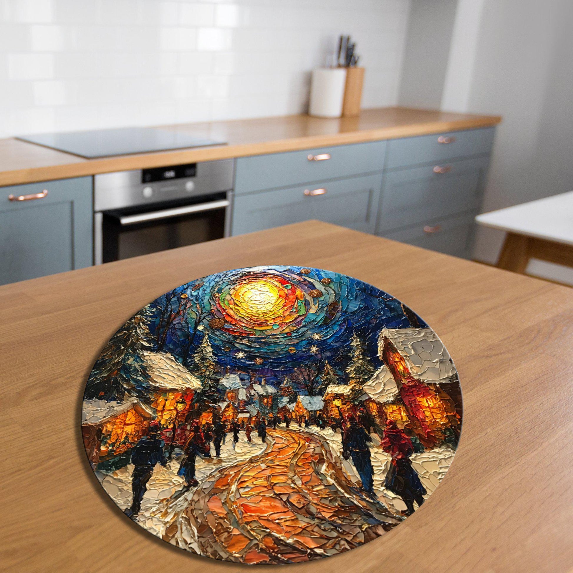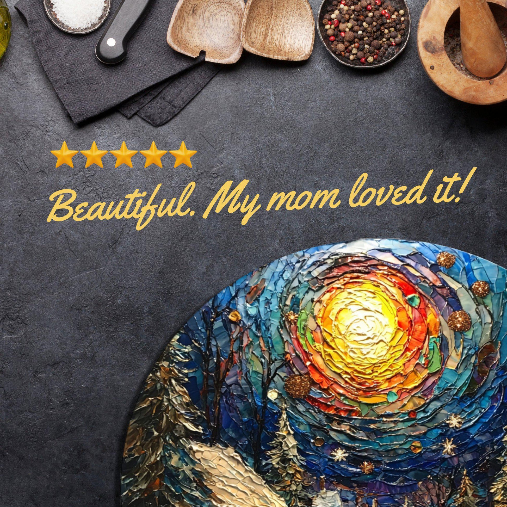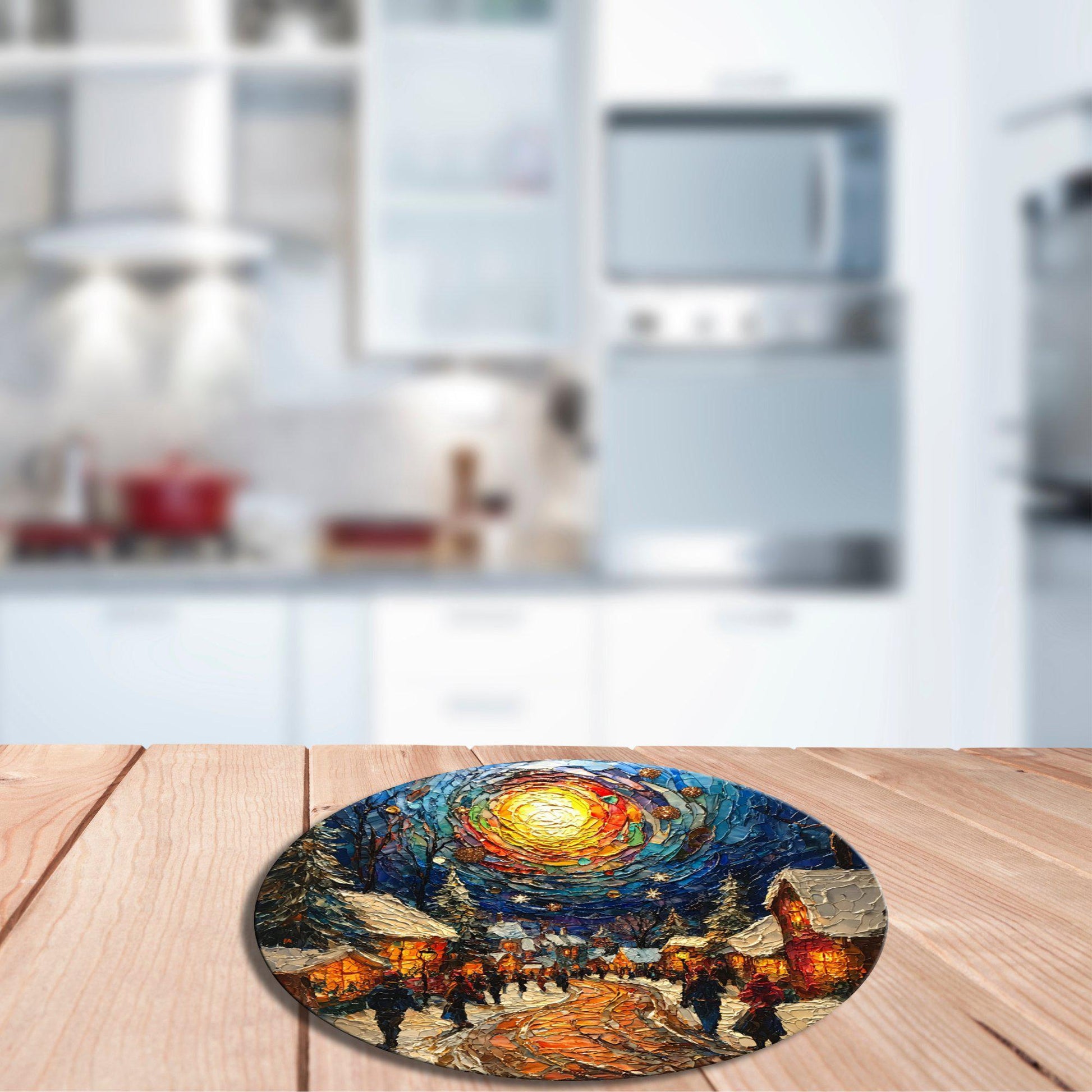 Christmas Square Glass Cutting Board 8-inch Round Trivet Charcuterie Board Gift for Her Mom Kitchen Decor