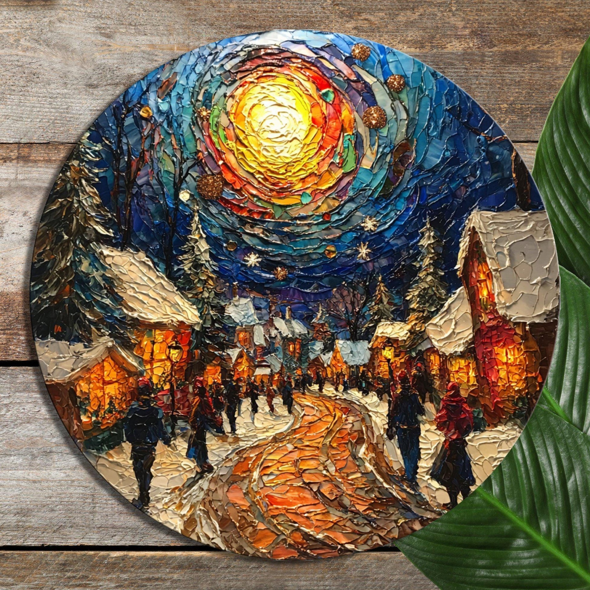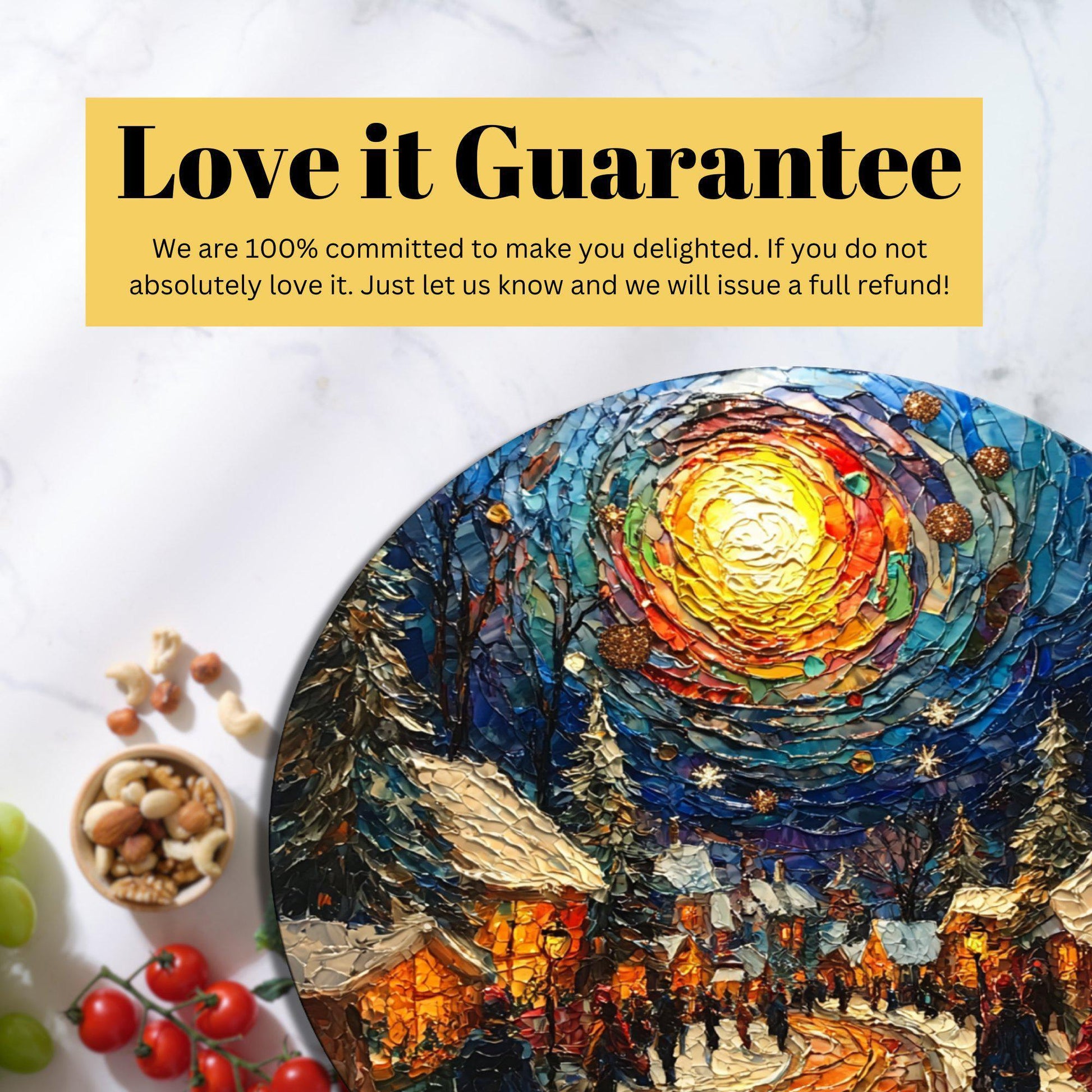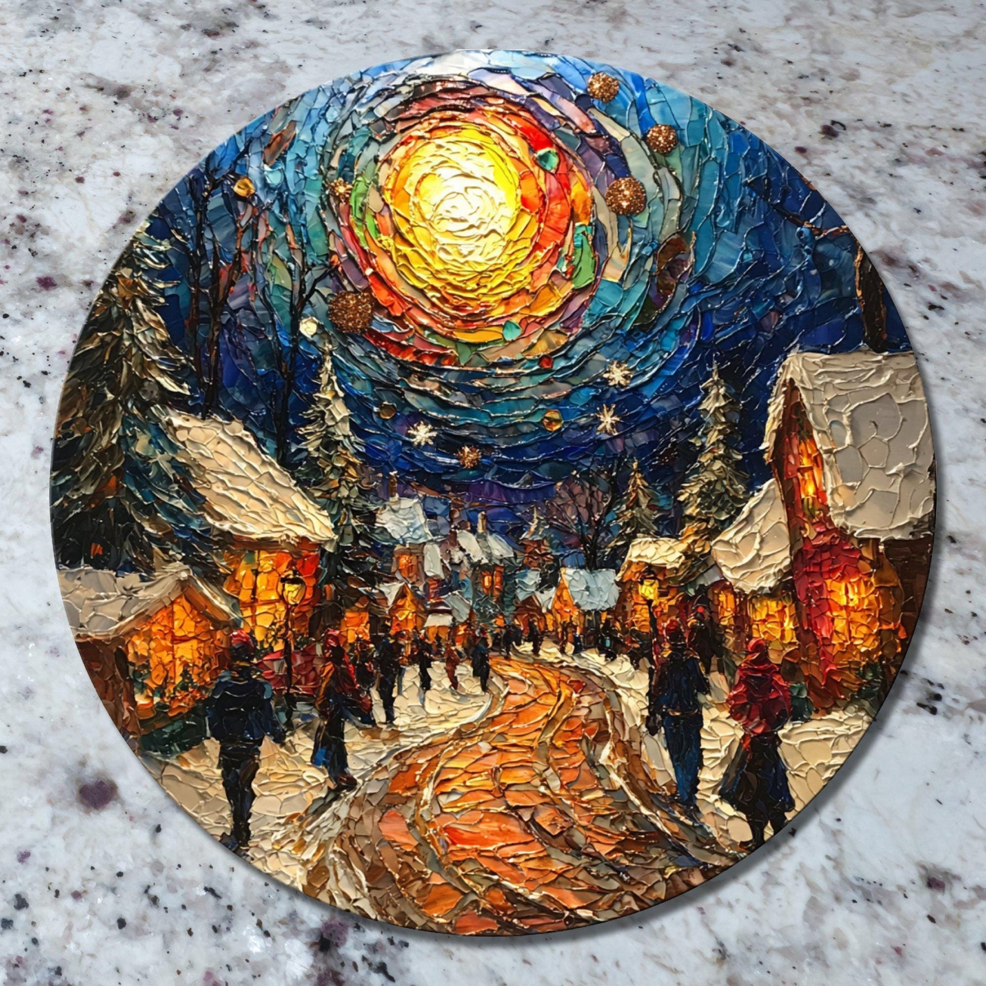 Christmas Square Glass Cutting Board 8-inch Round Trivet Charcuterie Board Gift for Her Mom Kitchen Decor