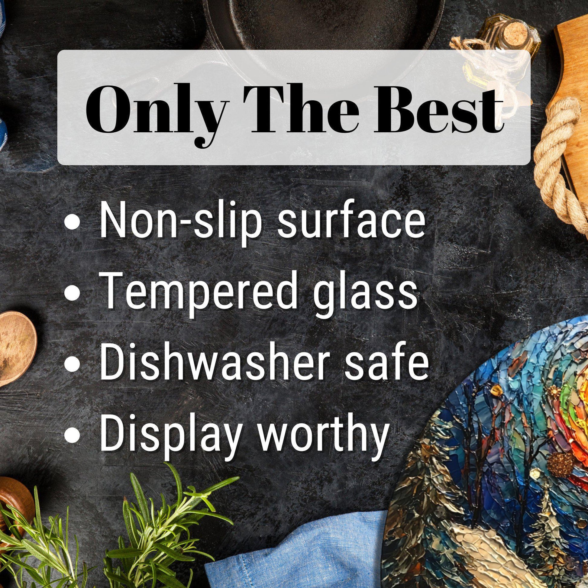Elevate your kitchen with this functional and beautiful glass cutting board that seamlessly blends practicality with artistry.