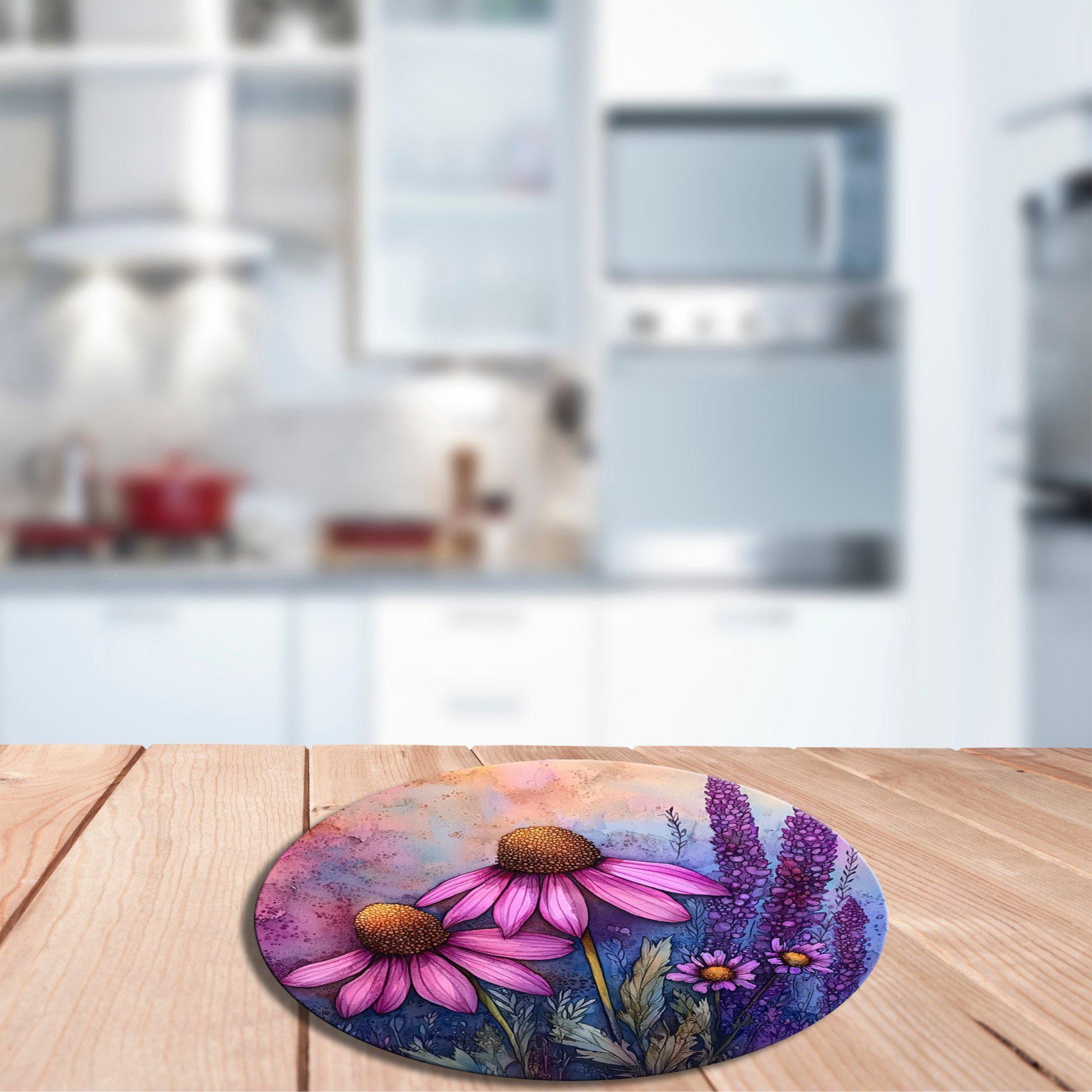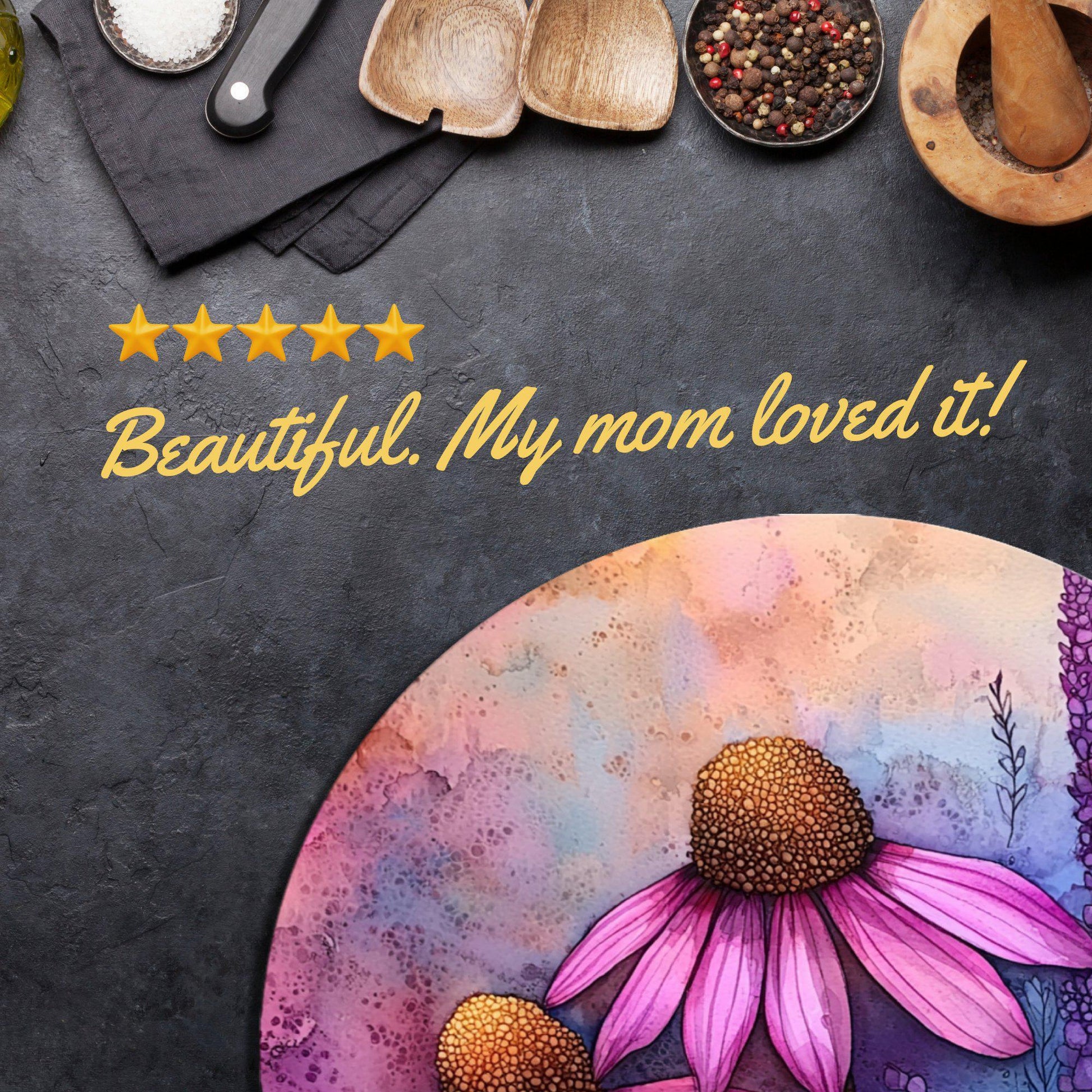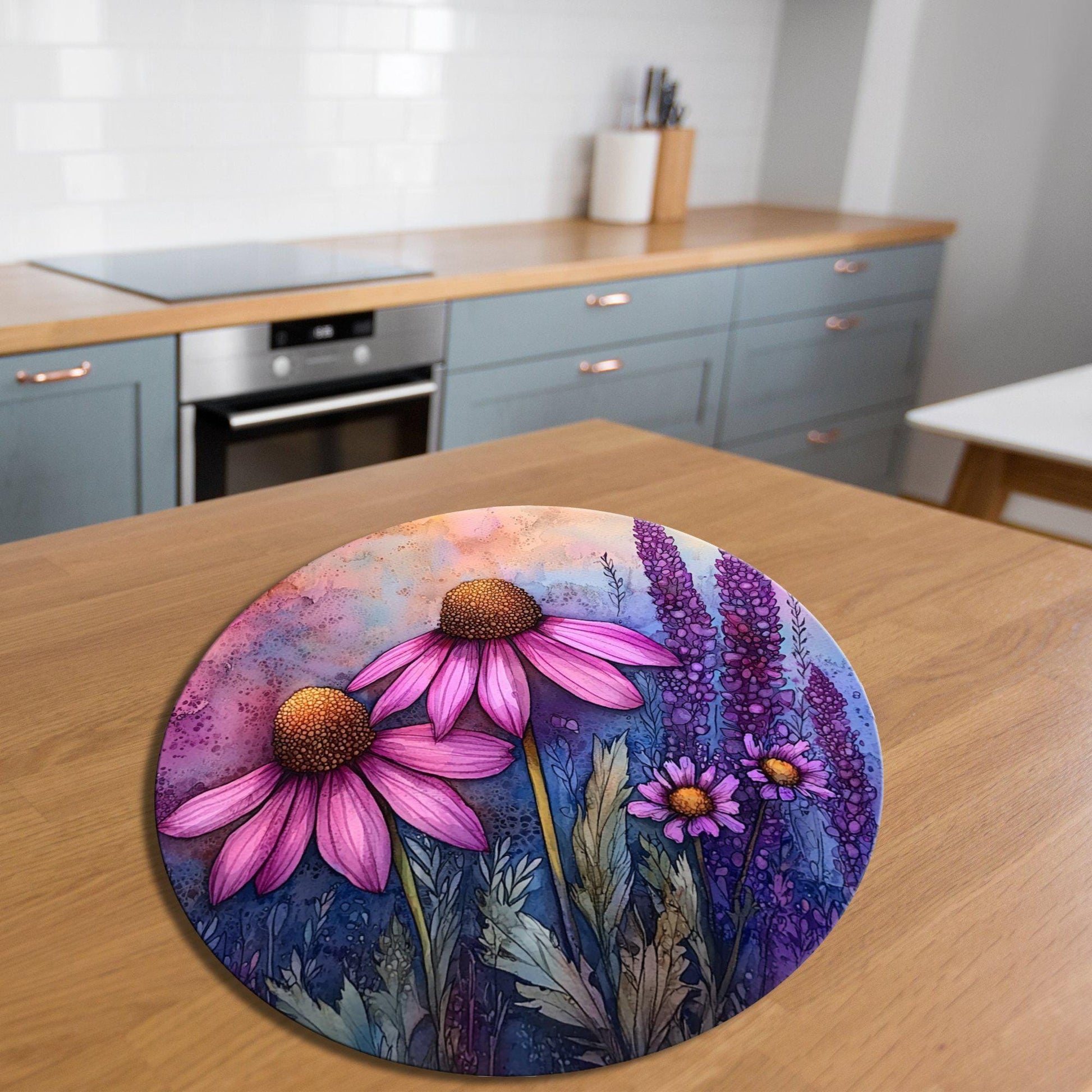 Cone Flower Glass Cutting Board 8-inch Round Trivet Charcuterie Board Gift for Her Mom Kitchen Decor