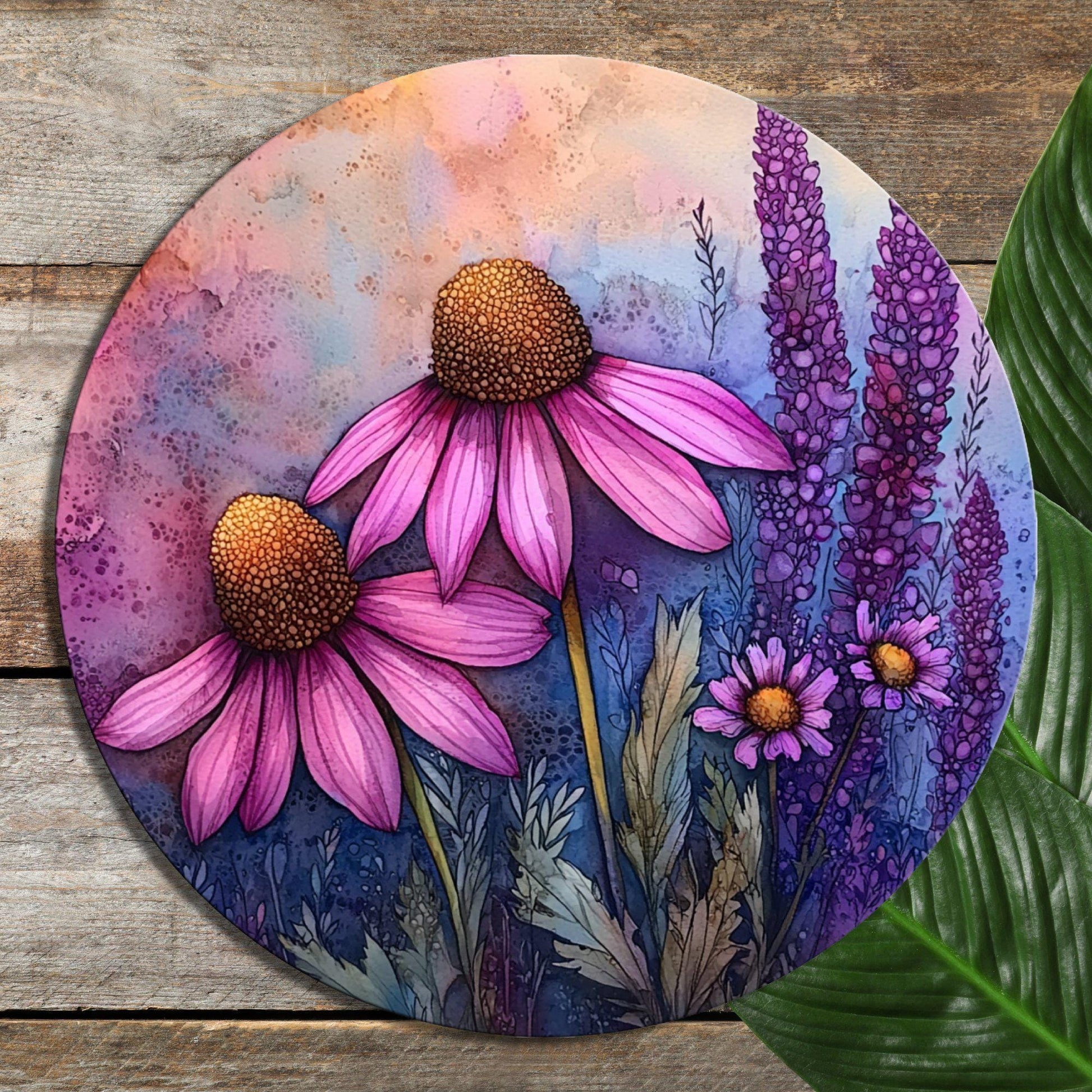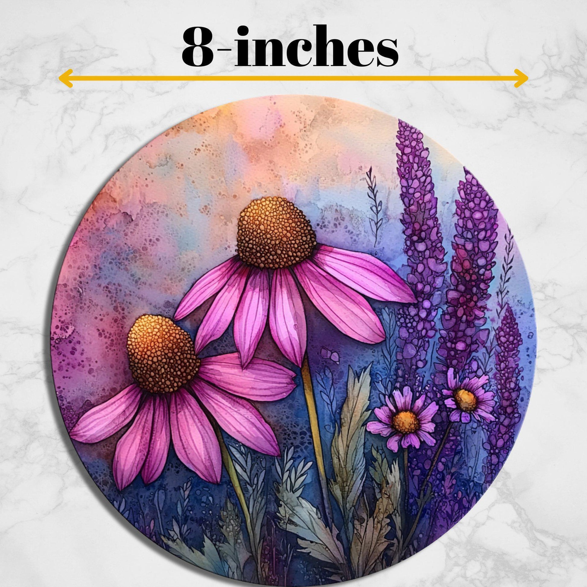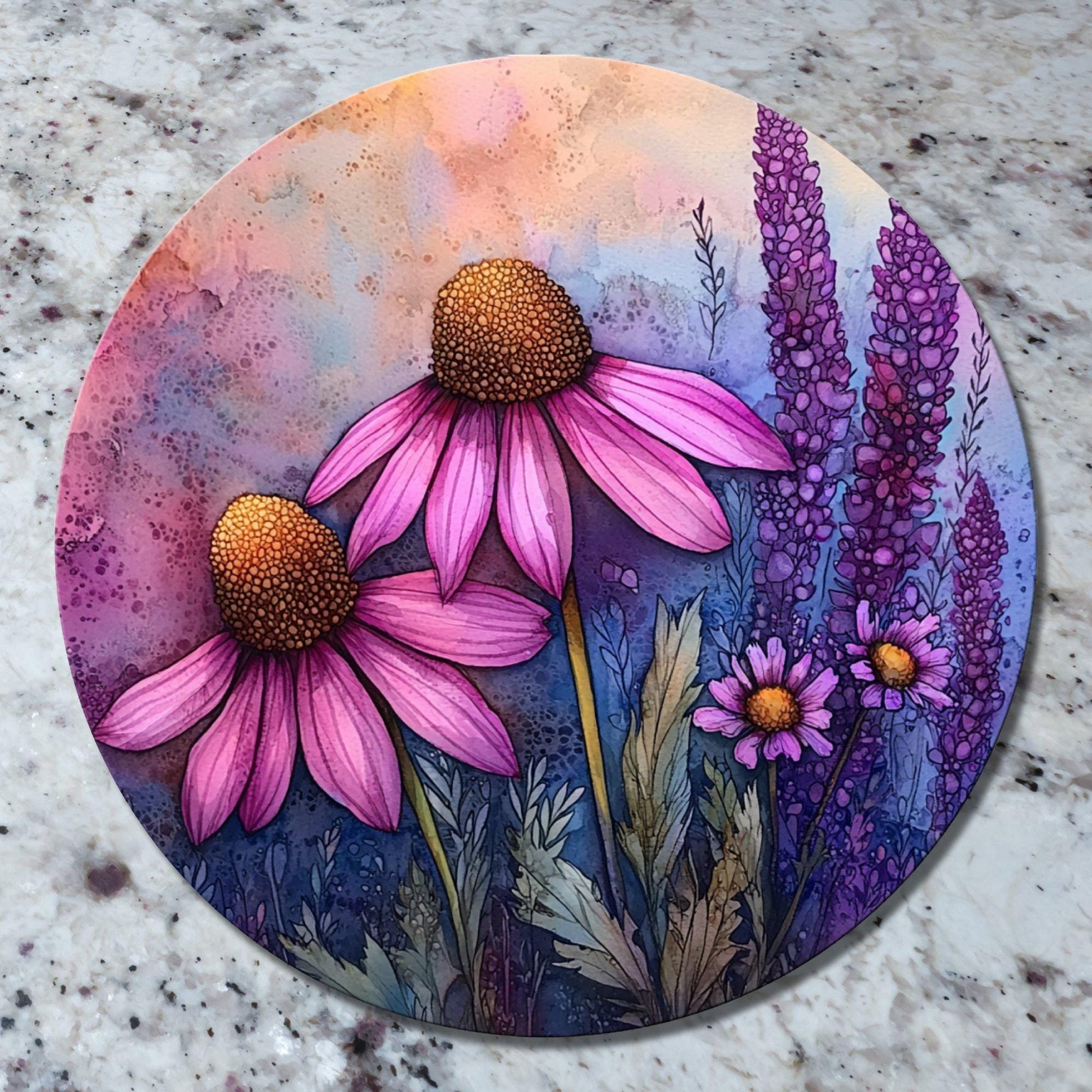 Cone Flower Glass Cutting Board 8-inch Round Trivet Charcuterie Board Gift for Her Mom Kitchen Decor
