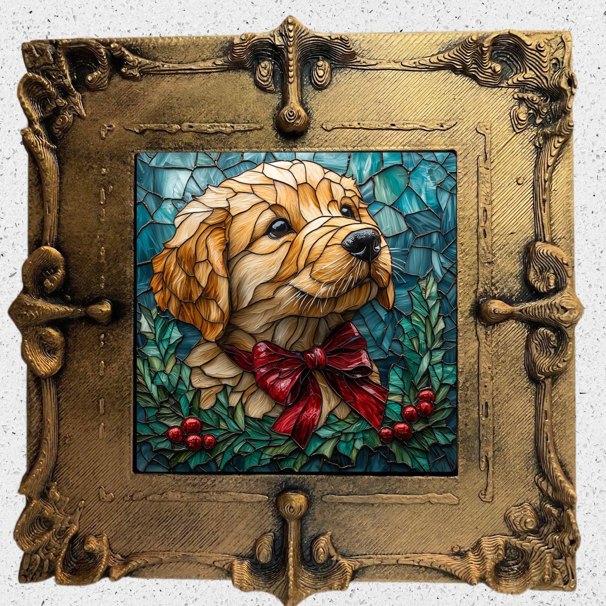 Cute Puppy Christmas Present Tiny Art Fridge Magnet Gold Framed Fridgescaping Art Picture Gallery Tiny Art Gift for Her Wife Mom
