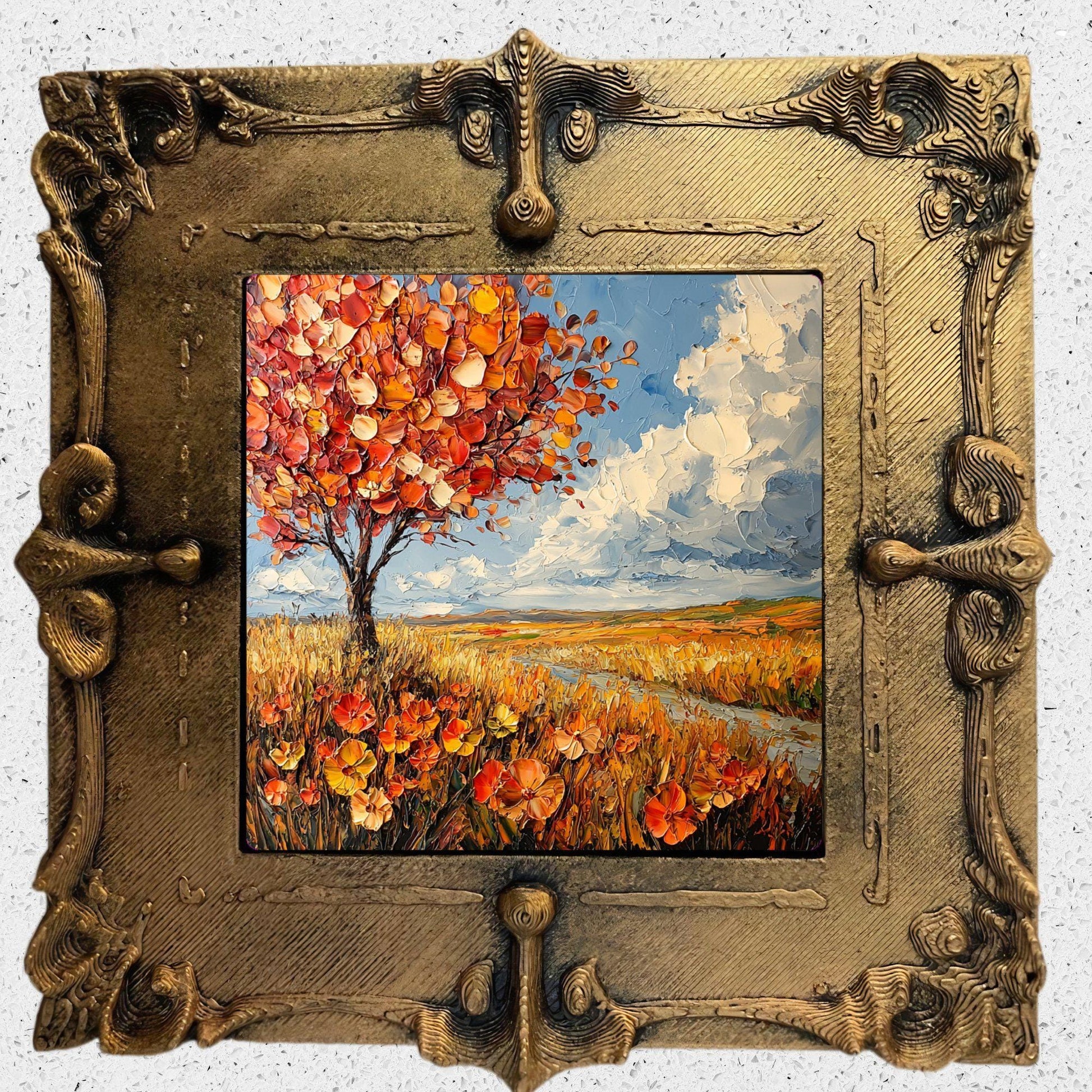 Fall Prairie Gold Framed Refrigerator Magnet, Mini Art, Grand Millennial Style, Artful Kitchen Decor, Gift for Her fridgescaping