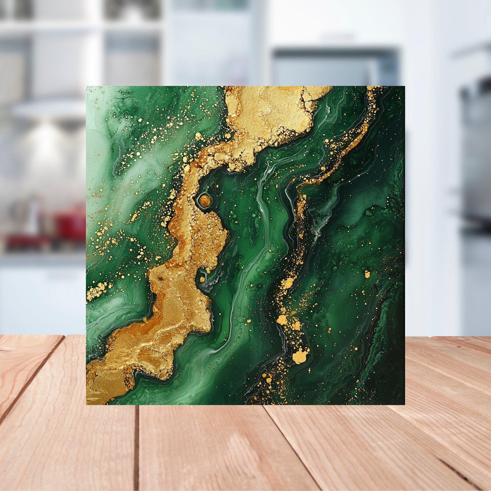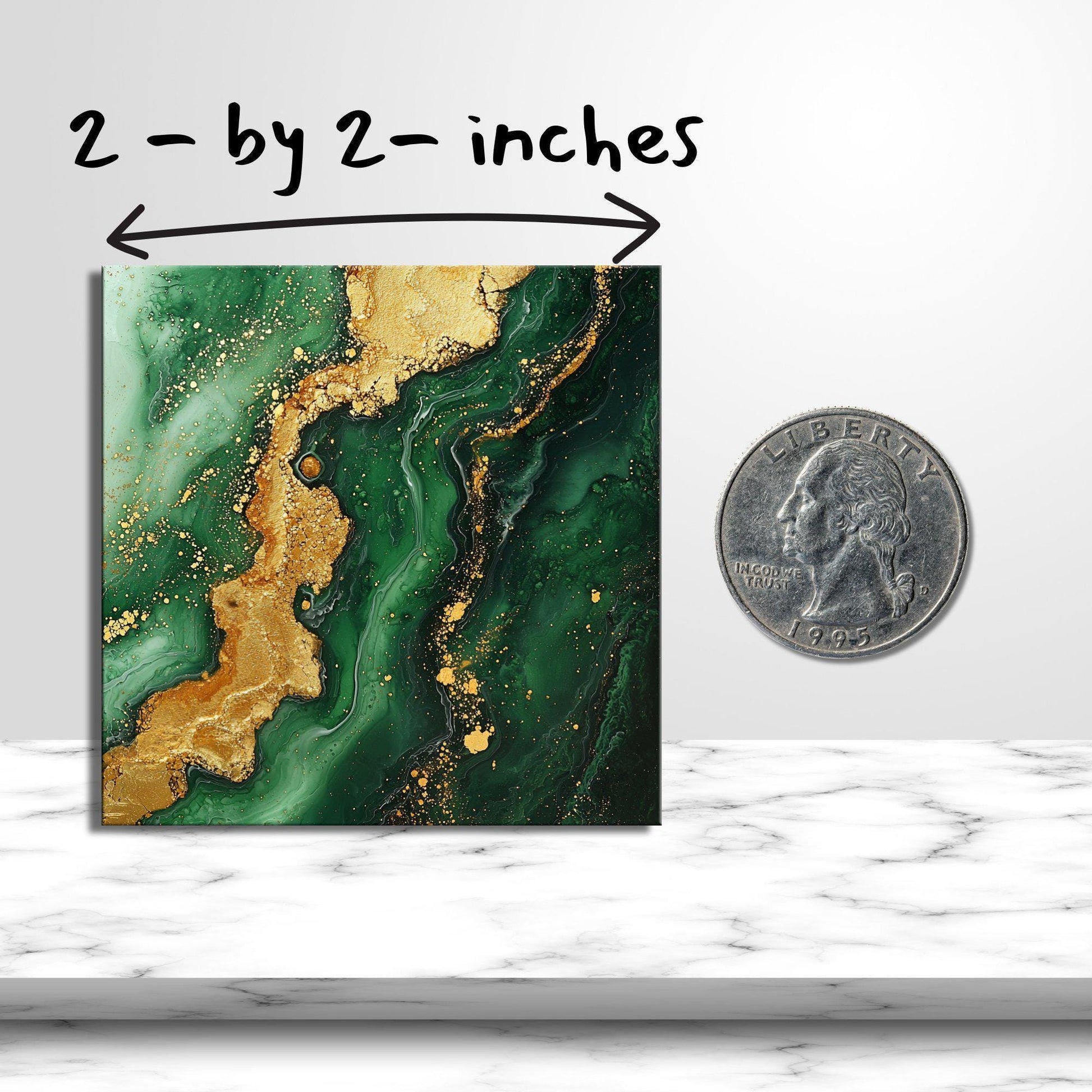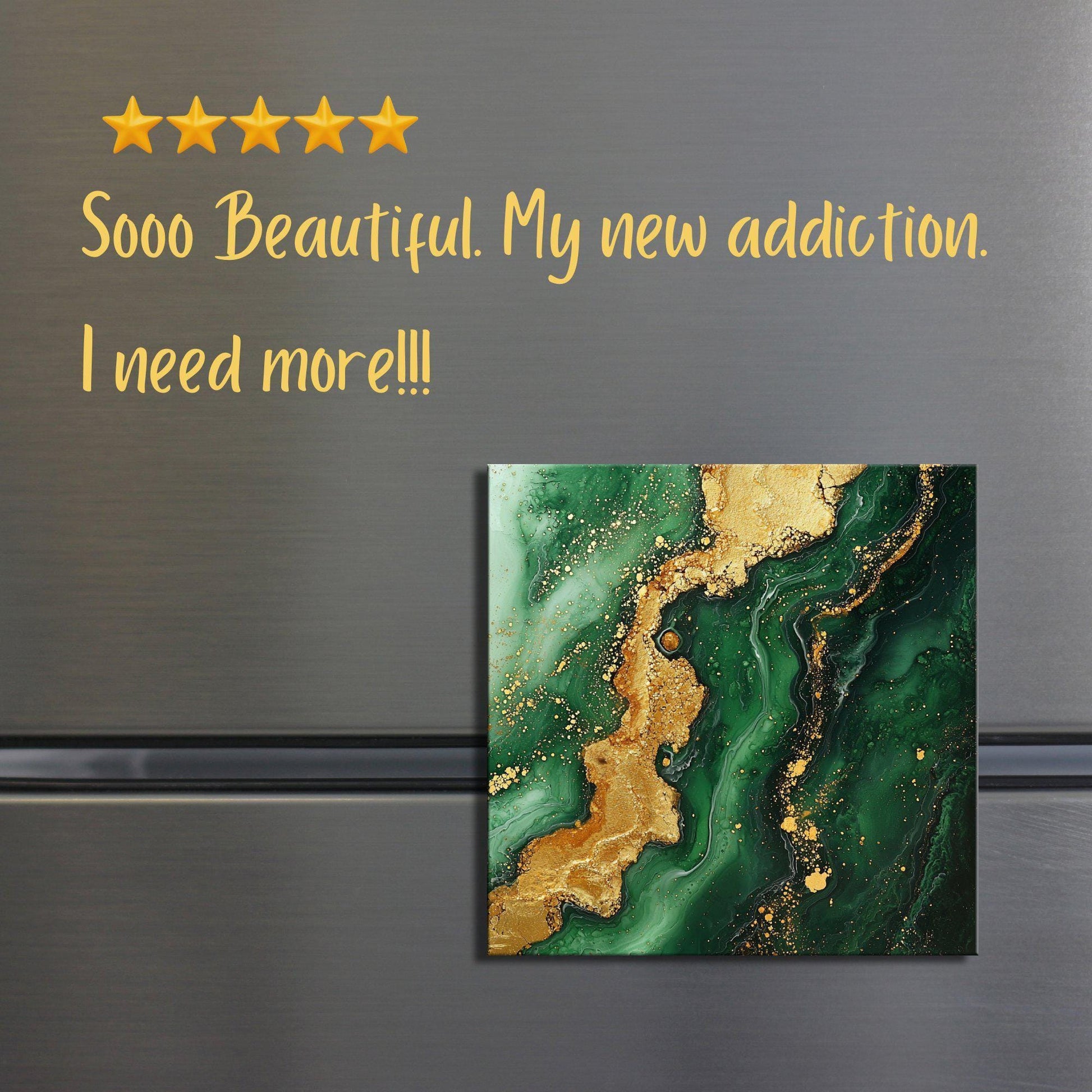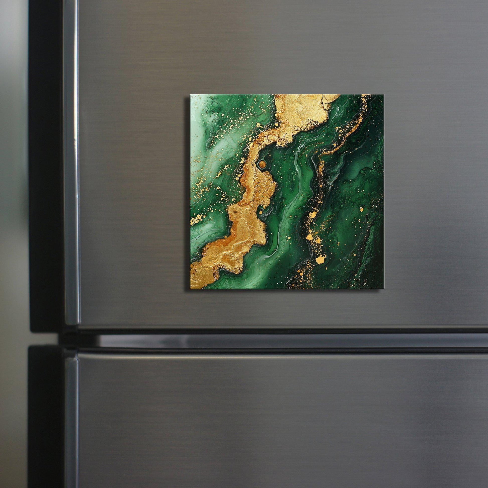 Forest Green and Gold Fridge Magnet 2-inch Strong Refrigerator Magnet Kitchen Decor Dopamine Ceramic Tile Art Gift for Her fridgescaping