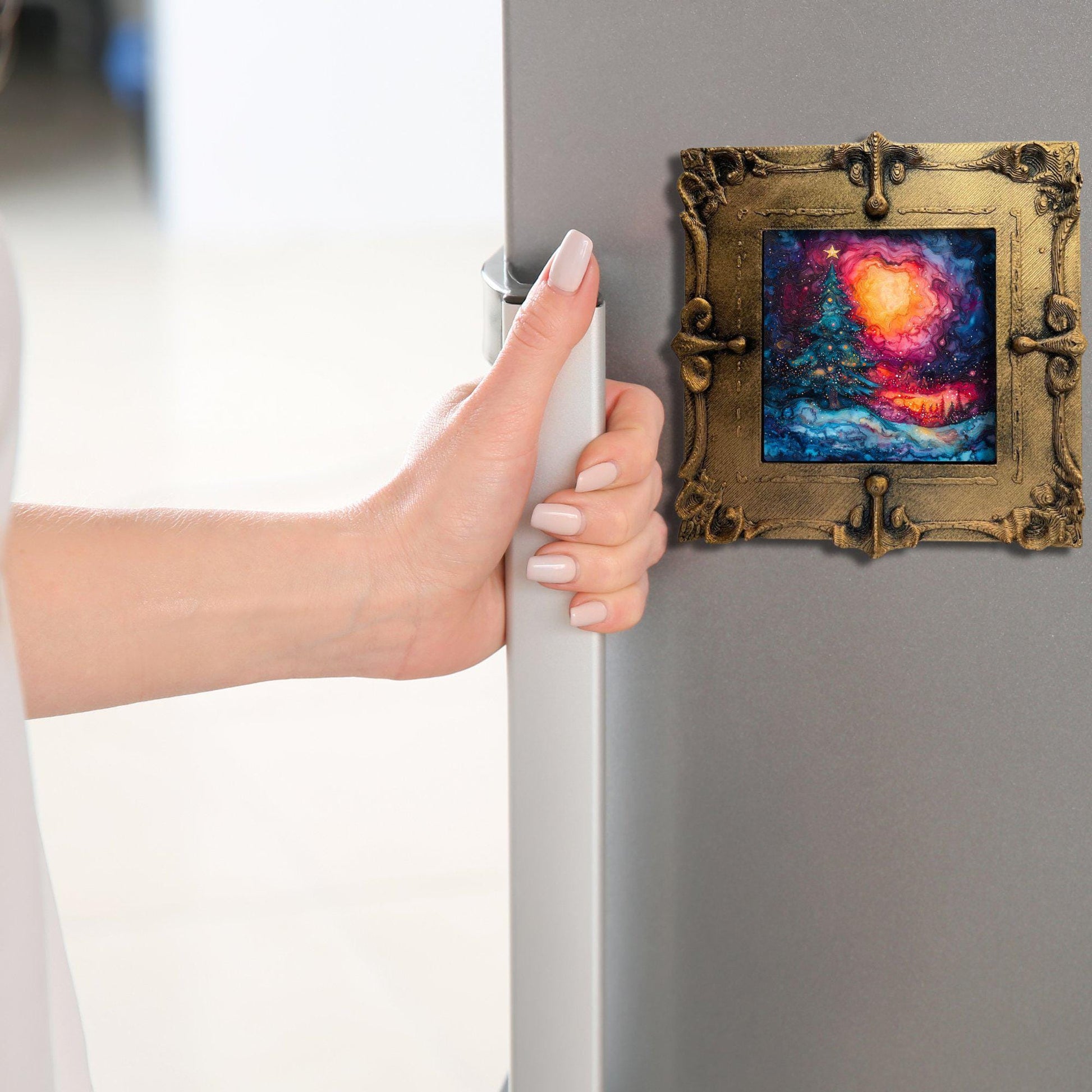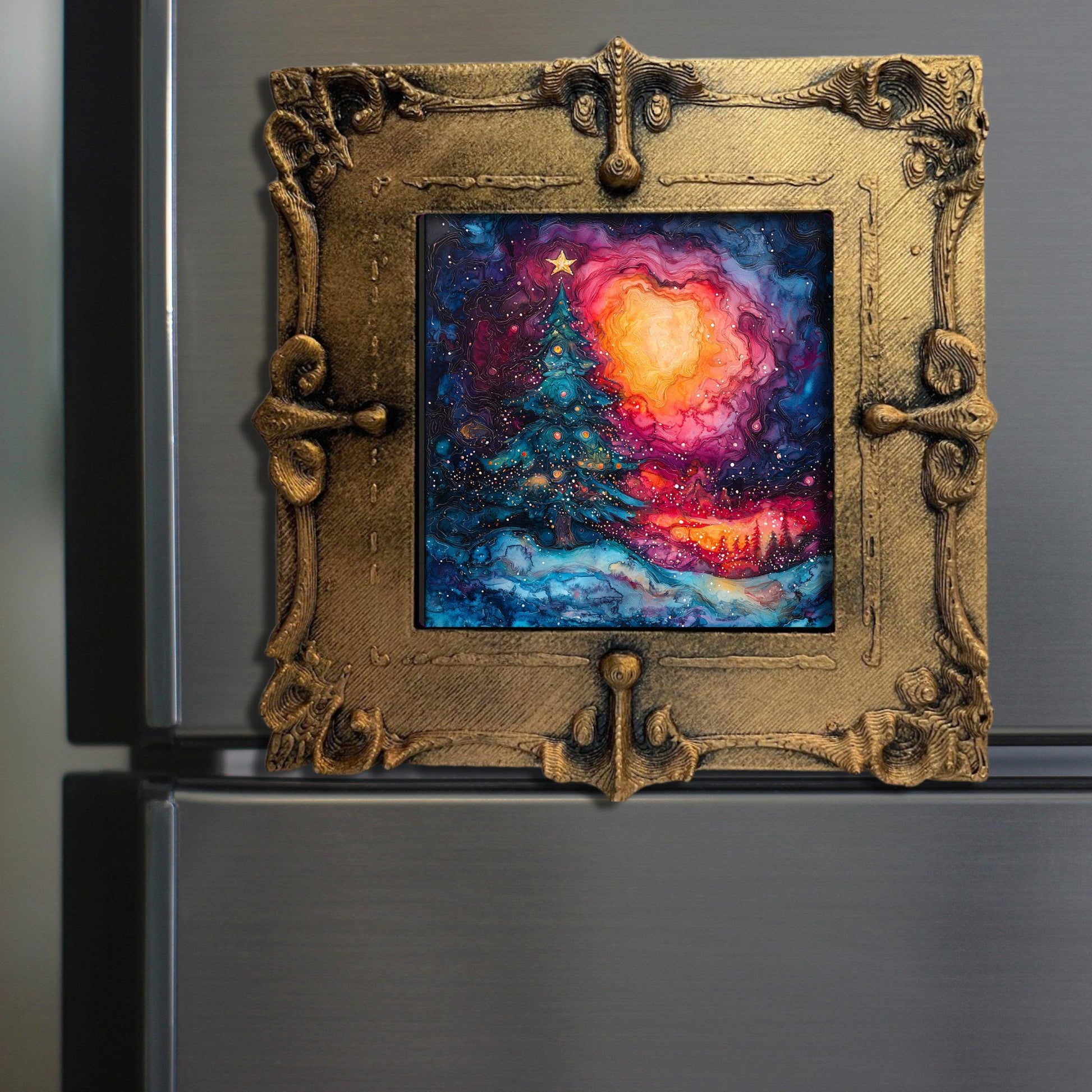 Fridge Magnet Vaporware Aesthetic Christmas Tiny Art Gold Framed Fridgescaping Art Picture Gallery Tiny Art Gift for Her Wife Mom