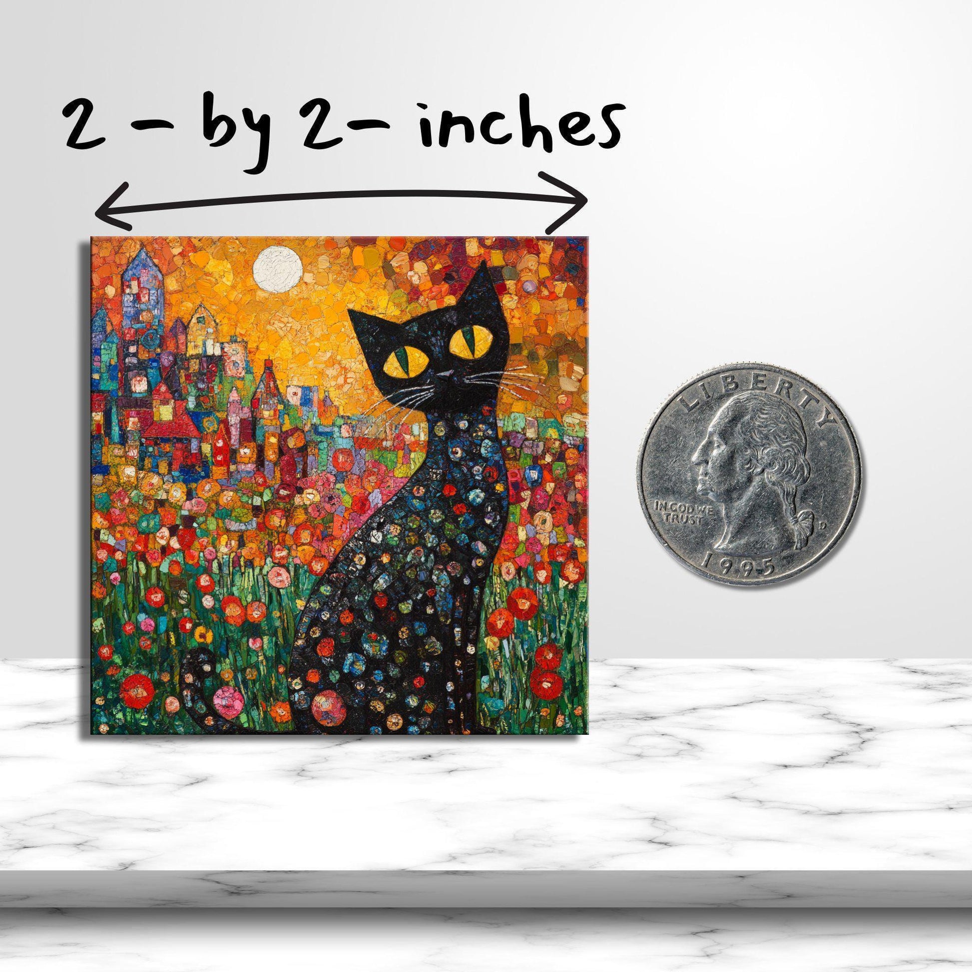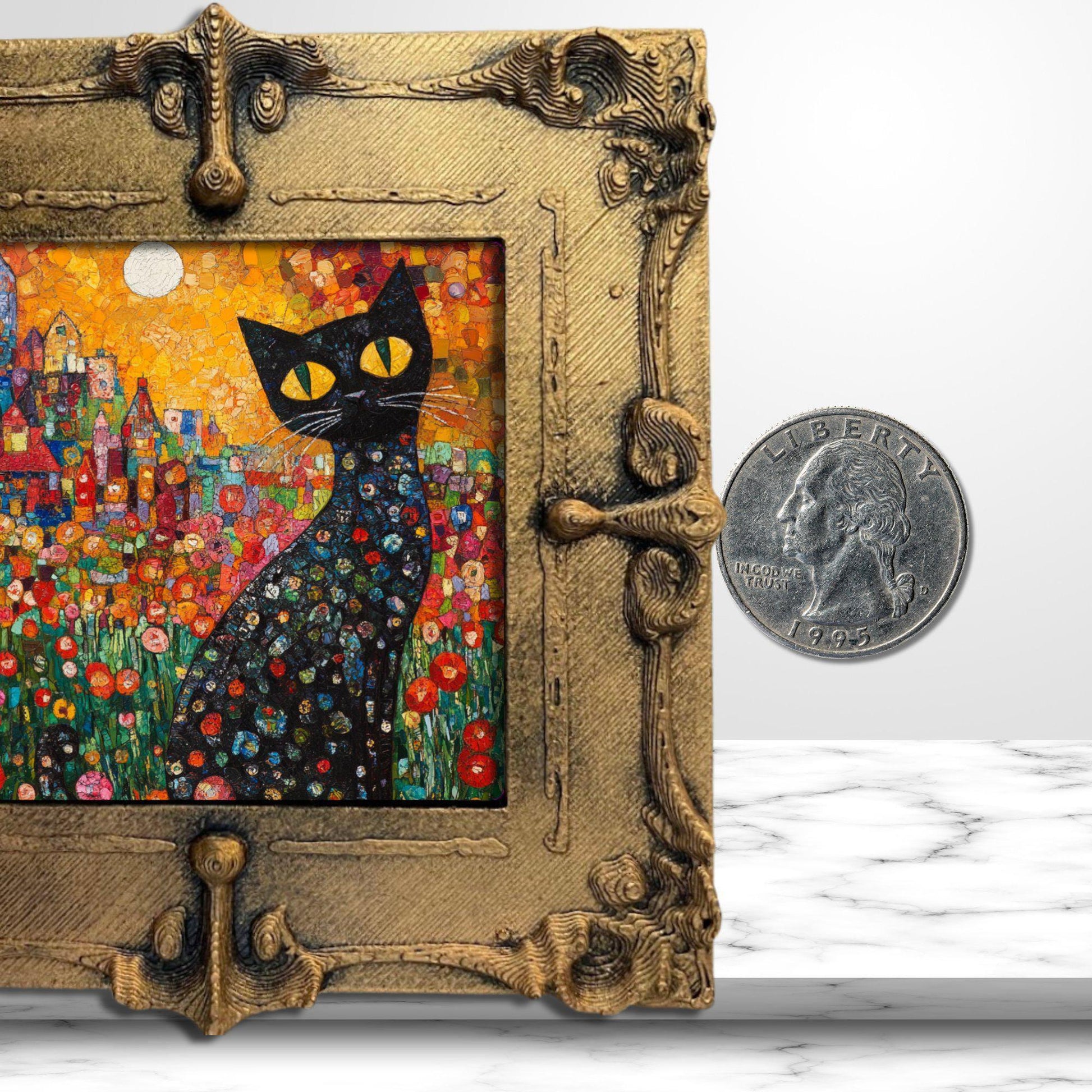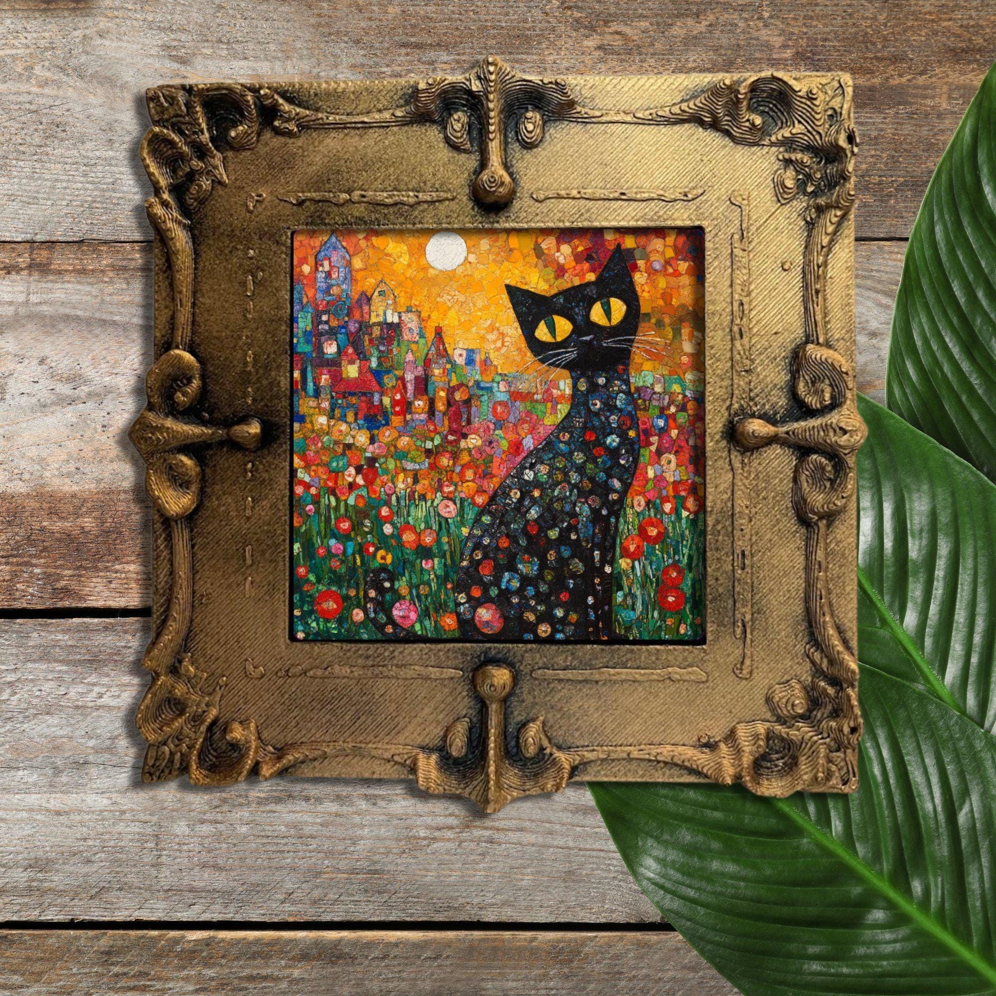 Garden Cat Klimt Style Gold Framed Refrigerator Magnet, Mini Art, Grand Millennial Style, Artful Kitchen Decor, Gift for Her fridgescaping