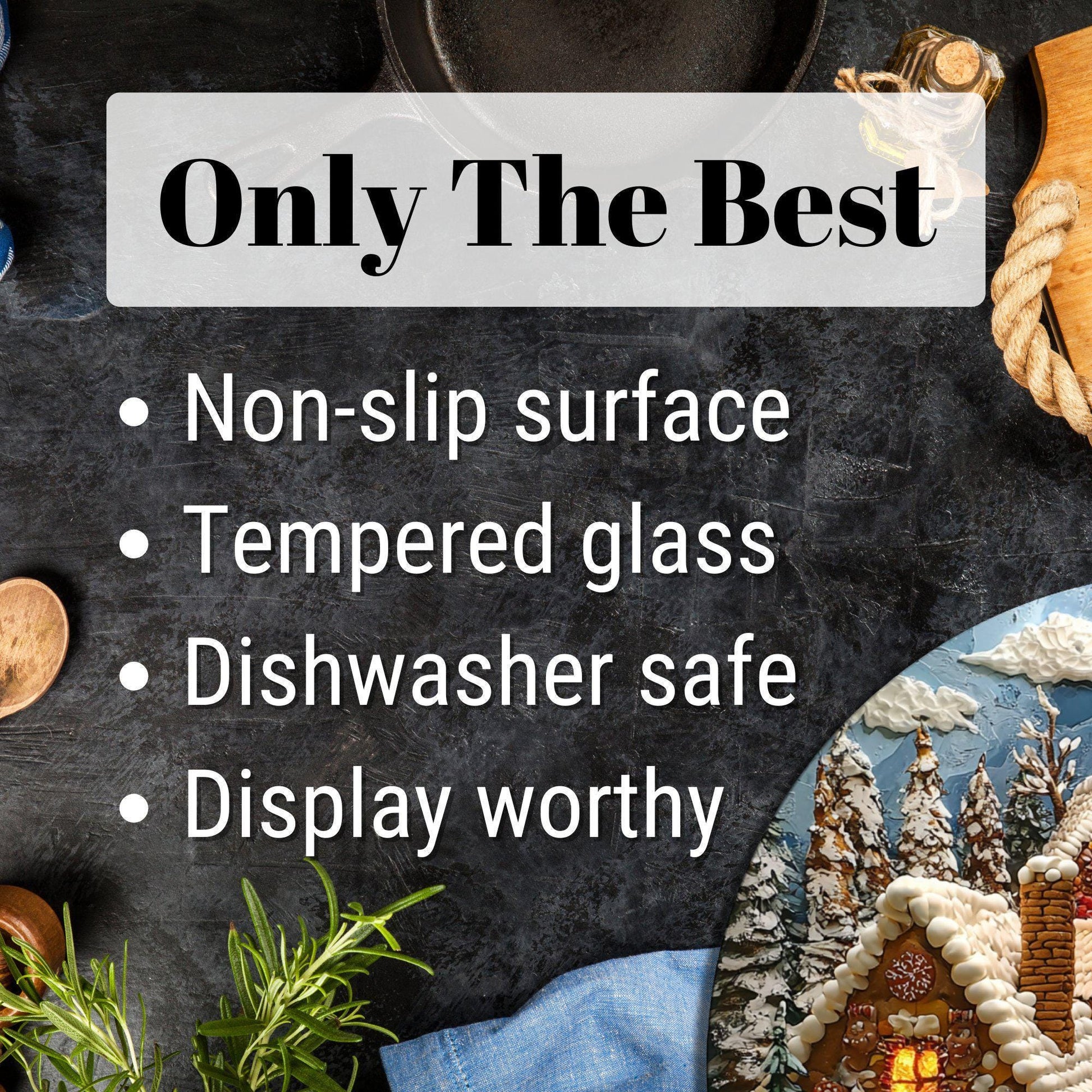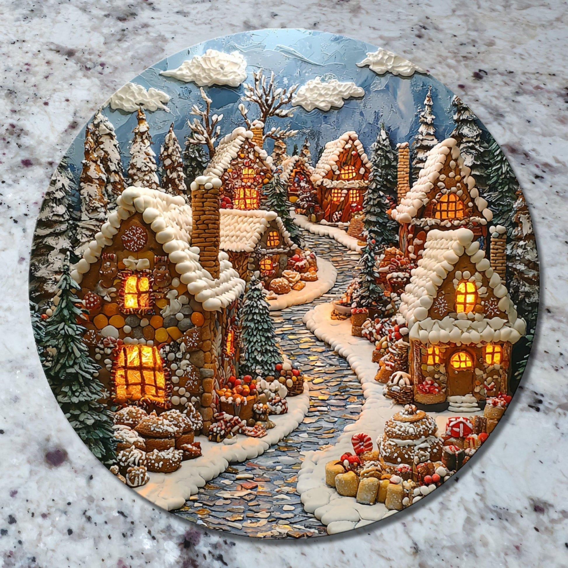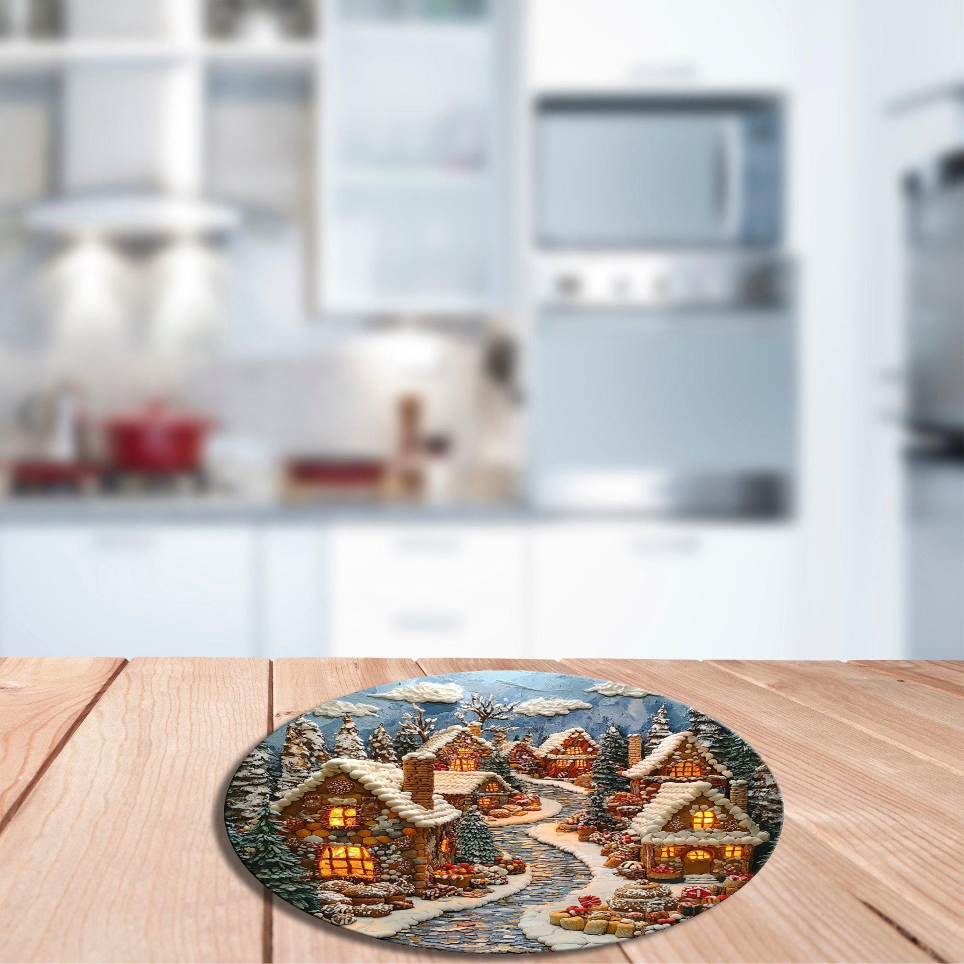 Gingerbread Village Glass Cutting Board 8-inch Round Trivet Charcuterie Board Gift for Her Mom Kitchen Decor