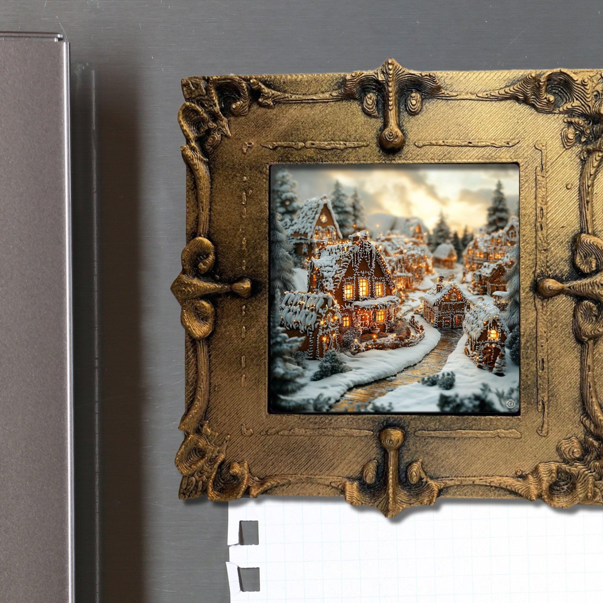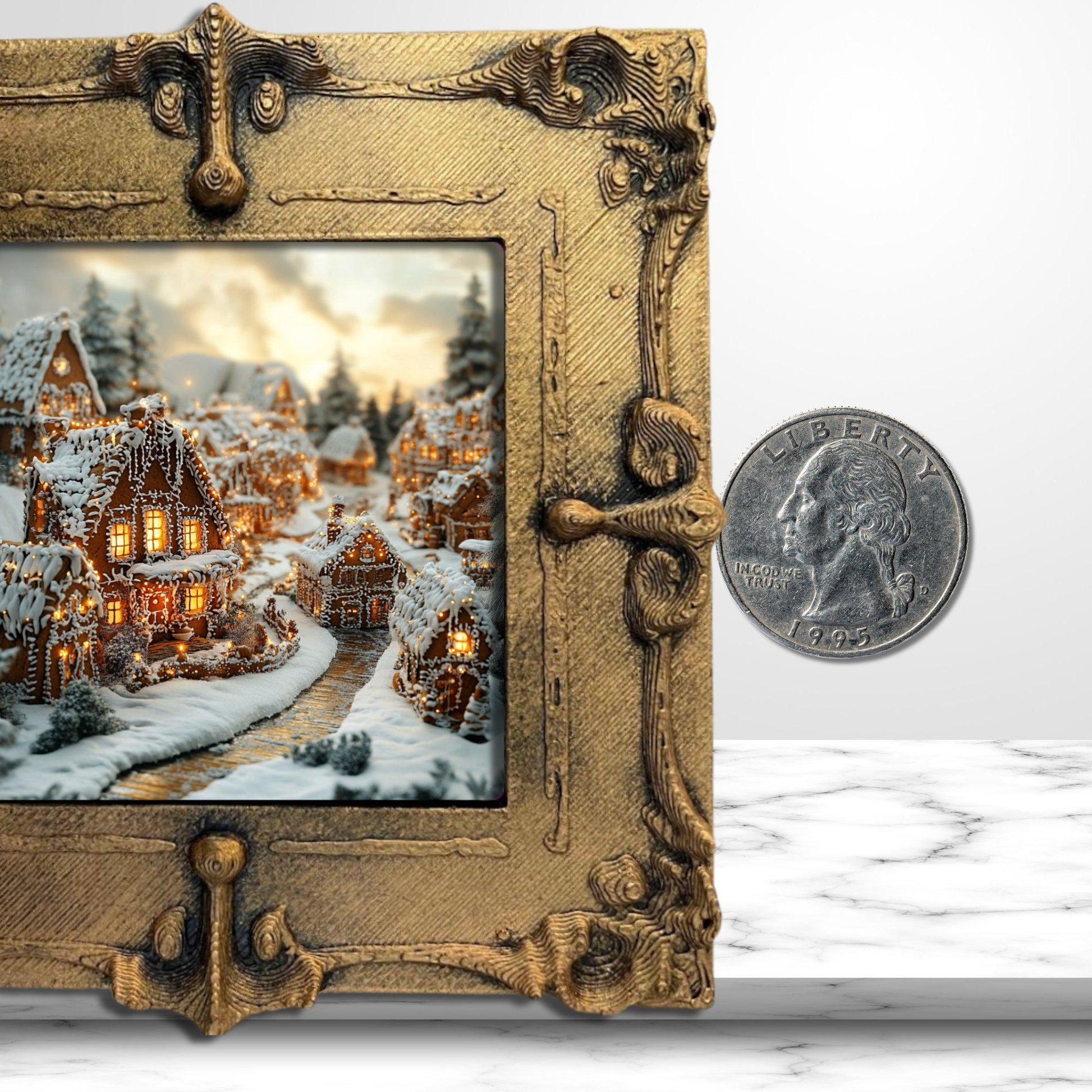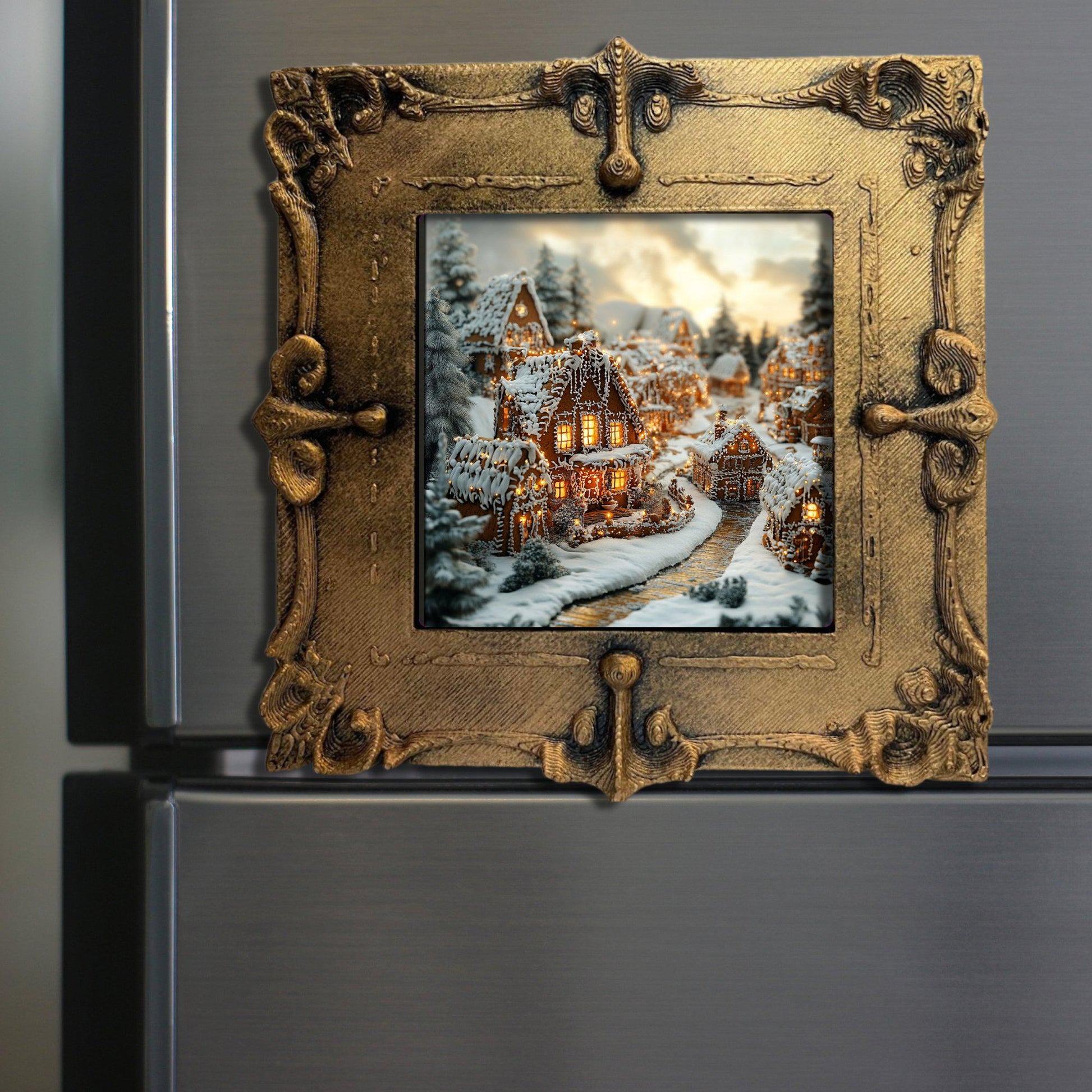 Gingerbread Village Tiny Art Fridge Magnet Gold Framed Fridgescaping Art Picture Gallery Tiny Art Gift for Her Wife Mom