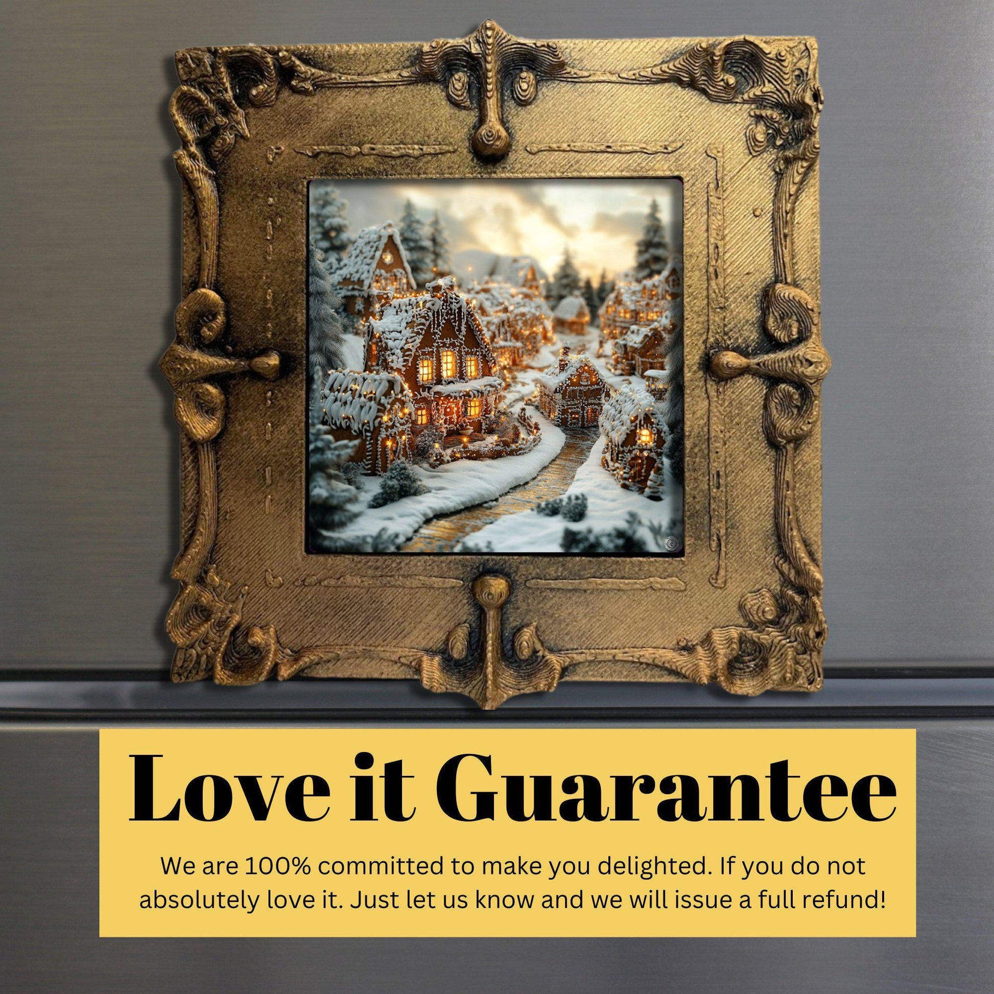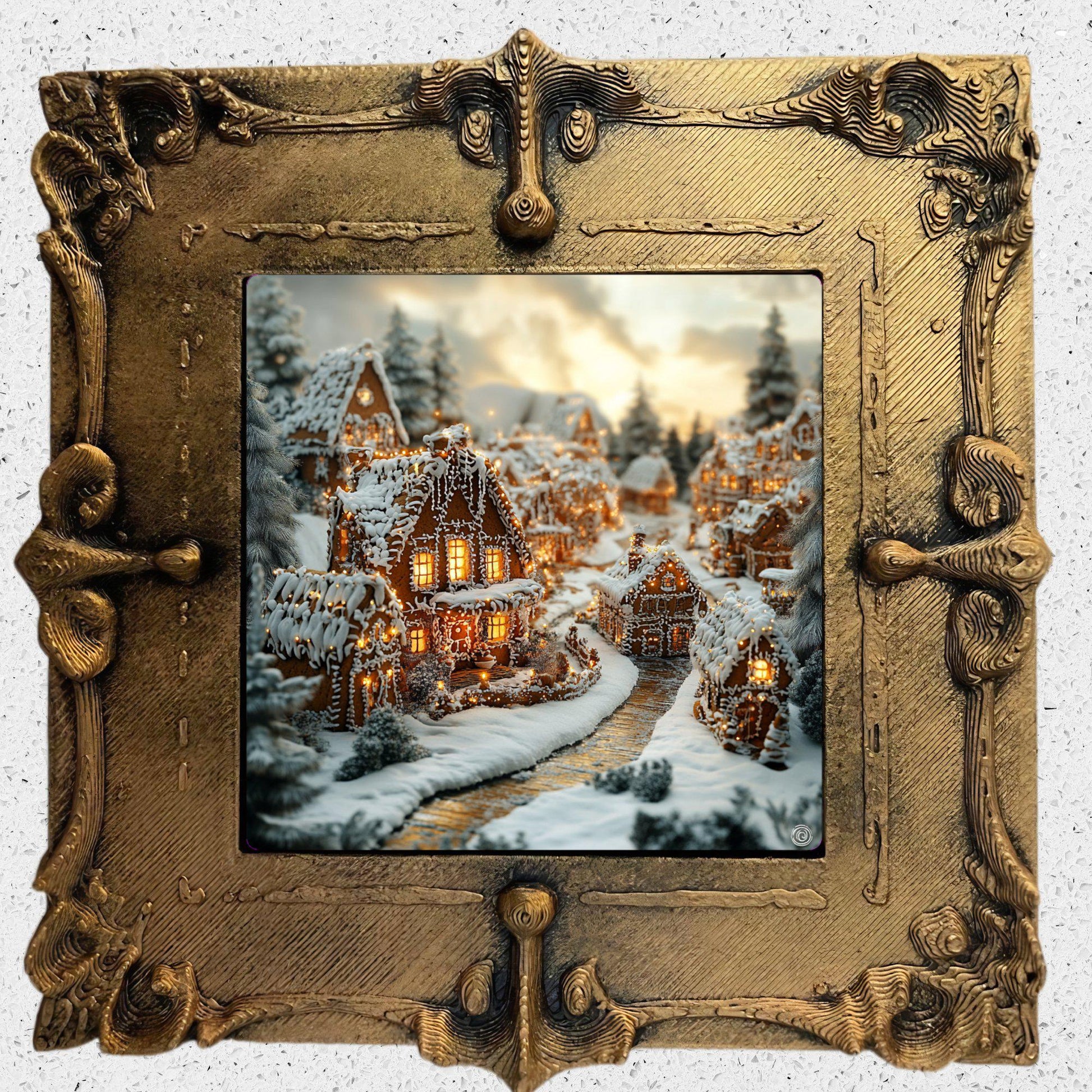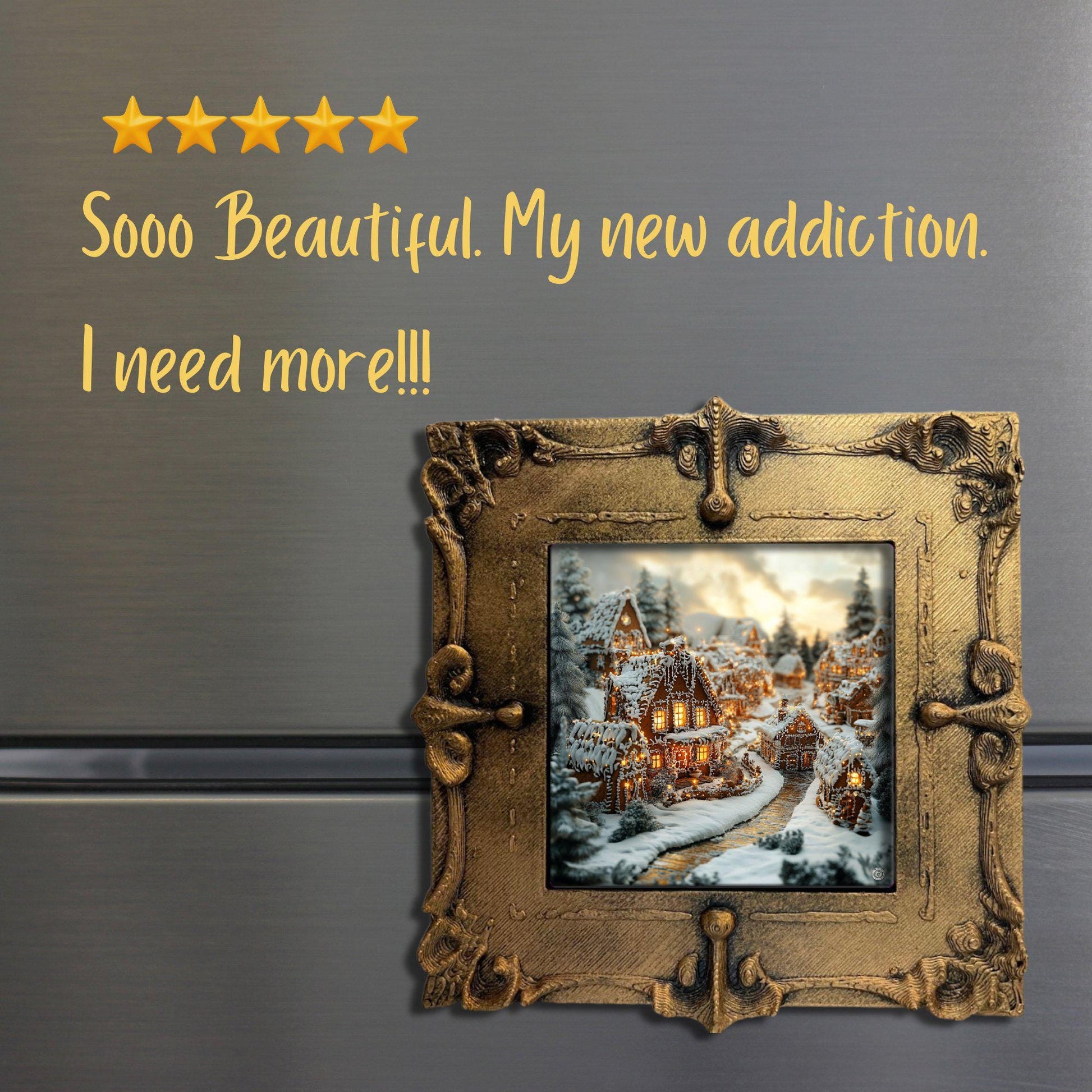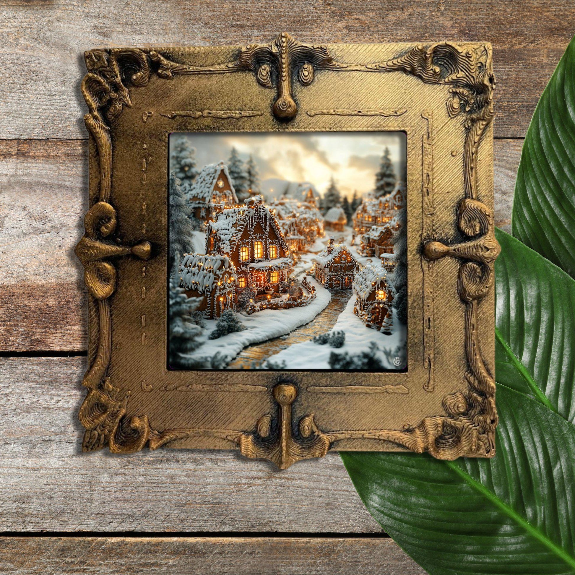 Gingerbread Village Tiny Art Fridge Magnet Gold Framed Fridgescaping Art Picture Gallery Tiny Art Gift for Her Wife Mom