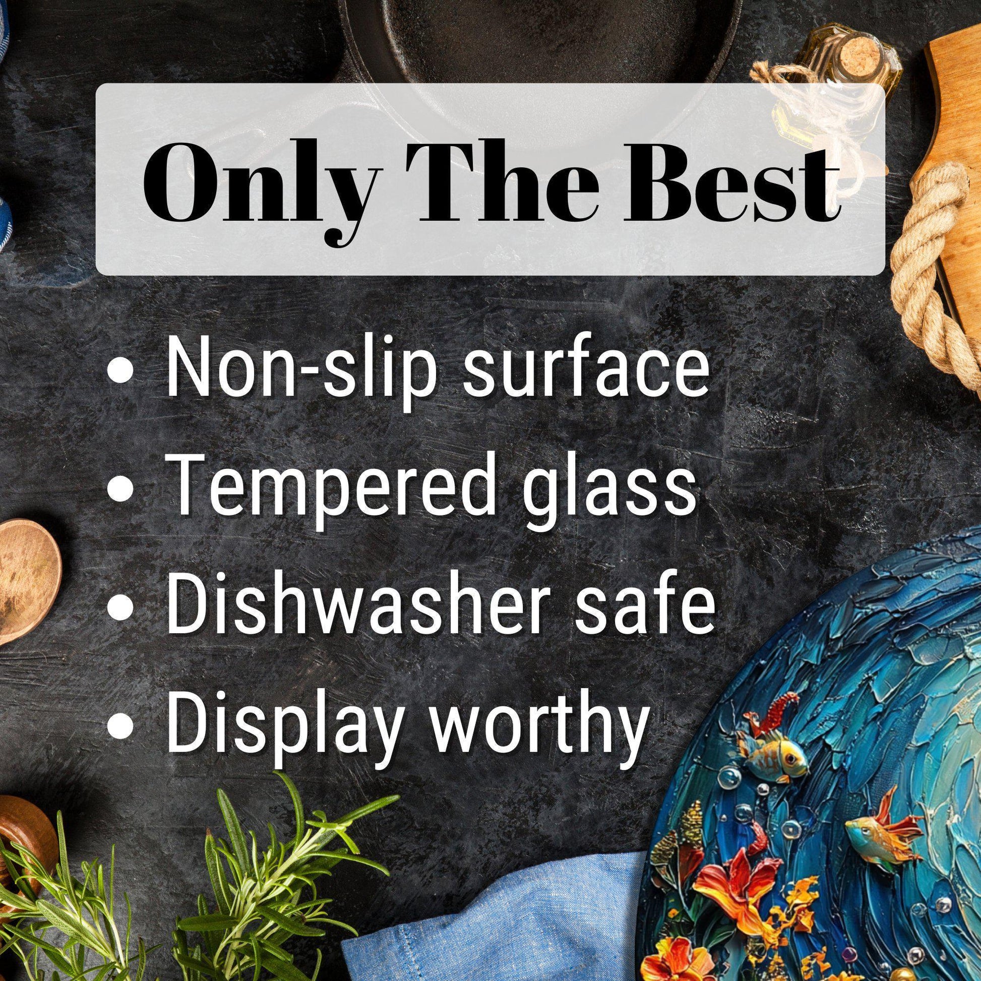 Elevate your kitchen with this functional and beautiful glass cutting board that seamlessly blends practicality with artistry.