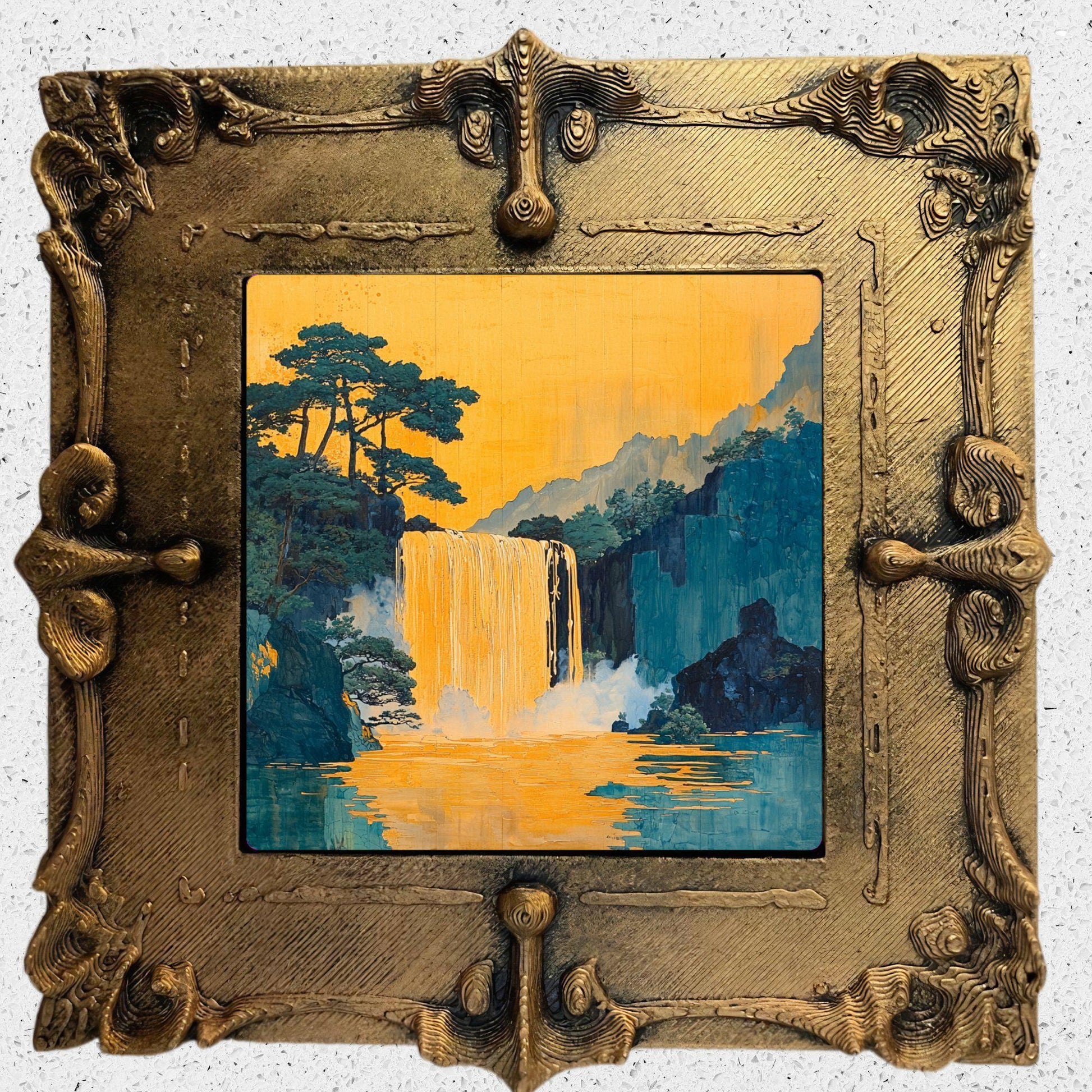 Hokisai Ukiyo Gold Framed Refrigerator Magnet, Mini Art, Grand Millennial Style, Artful Kitchen Decor, Gift for Her fridgescaping