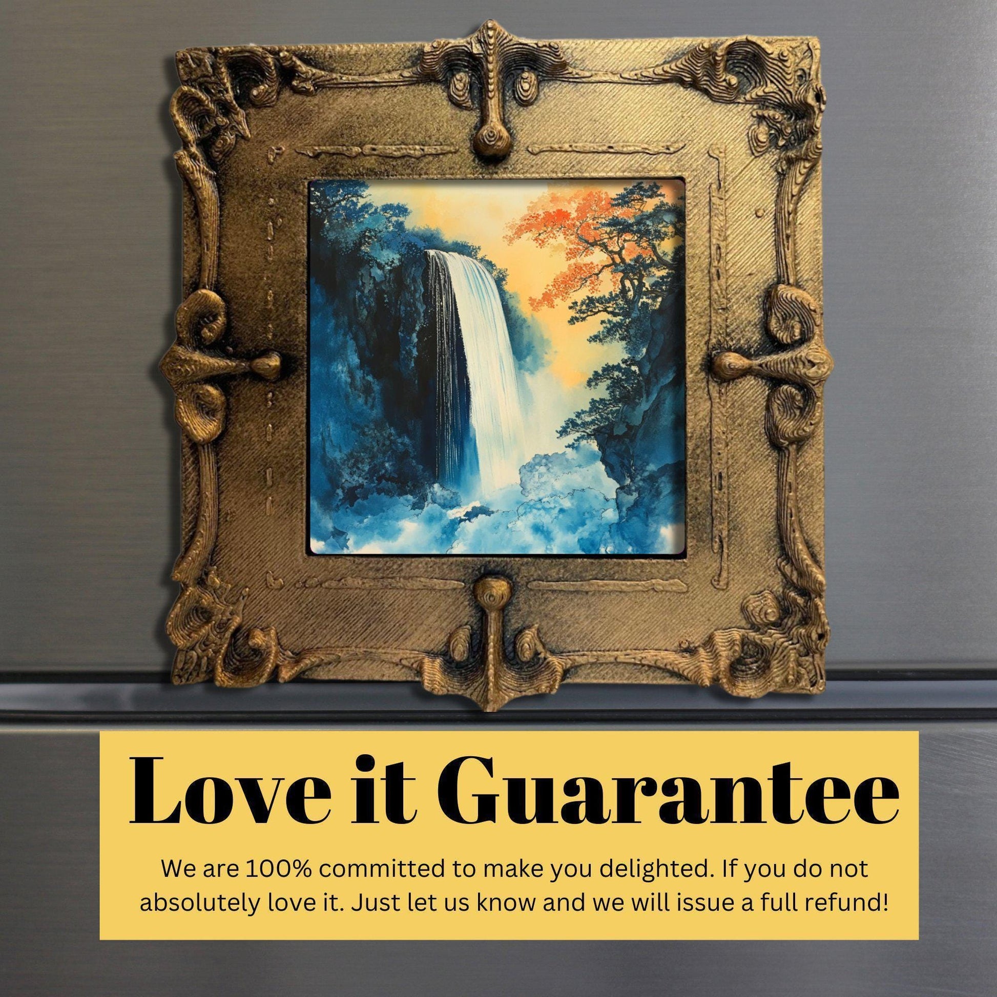 Hokisai Ukiyo Waterfall Gold Framed Refrigerator Magnet, Mini Art, Grand Millennial Style, Artful Kitchen Decor, Gift for Her fridgescaping
