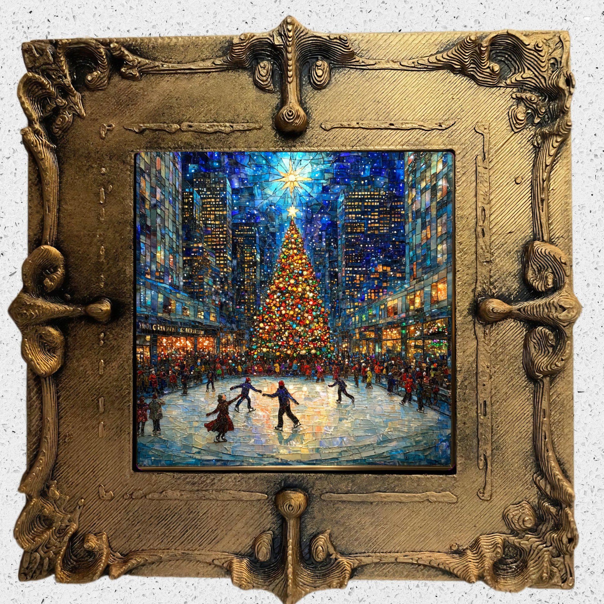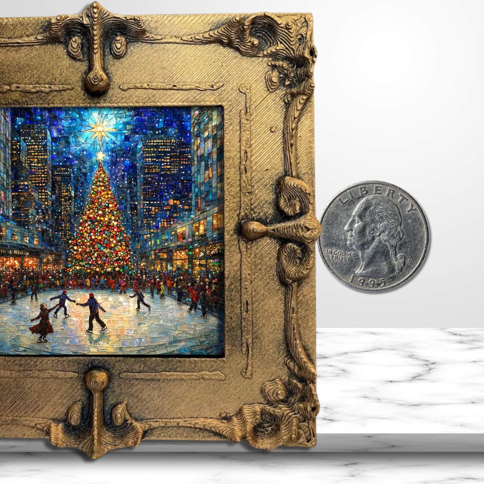 Ice Skating Rockefeller Center Tiny Art Fridge Magnet Gold Framed Fridgescaping Art Picture Gallery Tiny Gift for Her Wife Mom