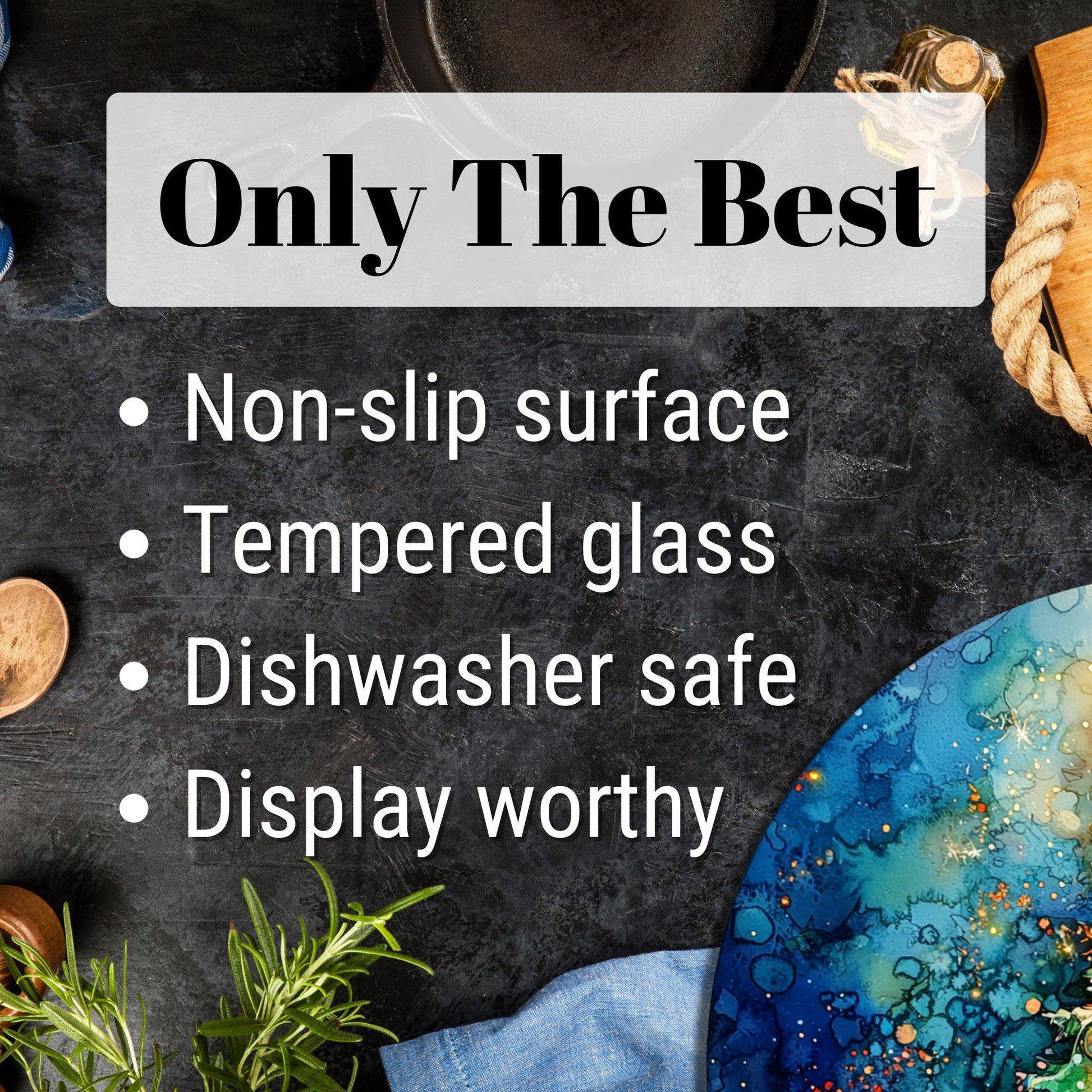 Elevate your kitchen with this functional and beautiful glass cutting board that seamlessly blends practicality with artistry.