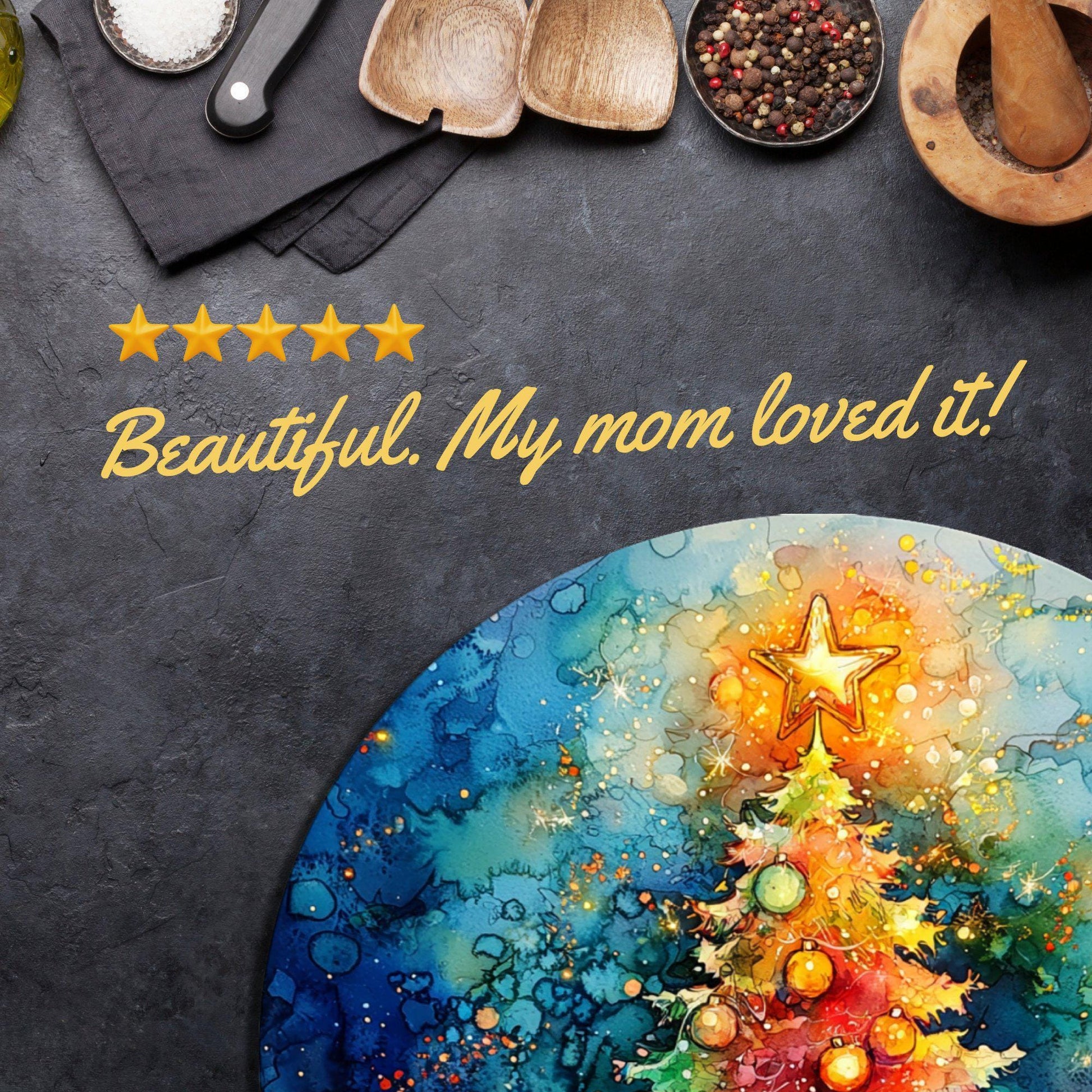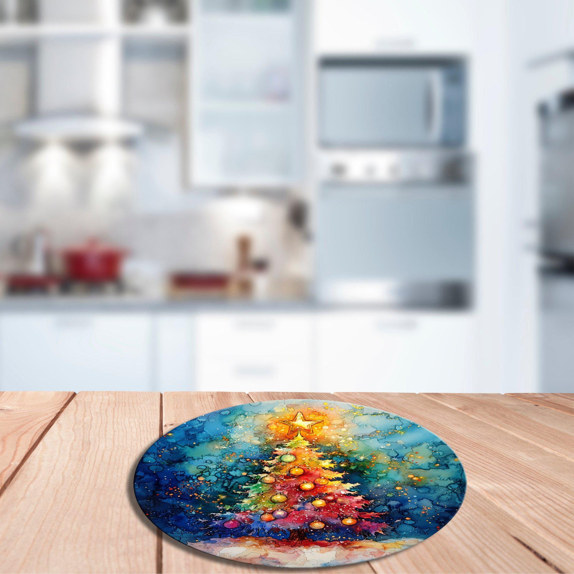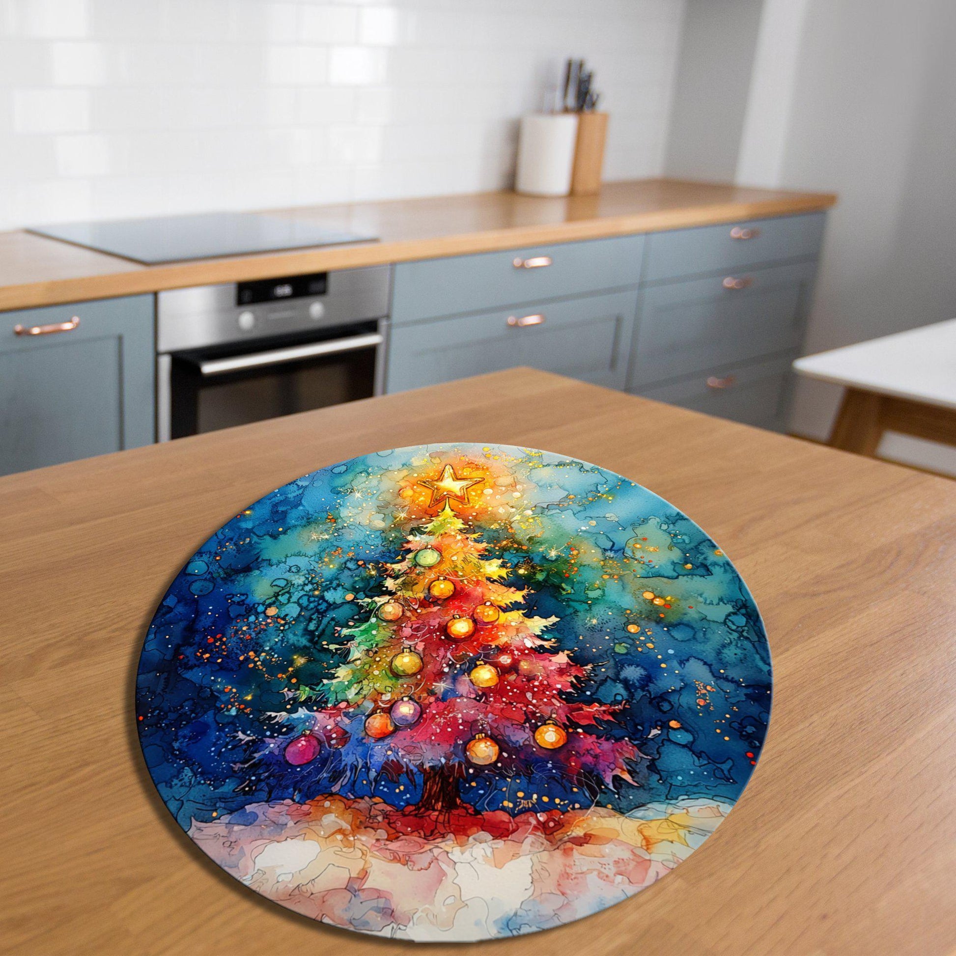 Kawaii Christmas Tree Glass Cutting Board 8-inch Round Trivet Charcuterie Board Gift for Her Mom Kitchen Decor