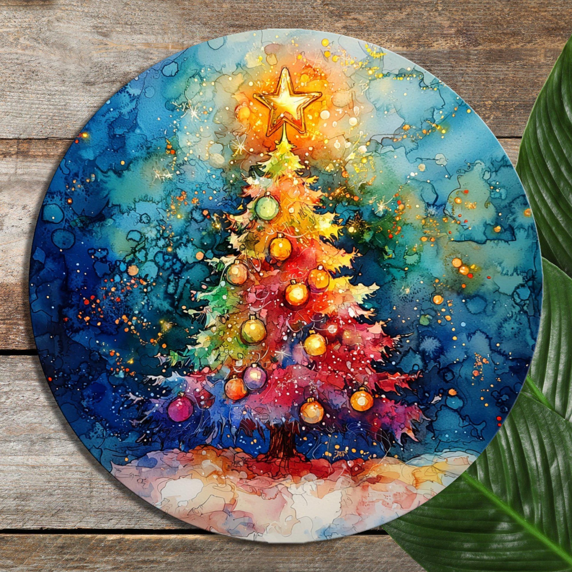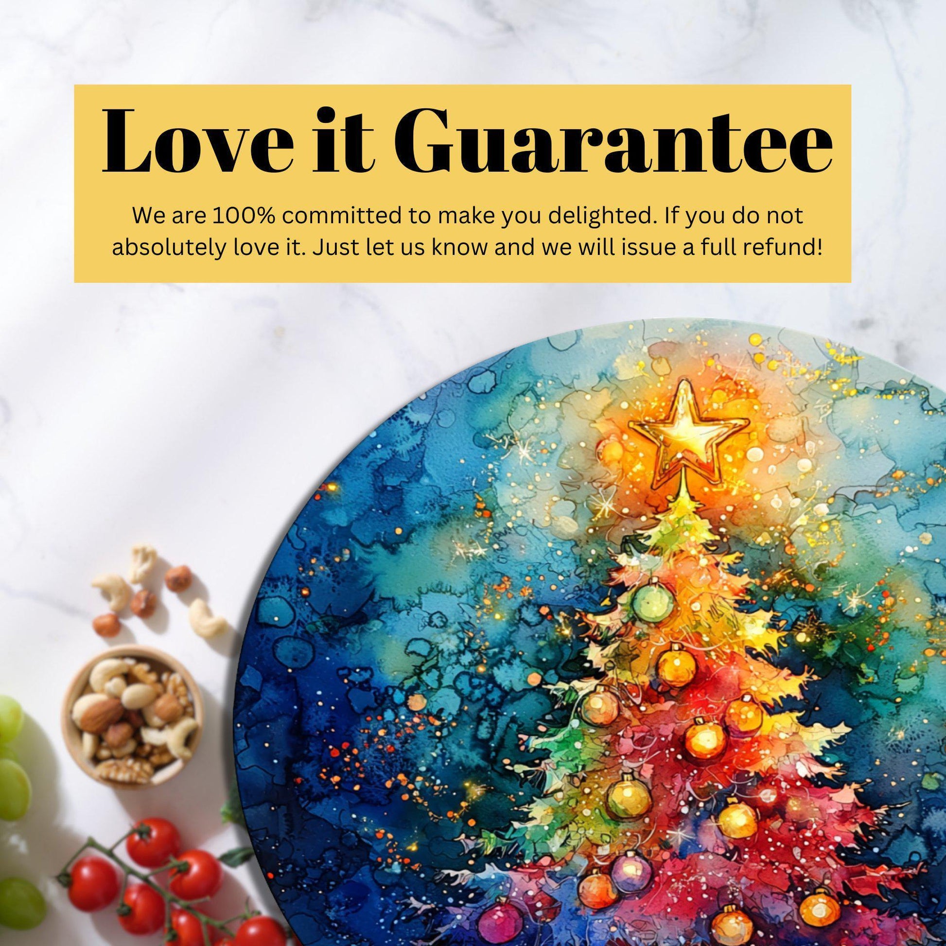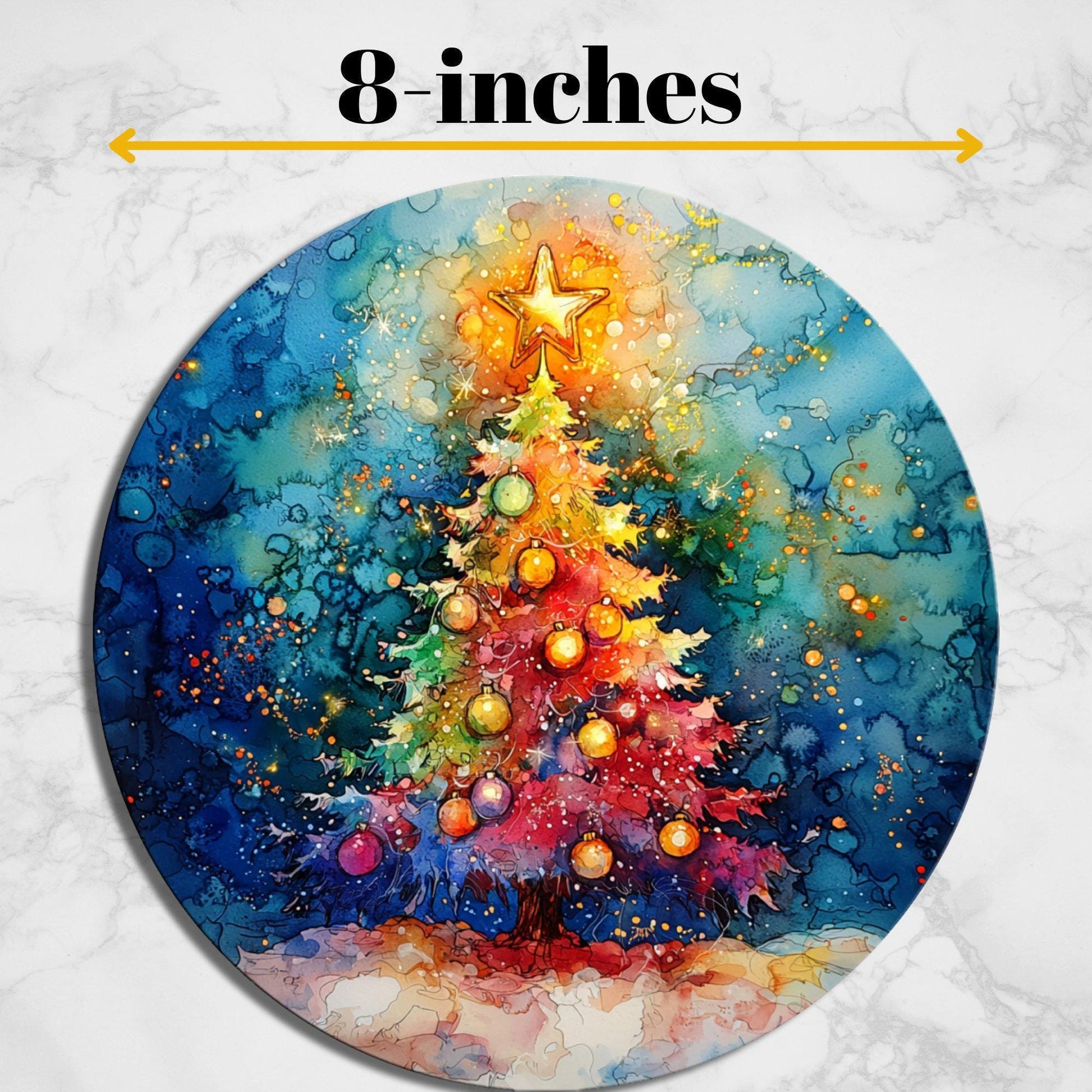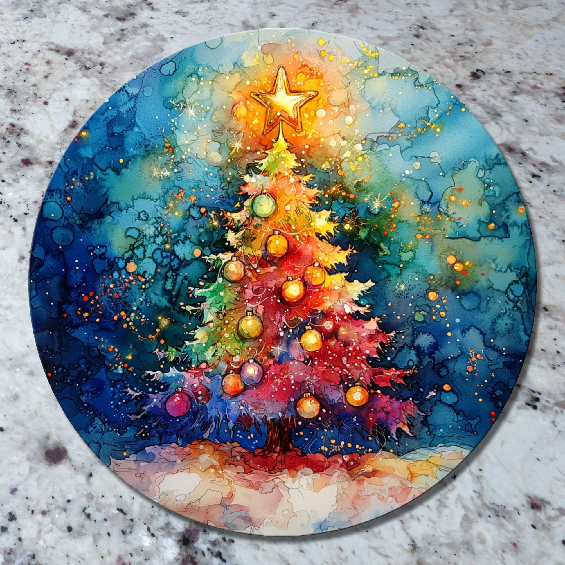 Kawaii Christmas Tree Glass Cutting Board 8-inch Round Trivet Charcuterie Board Gift for Her Mom Kitchen Decor
