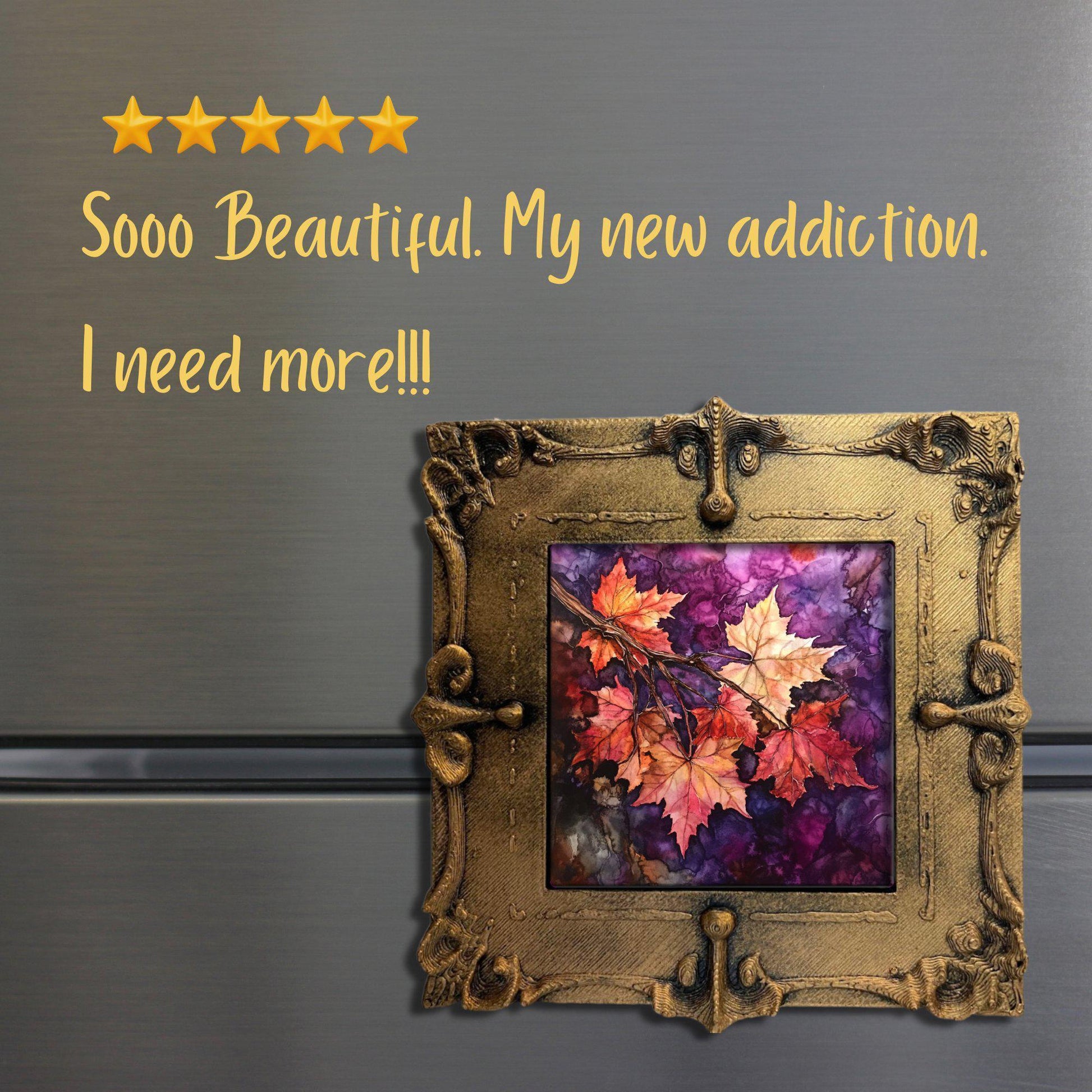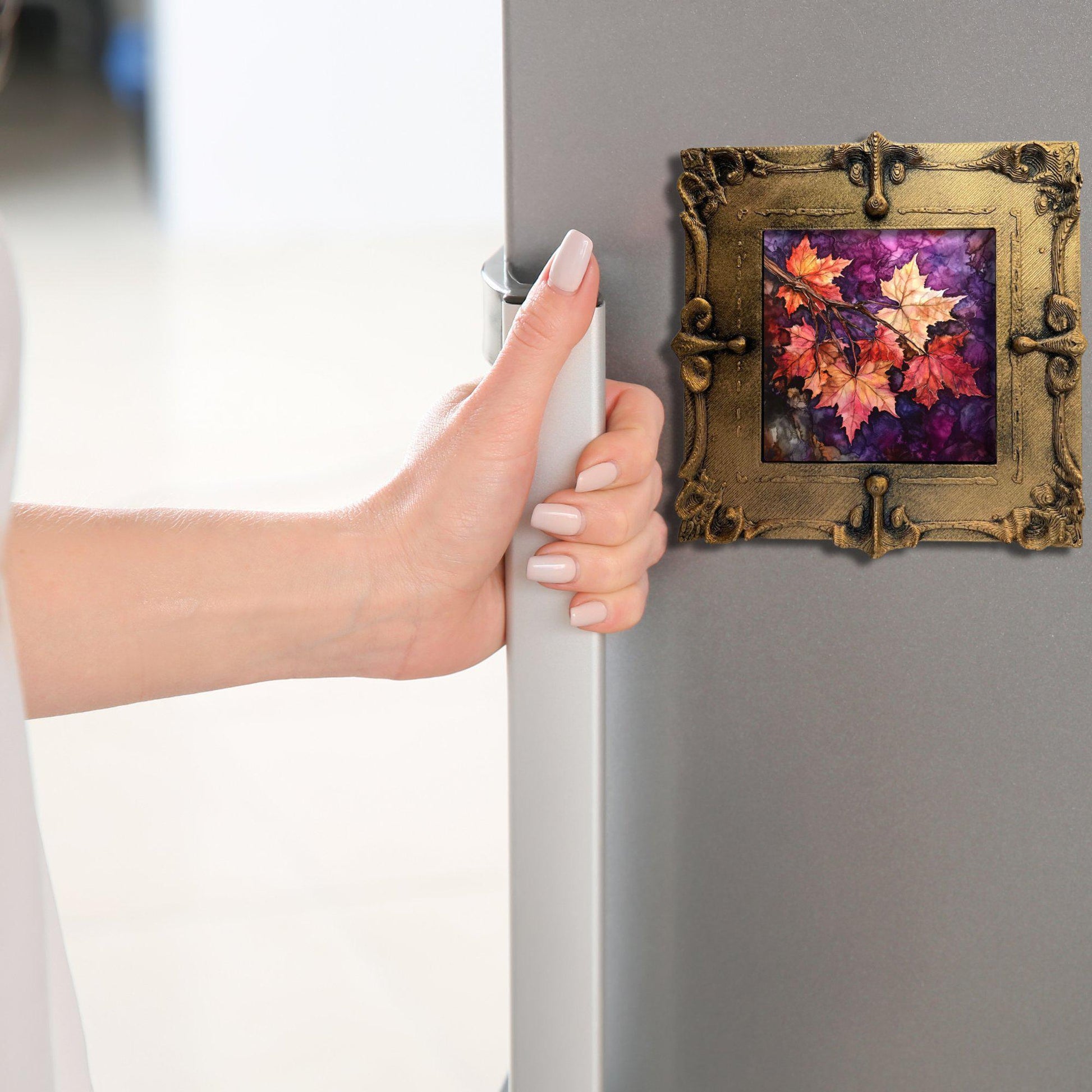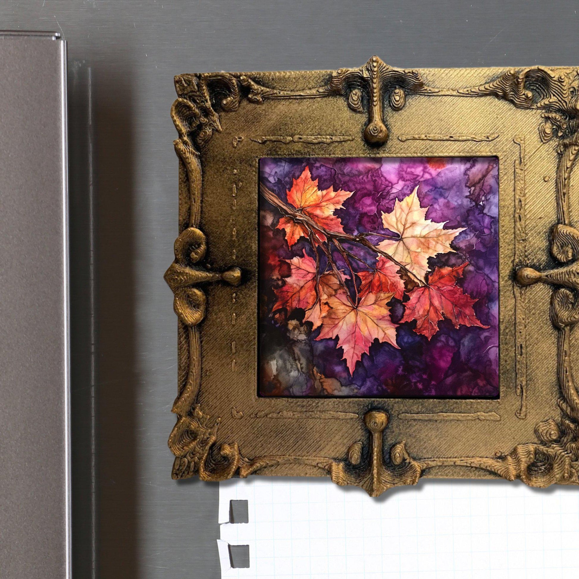 Maple Leaves Gold Framed Refrigerator Magnet, Mini Art, Grand Millennial Style, Artful Kitchen Decor, Gift for Her fridgescaping