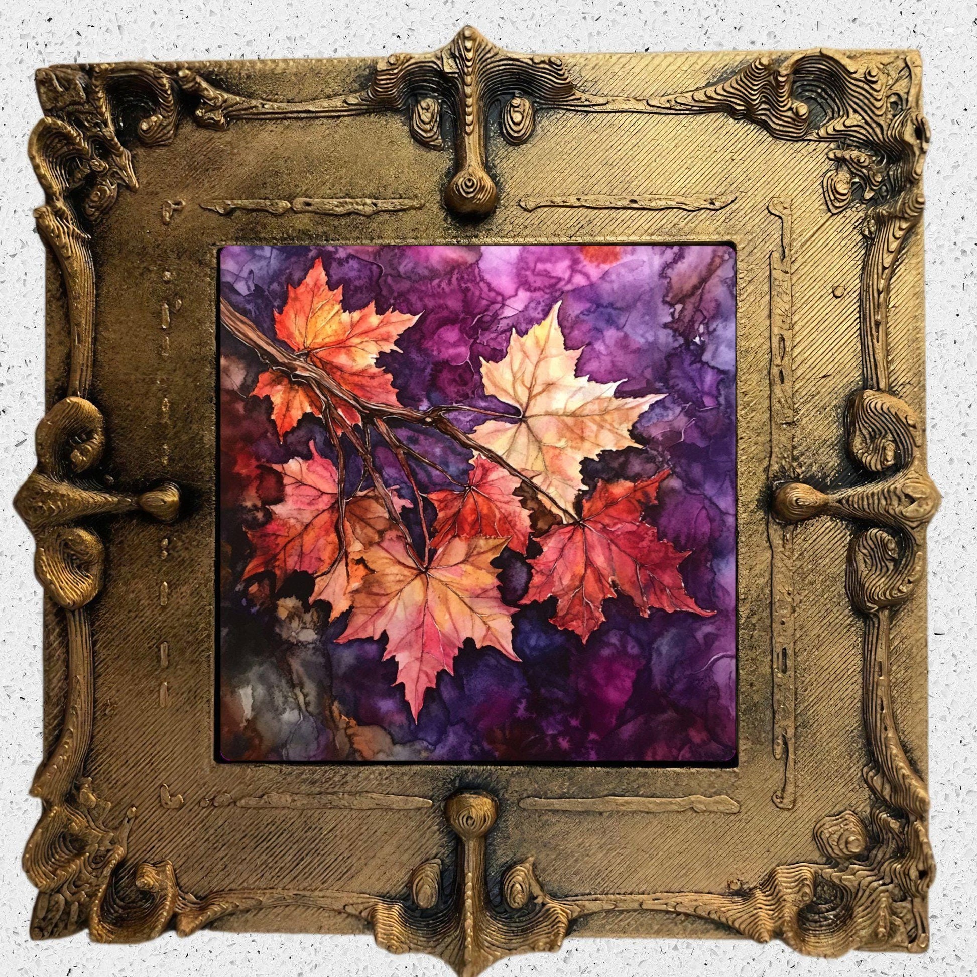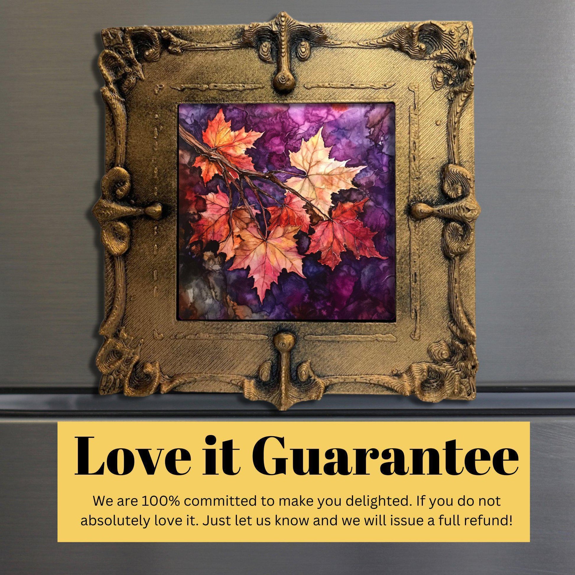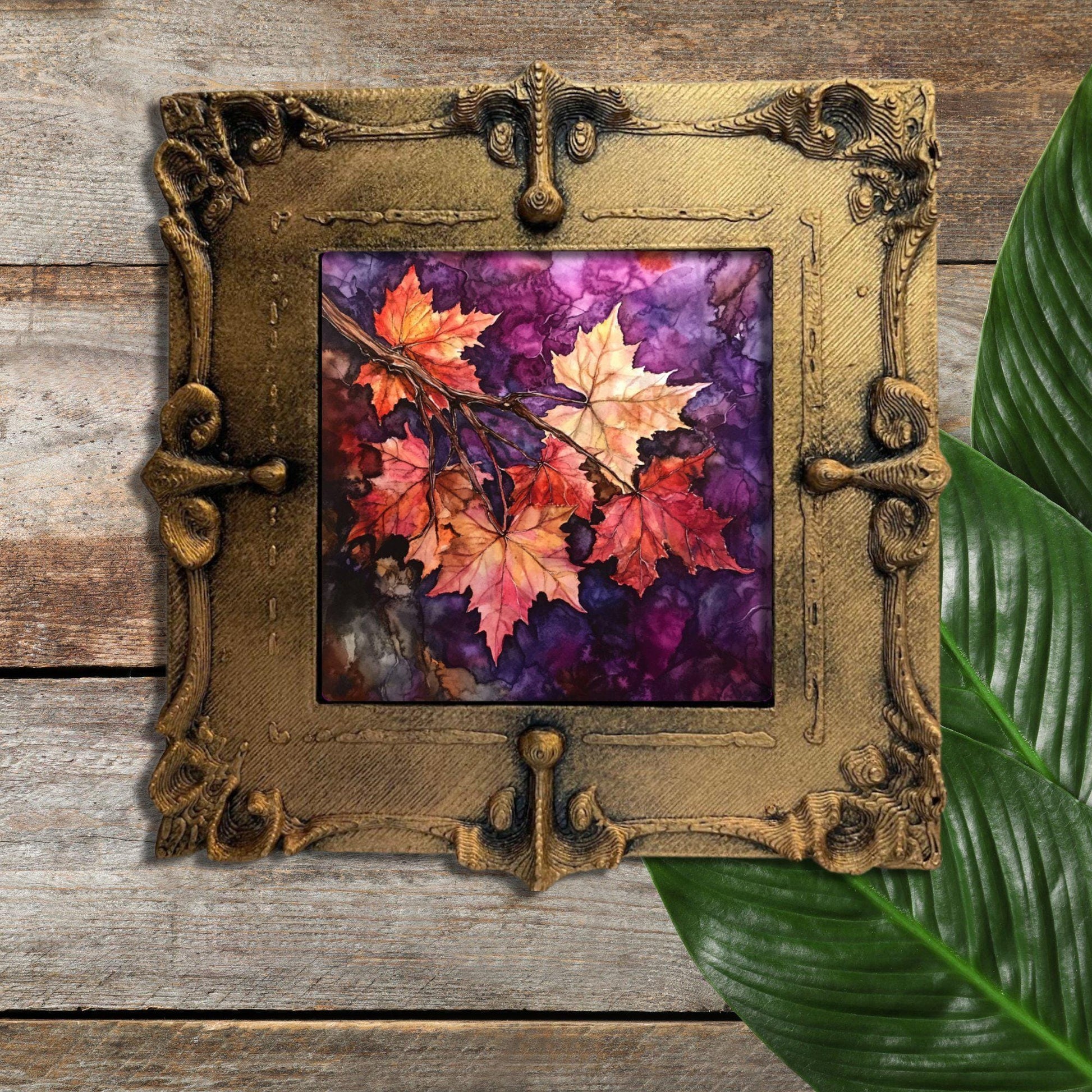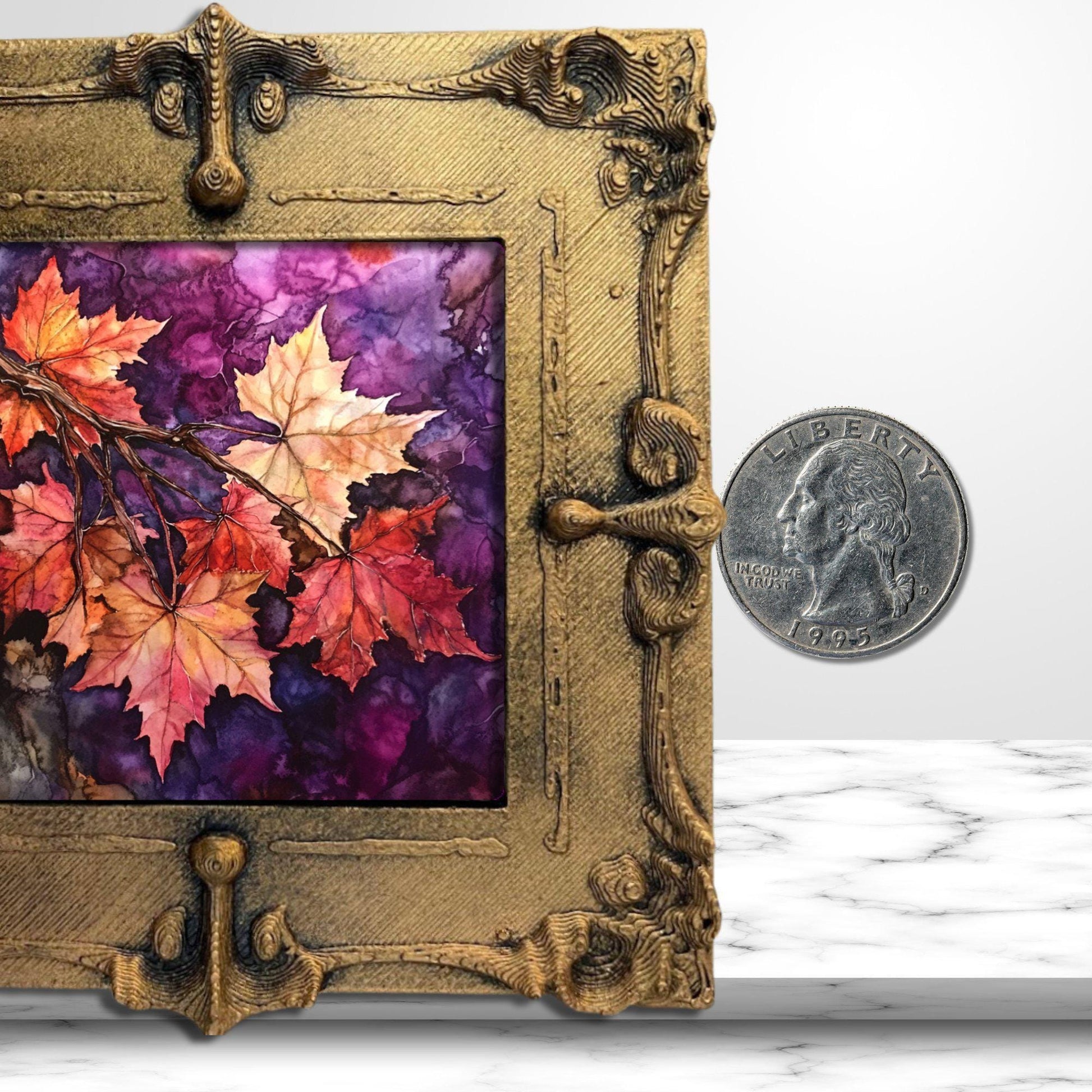 Maple Leaves Gold Framed Refrigerator Magnet, Mini Art, Grand Millennial Style, Artful Kitchen Decor, Gift for Her fridgescaping