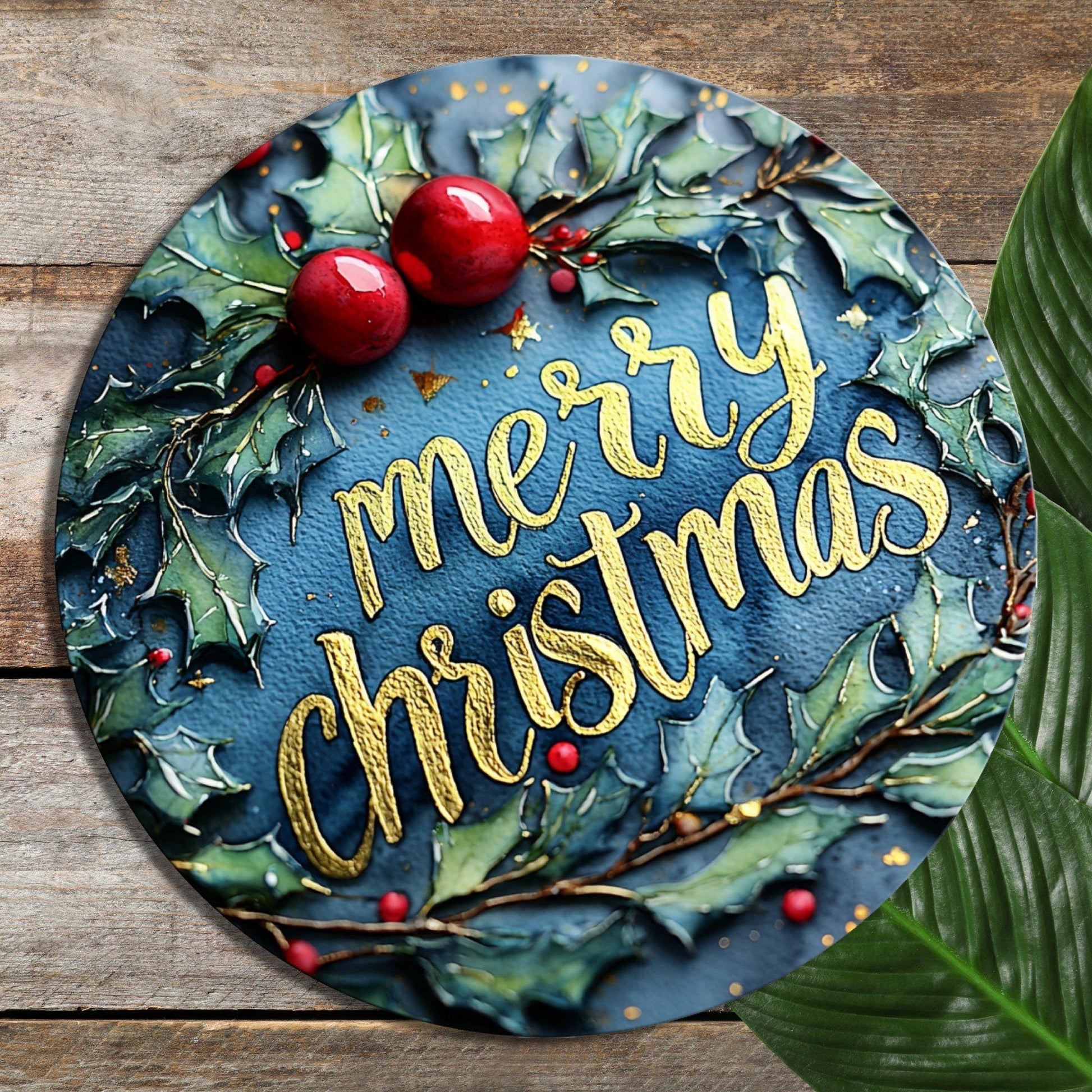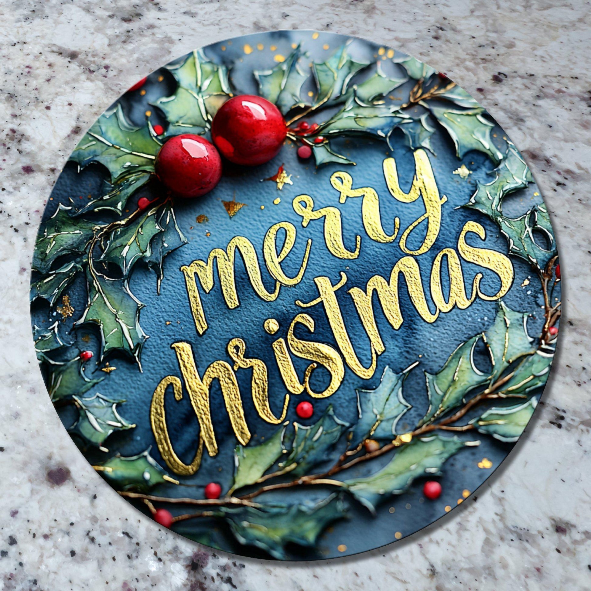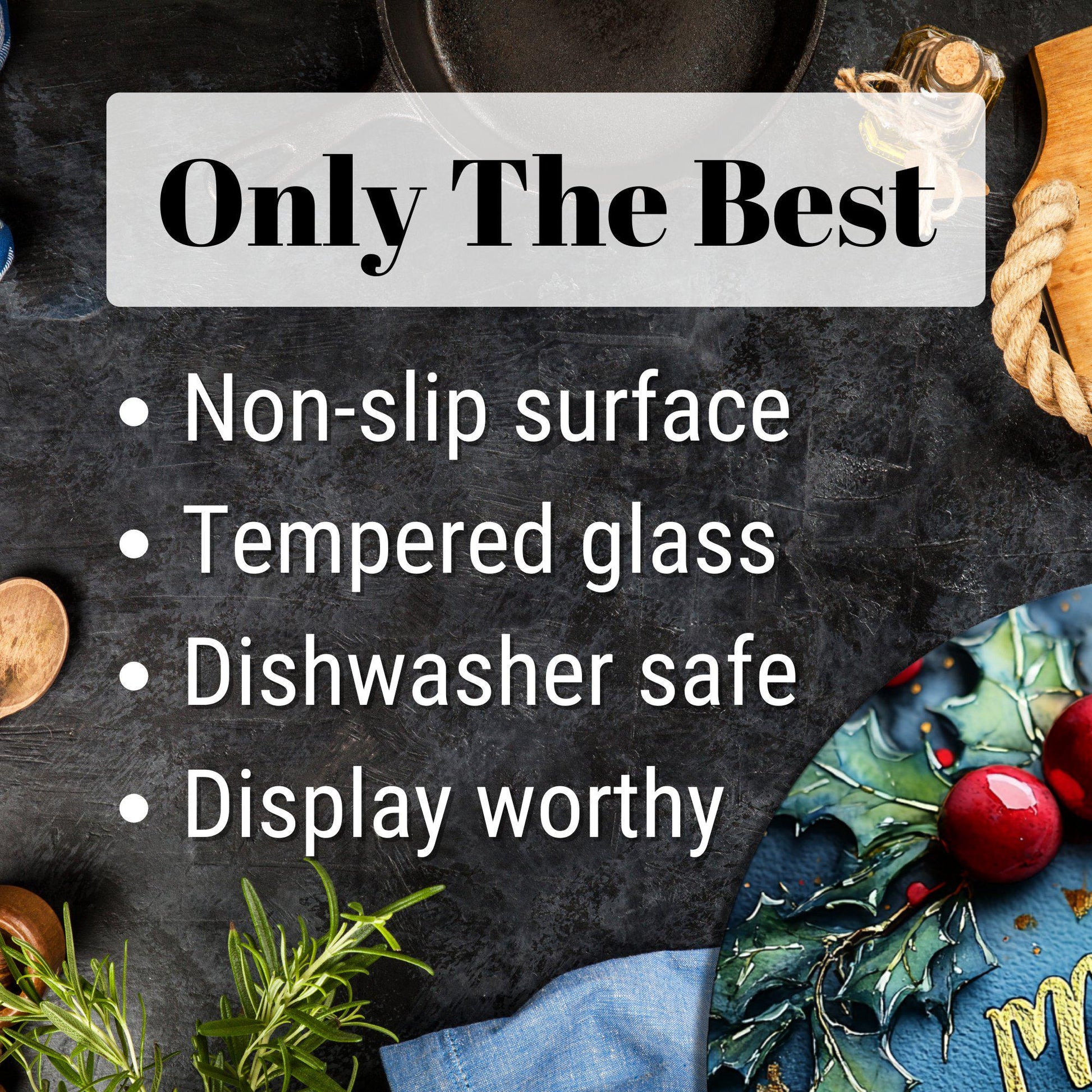 Merry Christmas Holly Glass Cutting Board 8-inch Round Trivet Charcuterie Board Gift for Her Mom Kitchen Decor