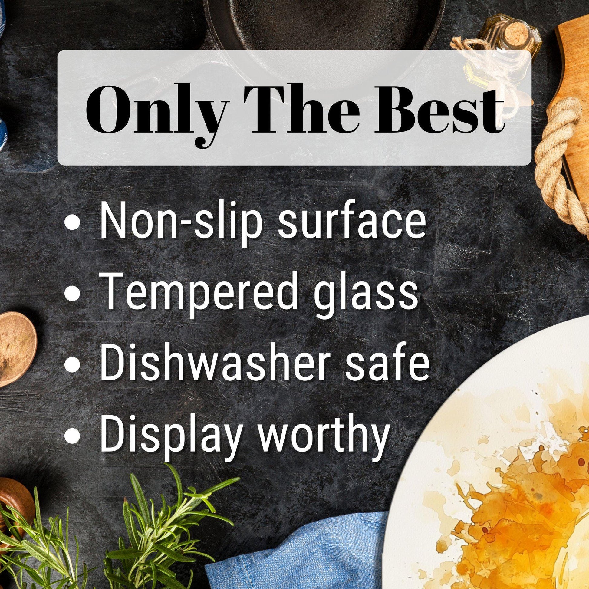 Elevate your kitchen with this functional and beautiful glass cutting board that seamlessly blends practicality with artistry.
