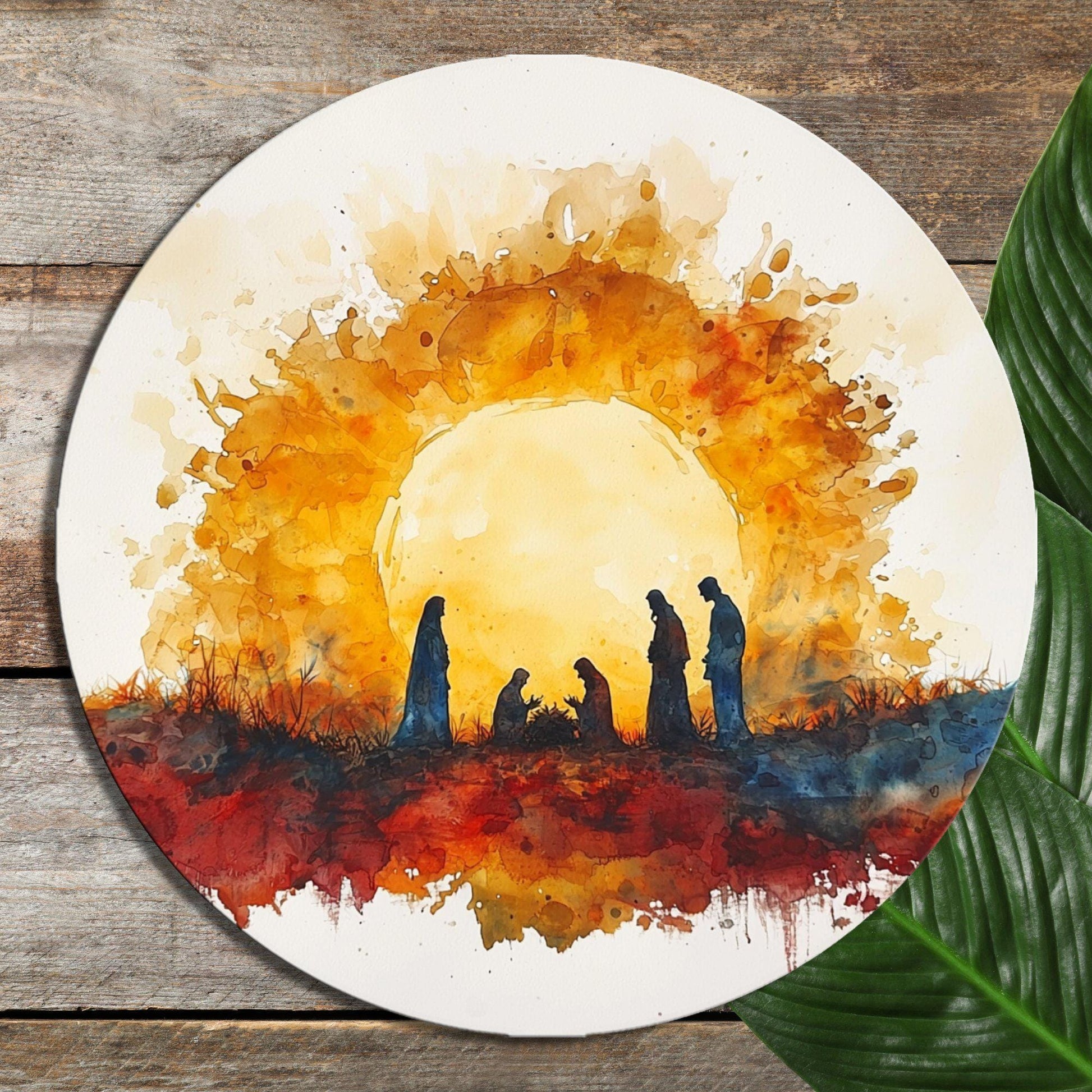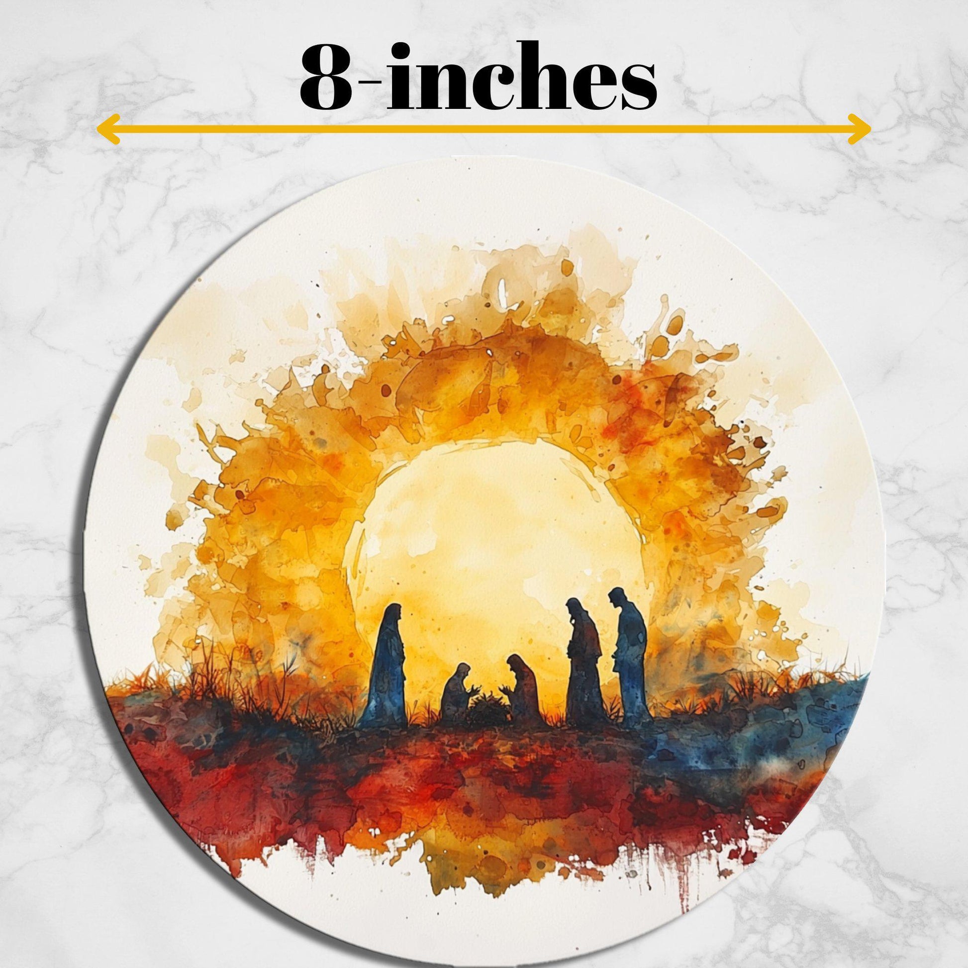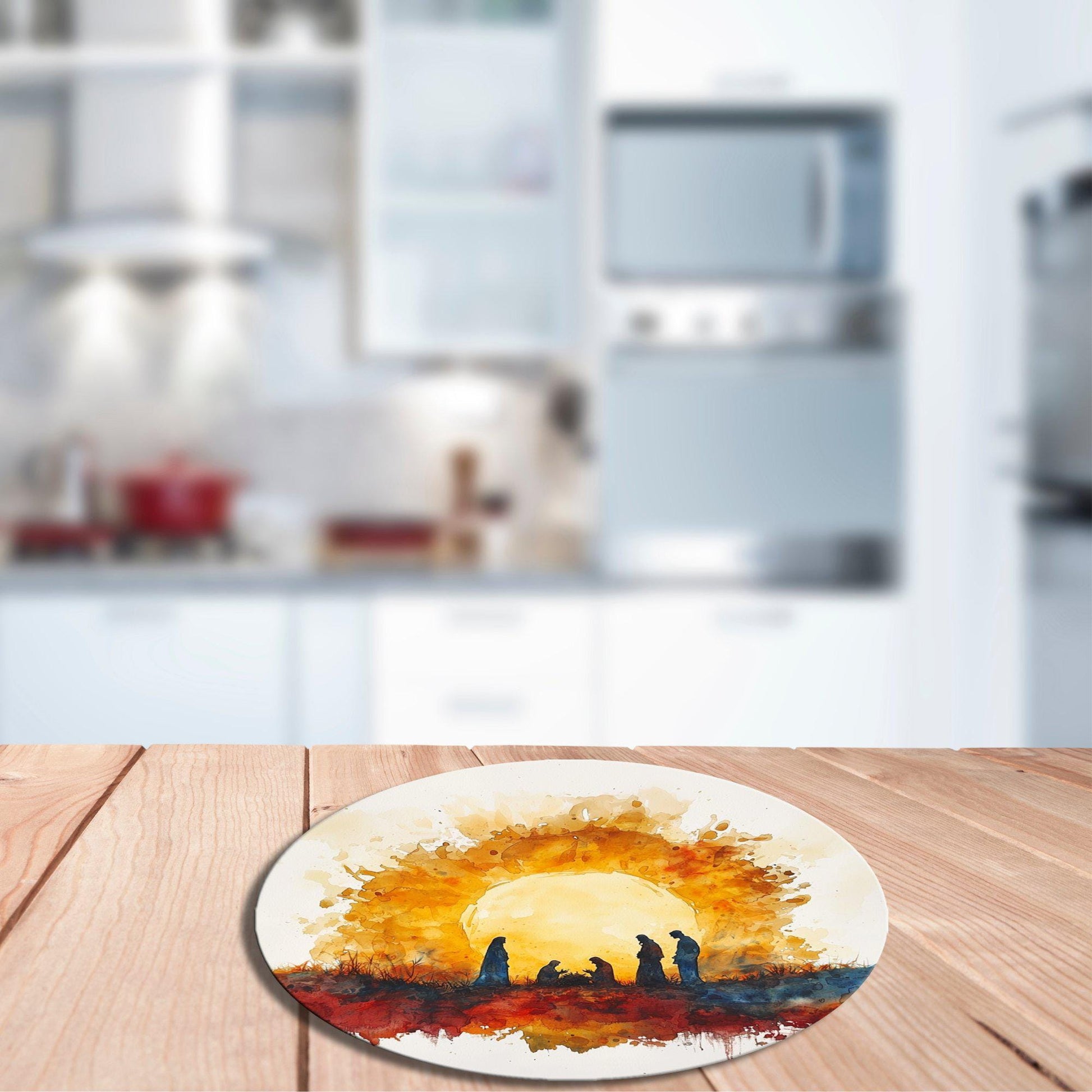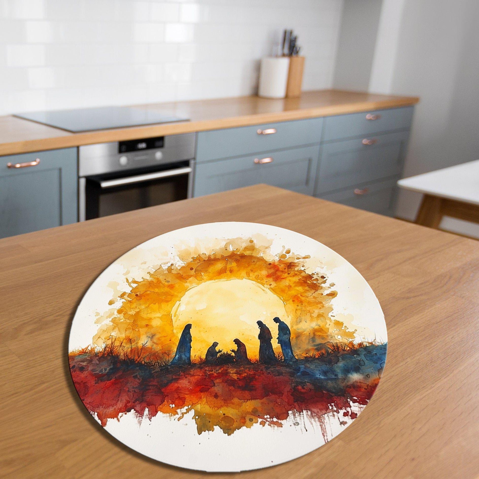 Minimalist Nativity Scene Glass Cutting Board 8-inch Round Trivet Charcuterie Board Gift for Her Mom Kitchen Decor