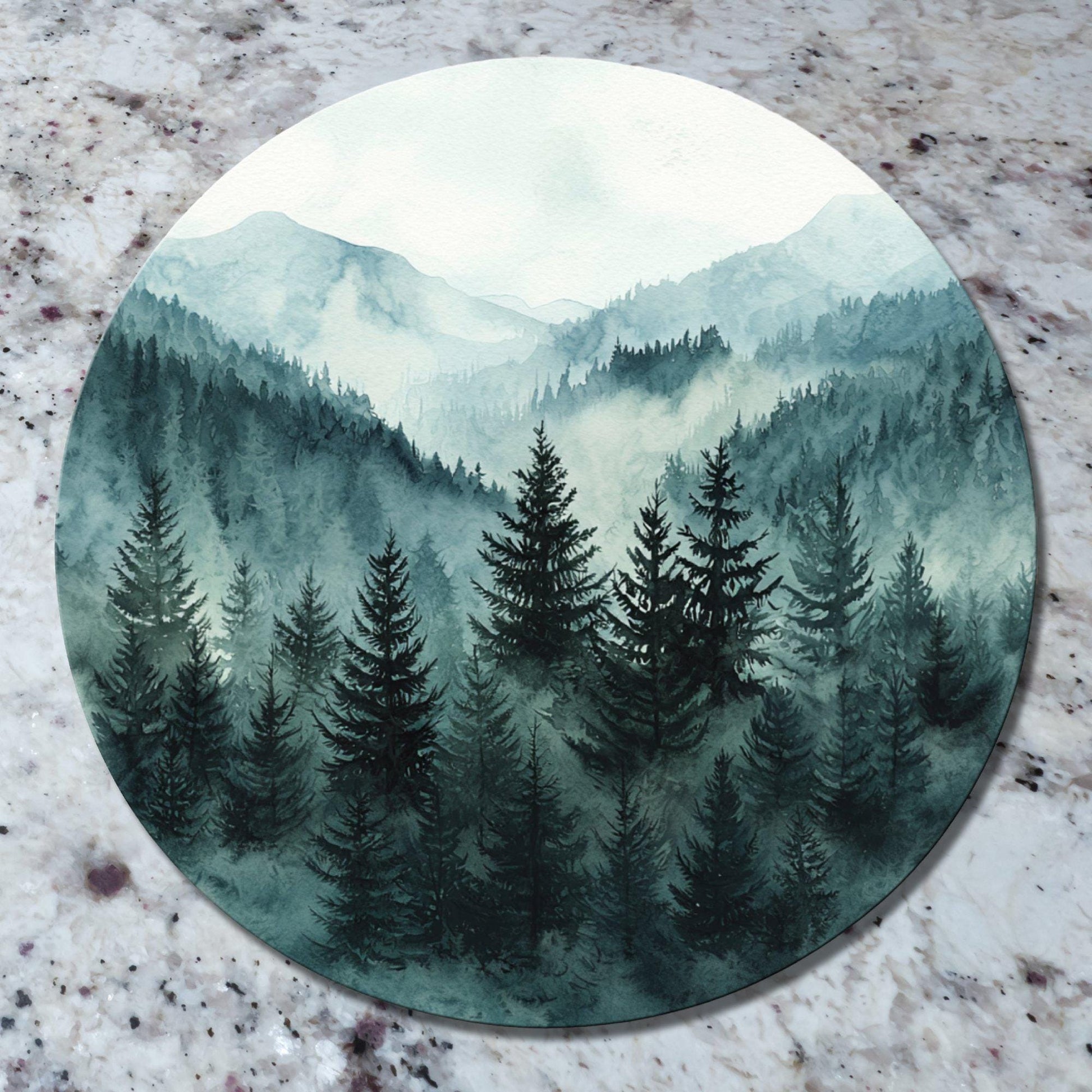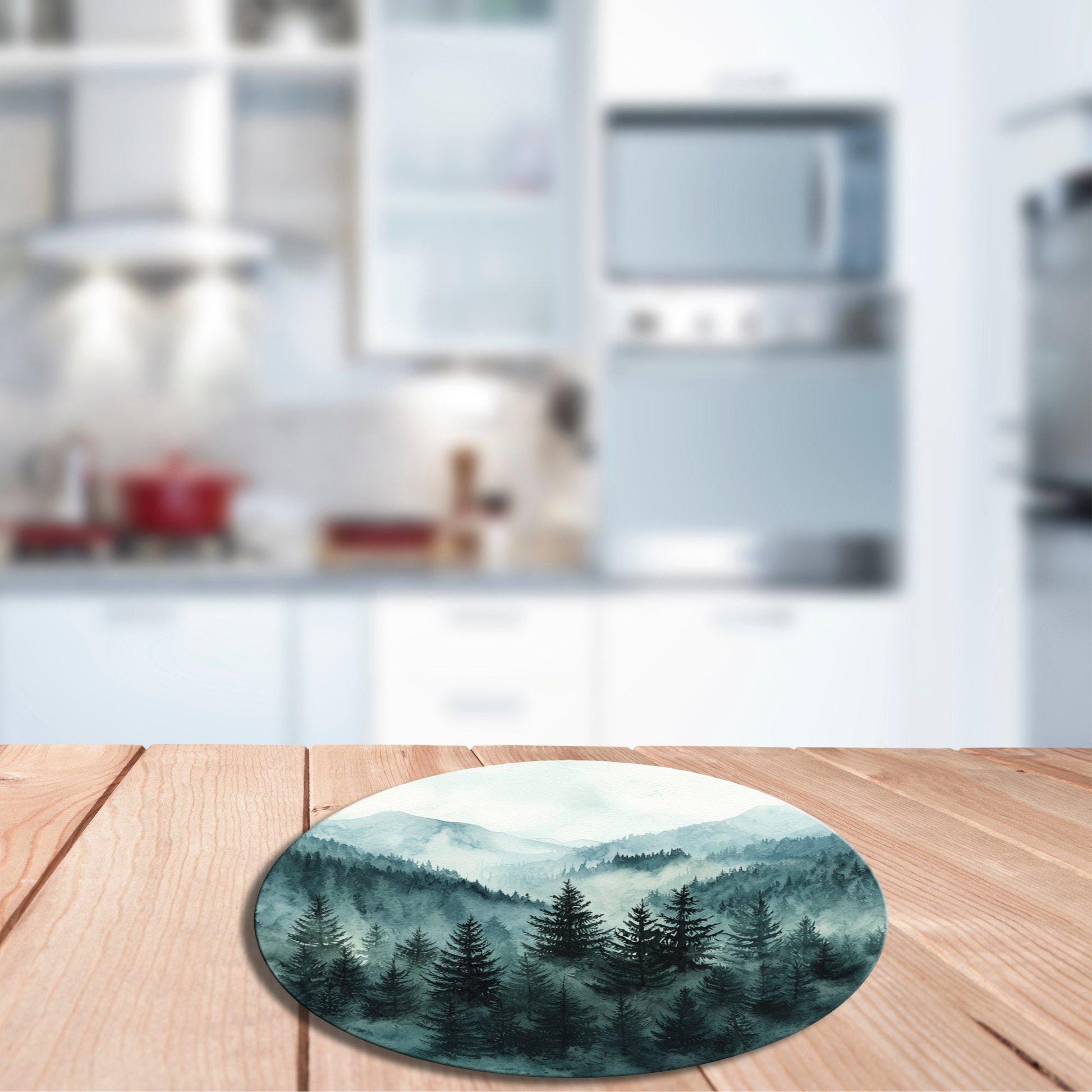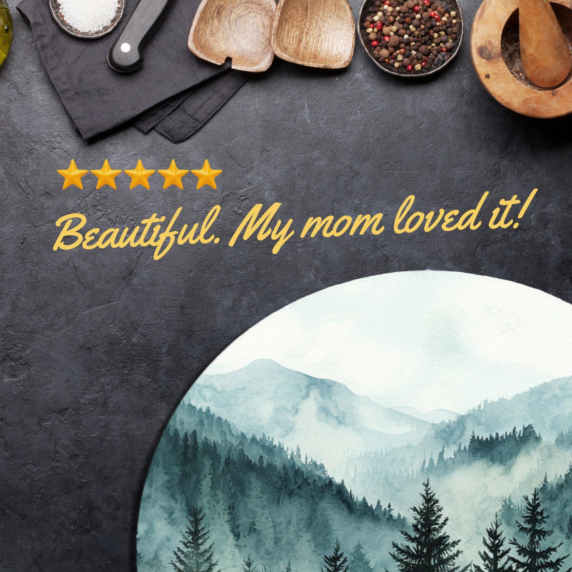 Misty Green Forest Hills Glass Cutting Board 8-inch Round Trivet Charcuterie Board Gift for Her Mom Kitchen Decor