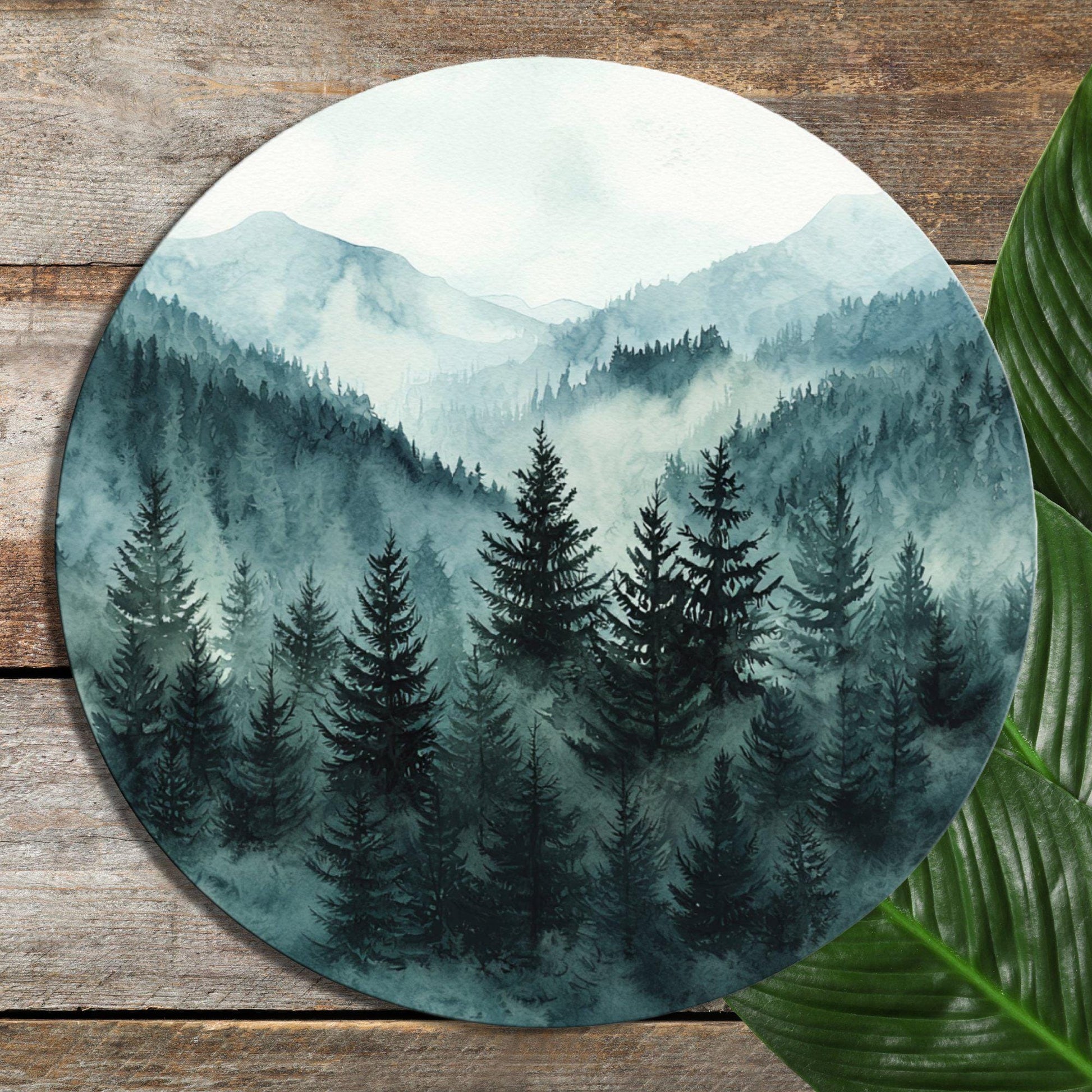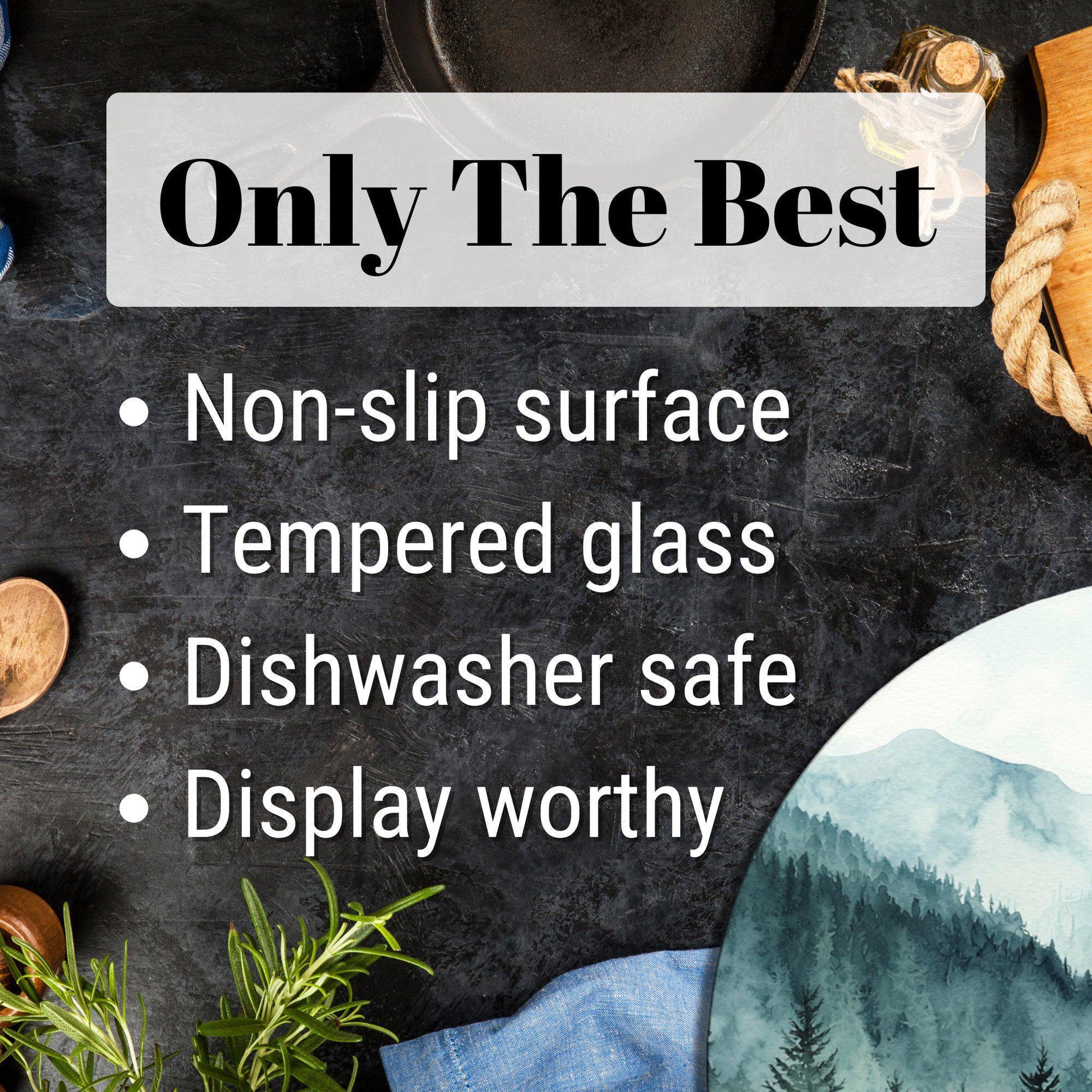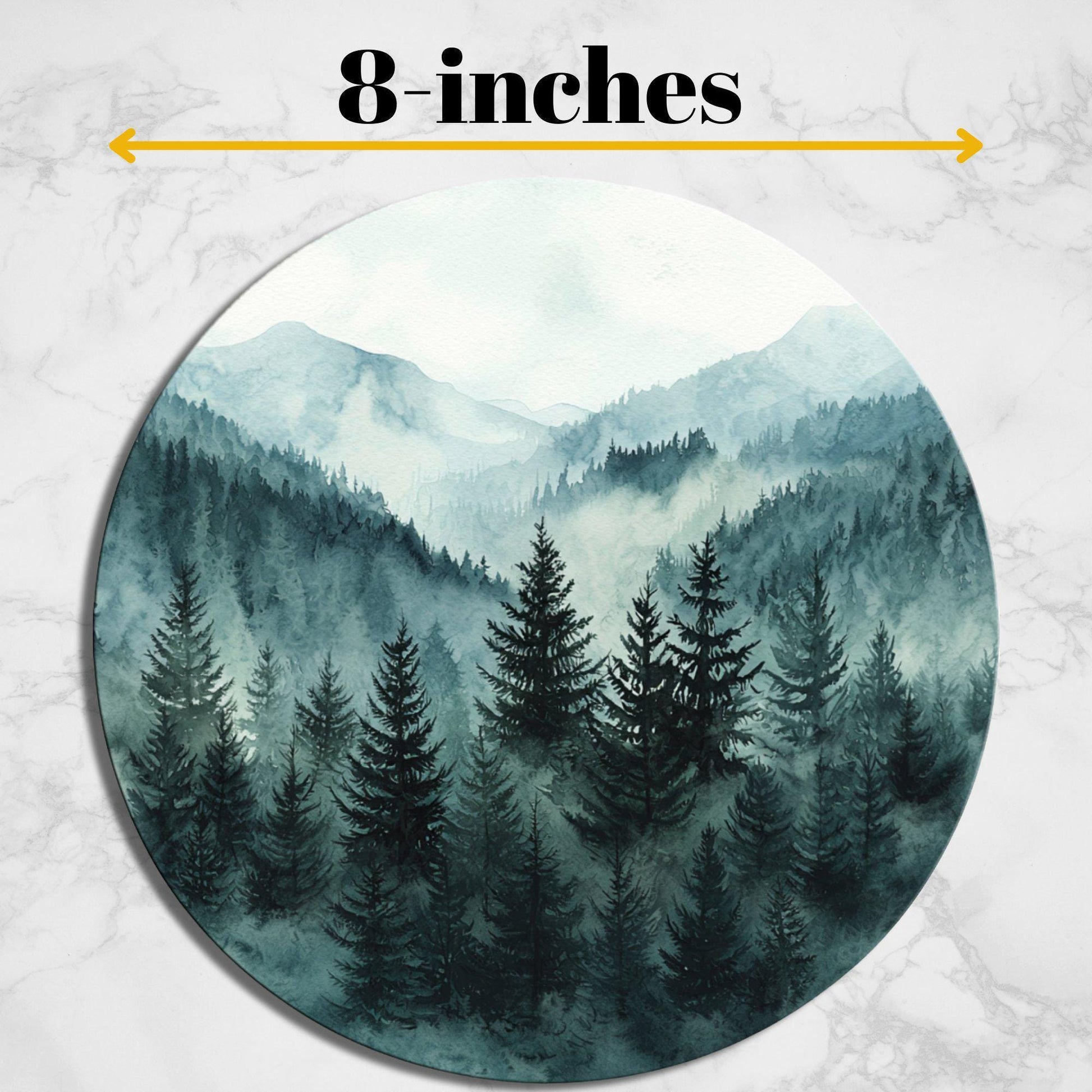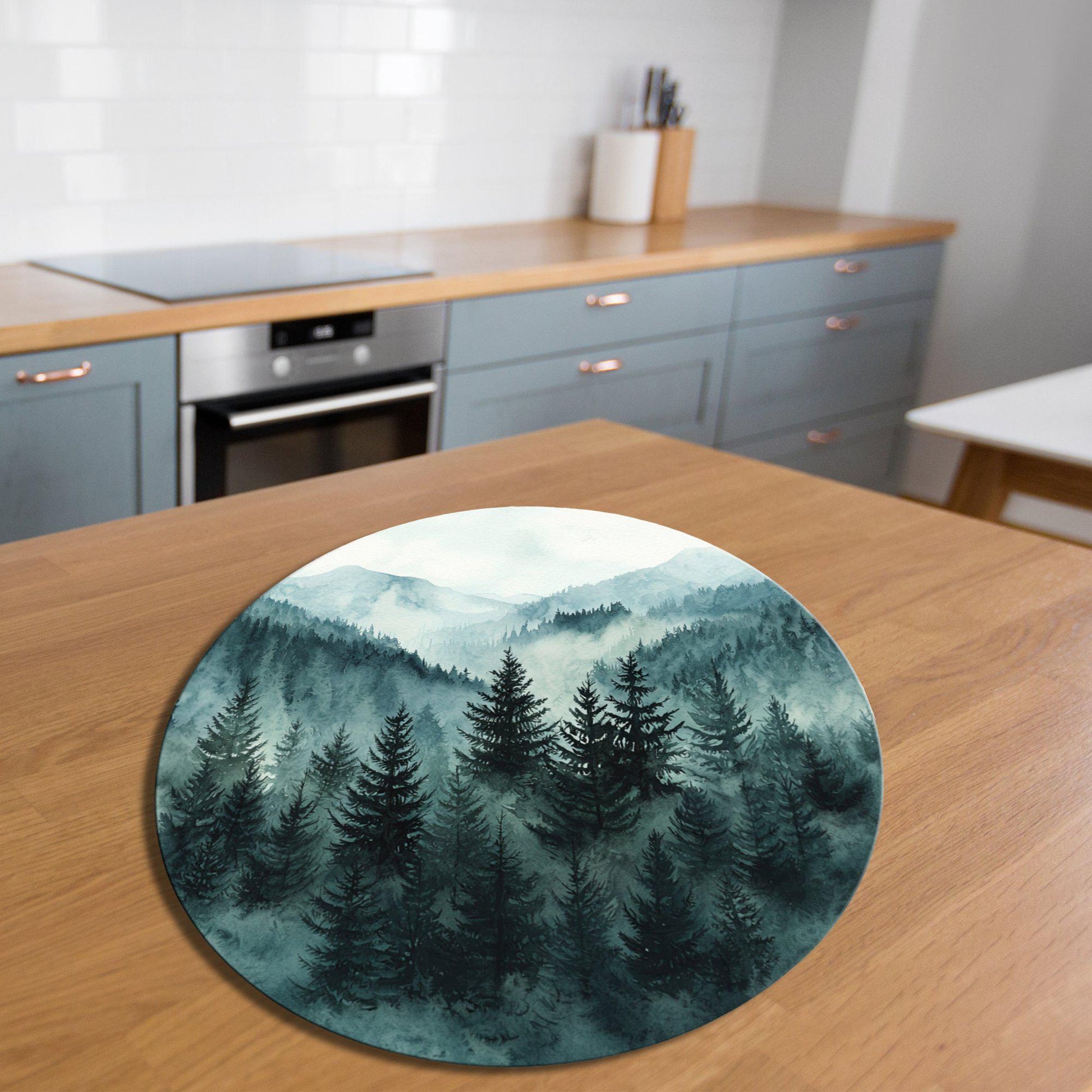Misty Green Forest Hills Glass Cutting Board 8-inch Round Trivet Charcuterie Board Gift for Her Mom Kitchen Decor