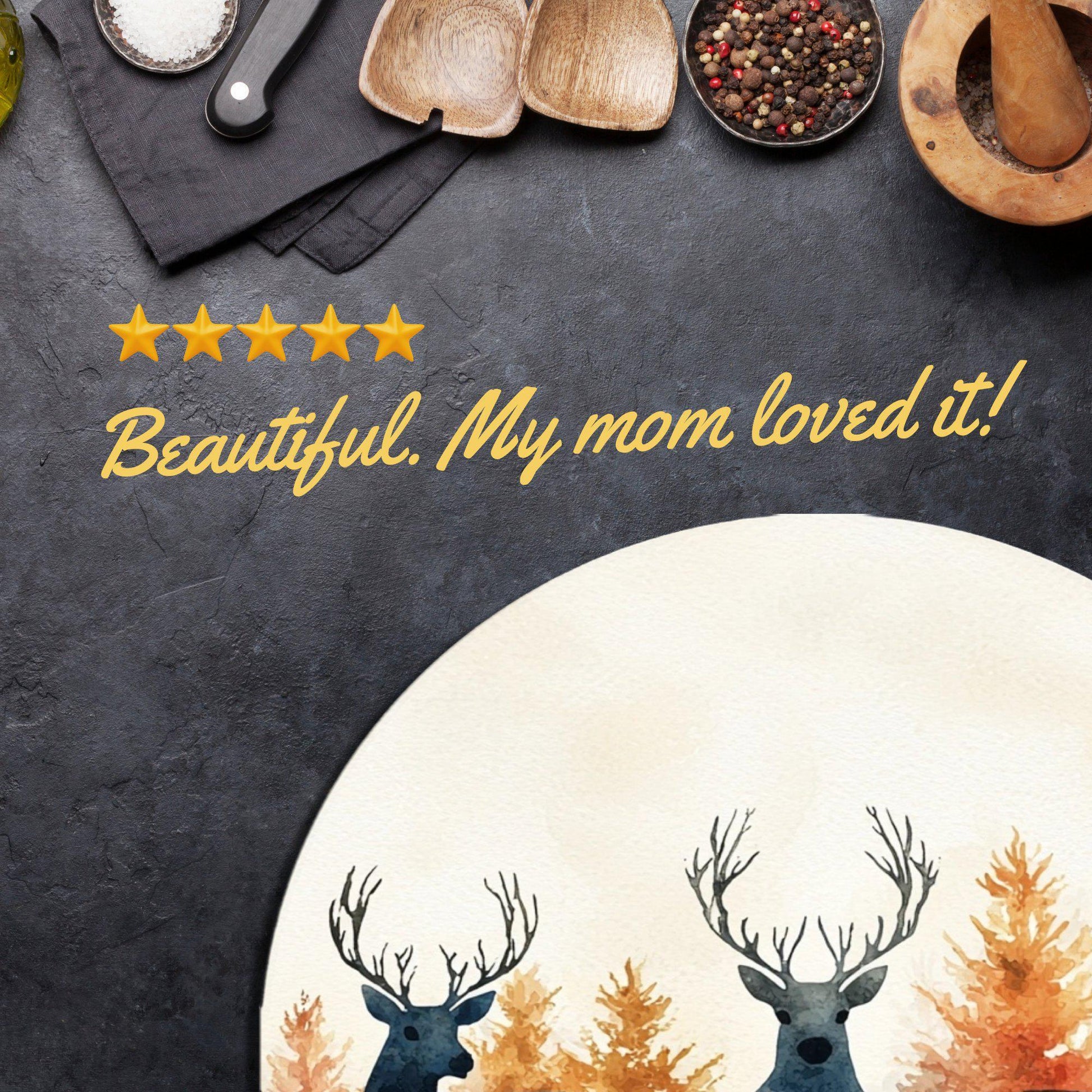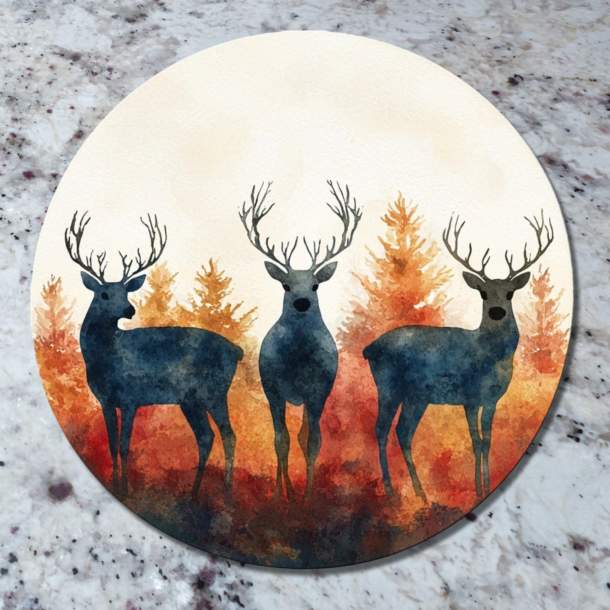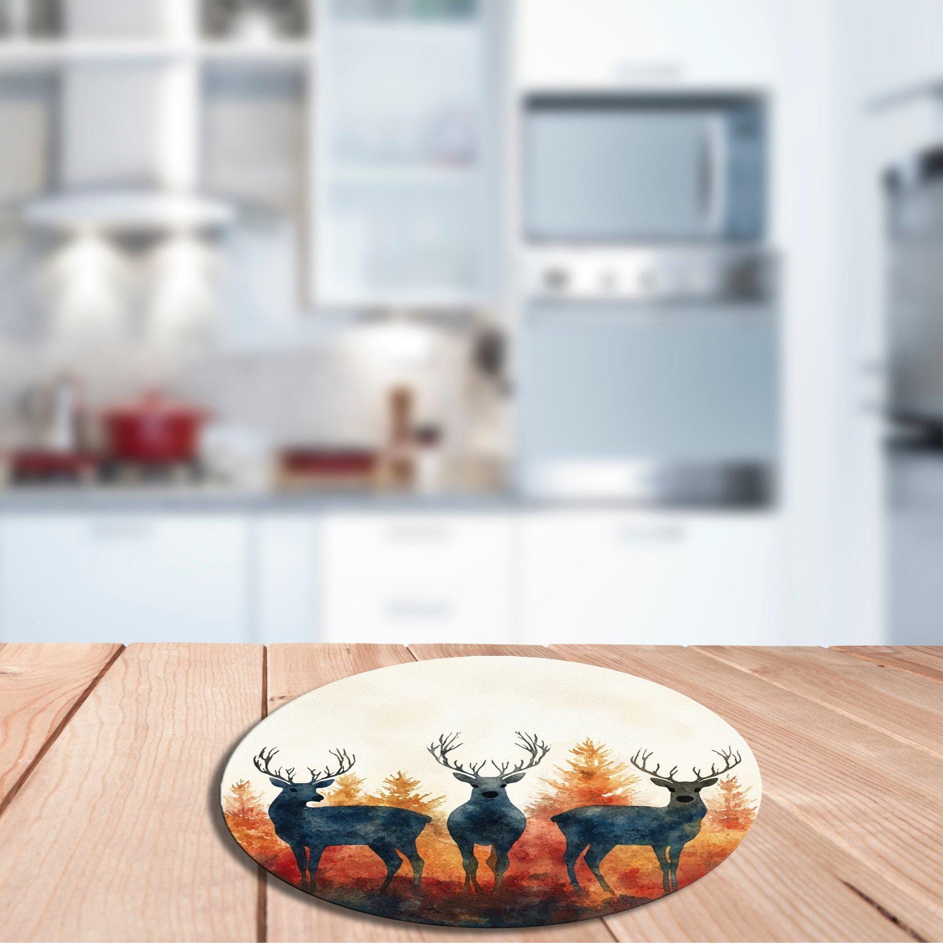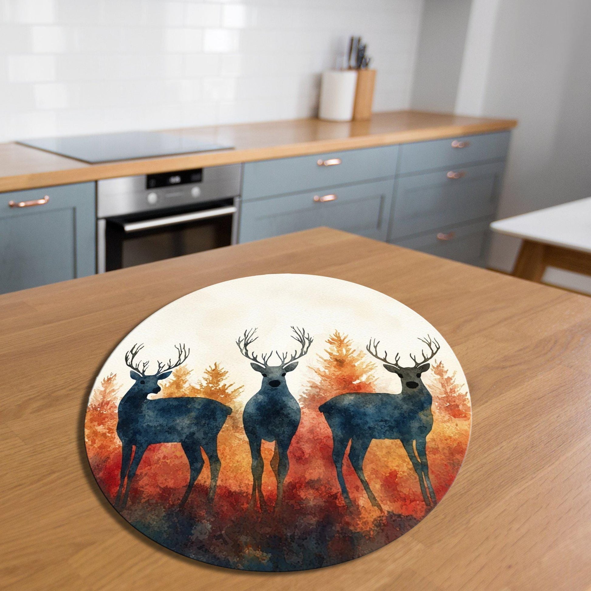 Nordic Deer in Blue and Orange Glass Cutting Board 8-inch Round Trivet Charcuterie Board Gift for Her Mom Kitchen Decor