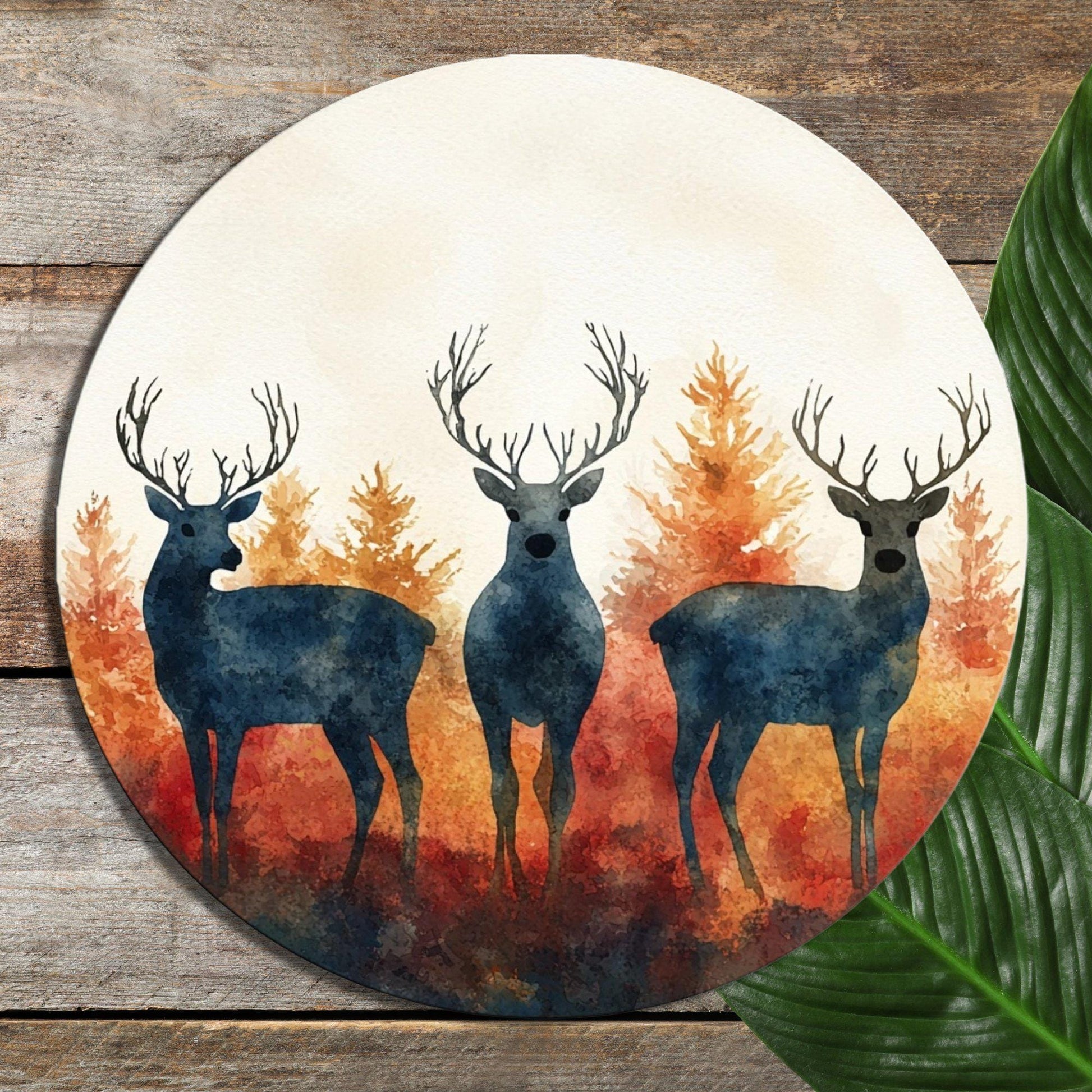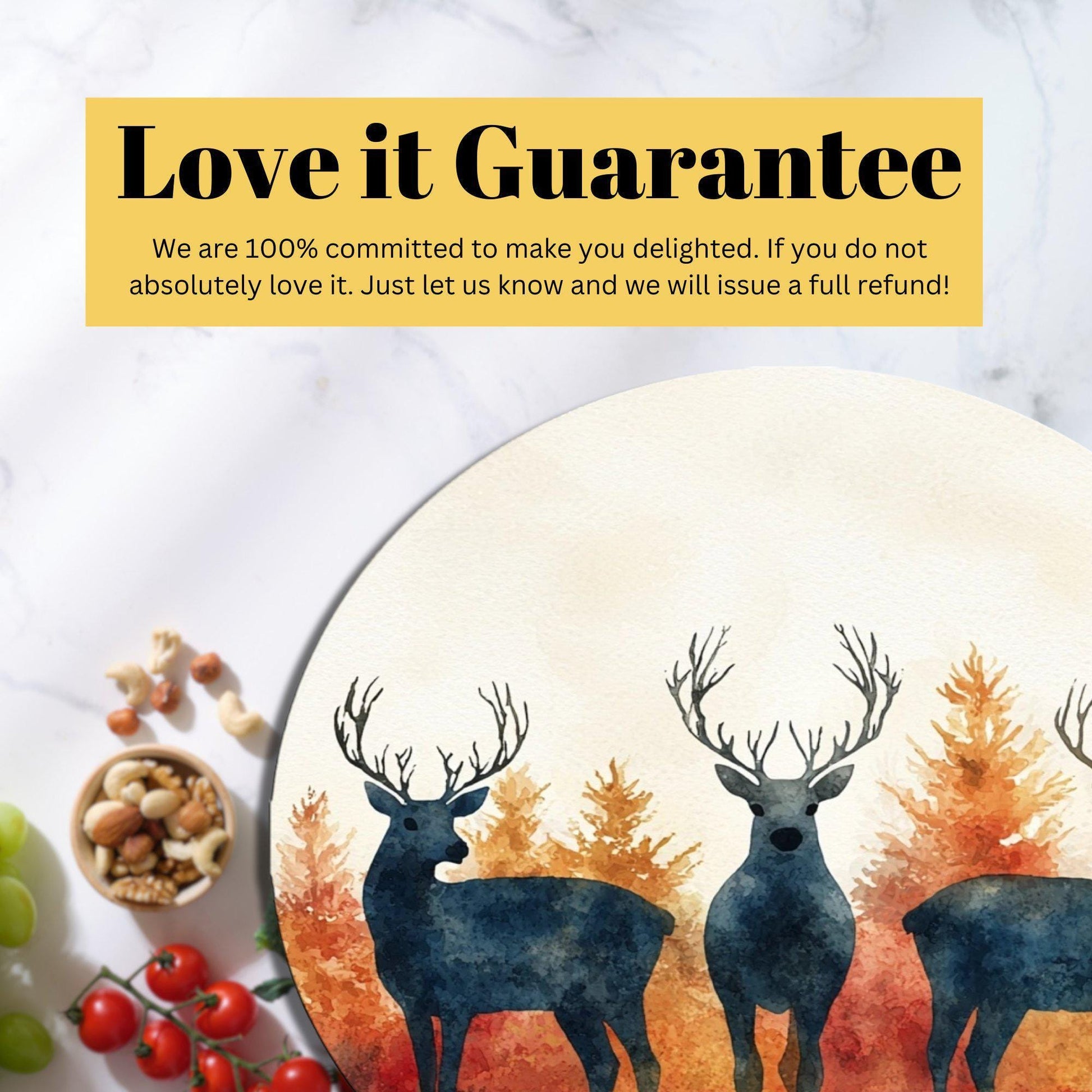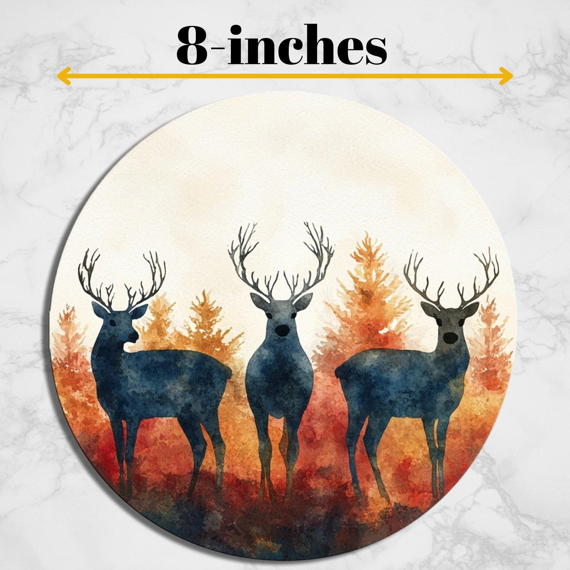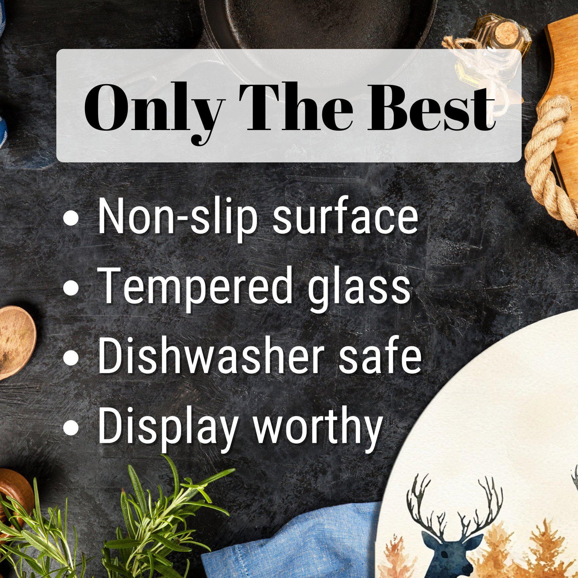 Nordic Deer in Blue and Orange Glass Cutting Board 8-inch Round Trivet Charcuterie Board Gift for Her Mom Kitchen Decor