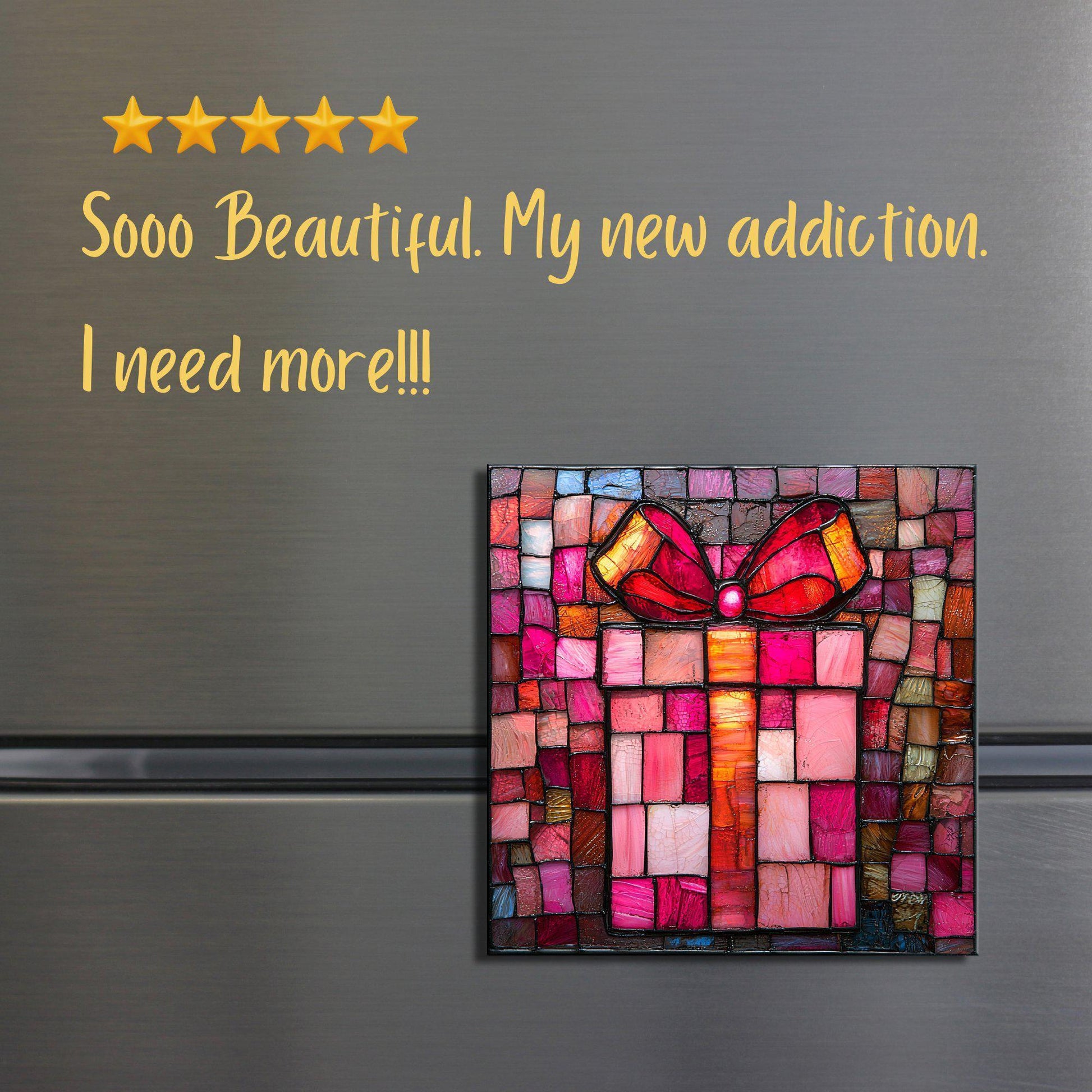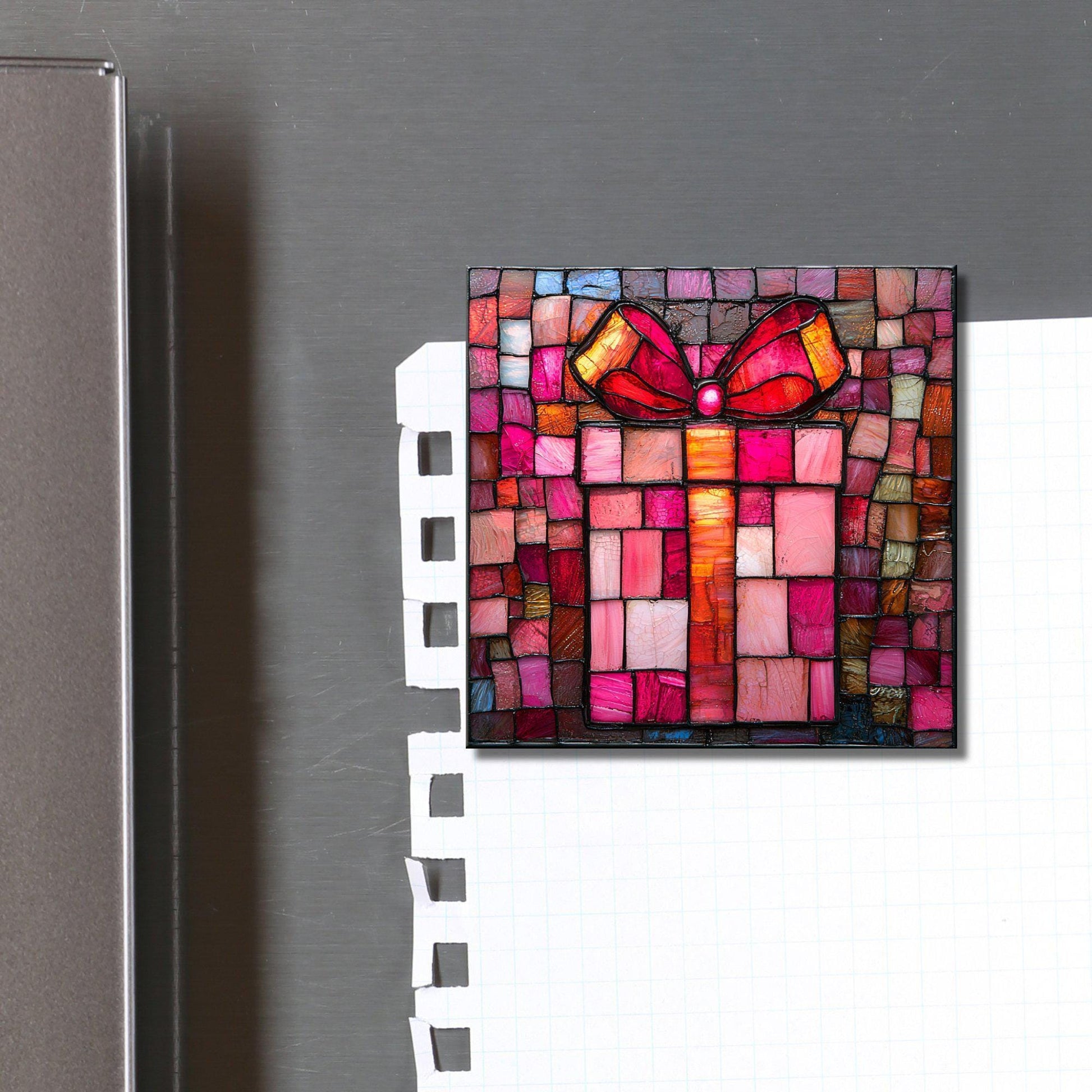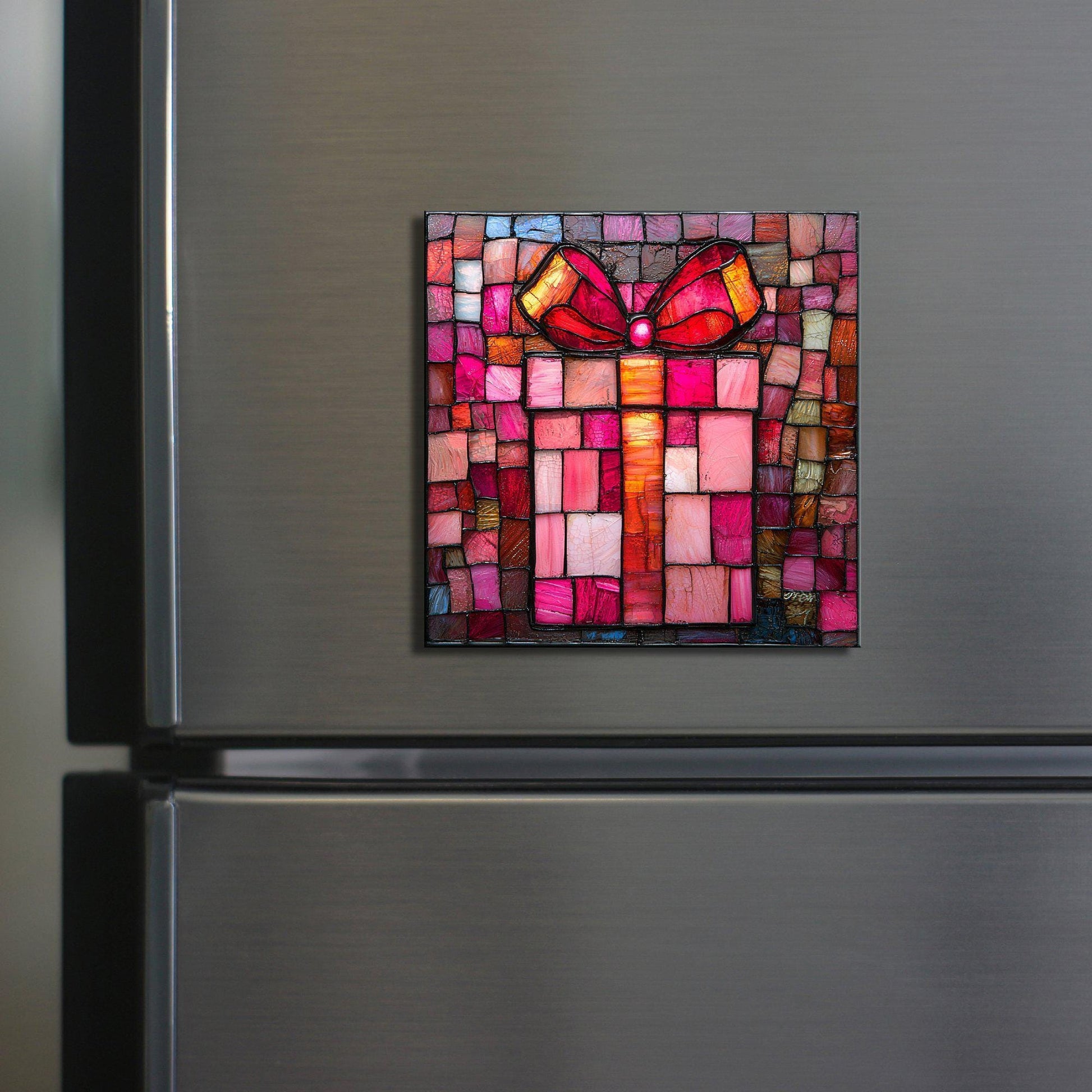 Pink Christmas Presents Fridge Magnet 2-inch Strong Refrigerator Magnet Kitchen Decor Dopamine Ceramic Tile Art Gift for Her fridgescaping
