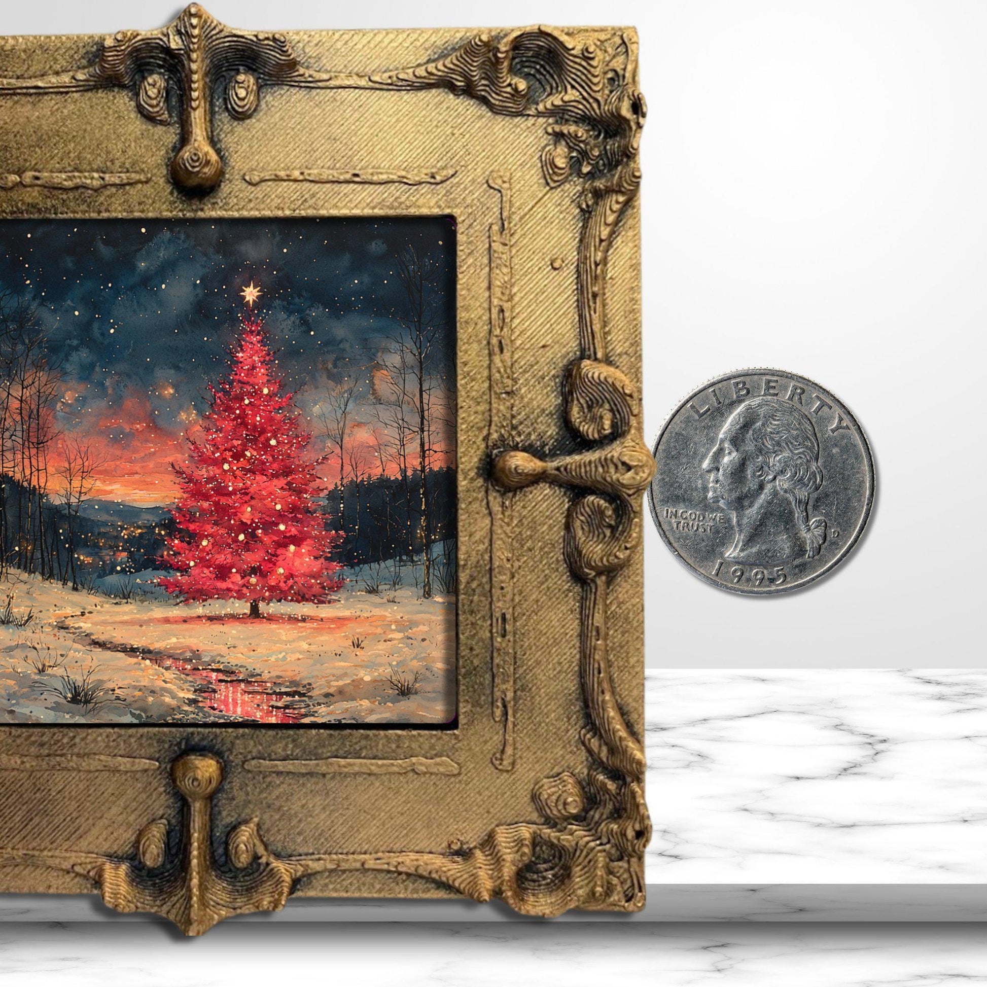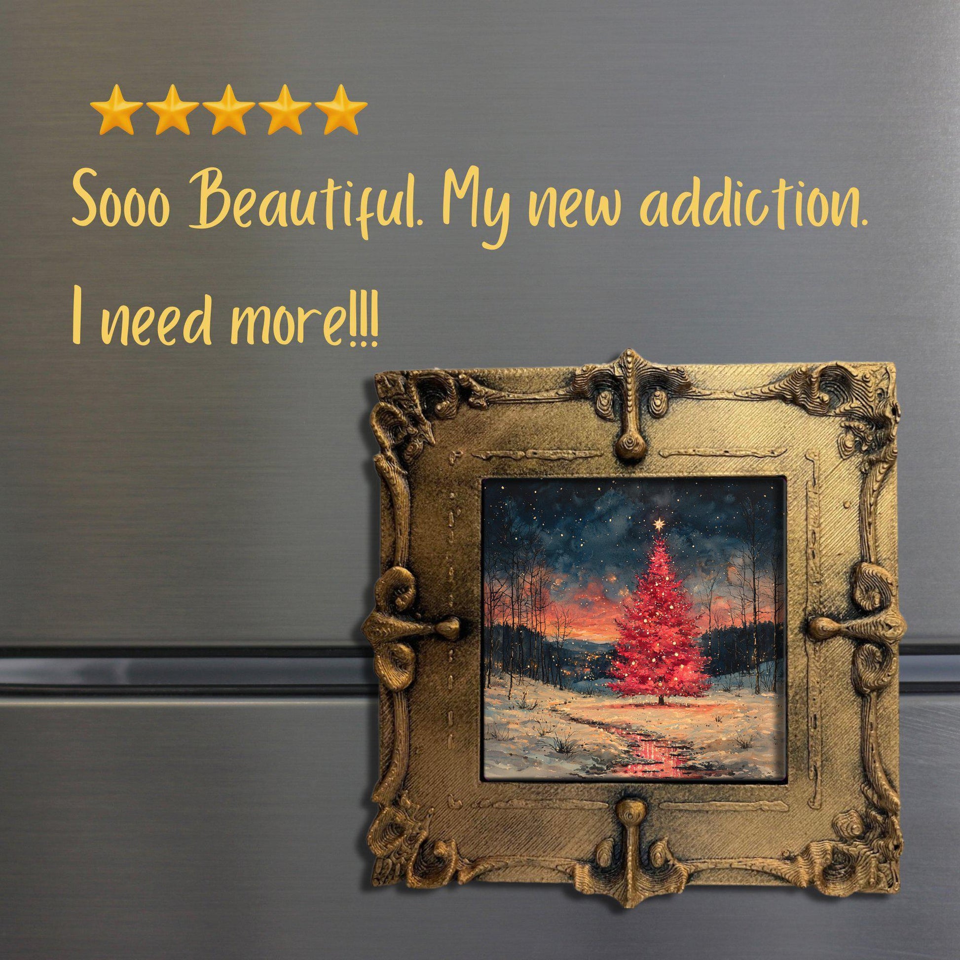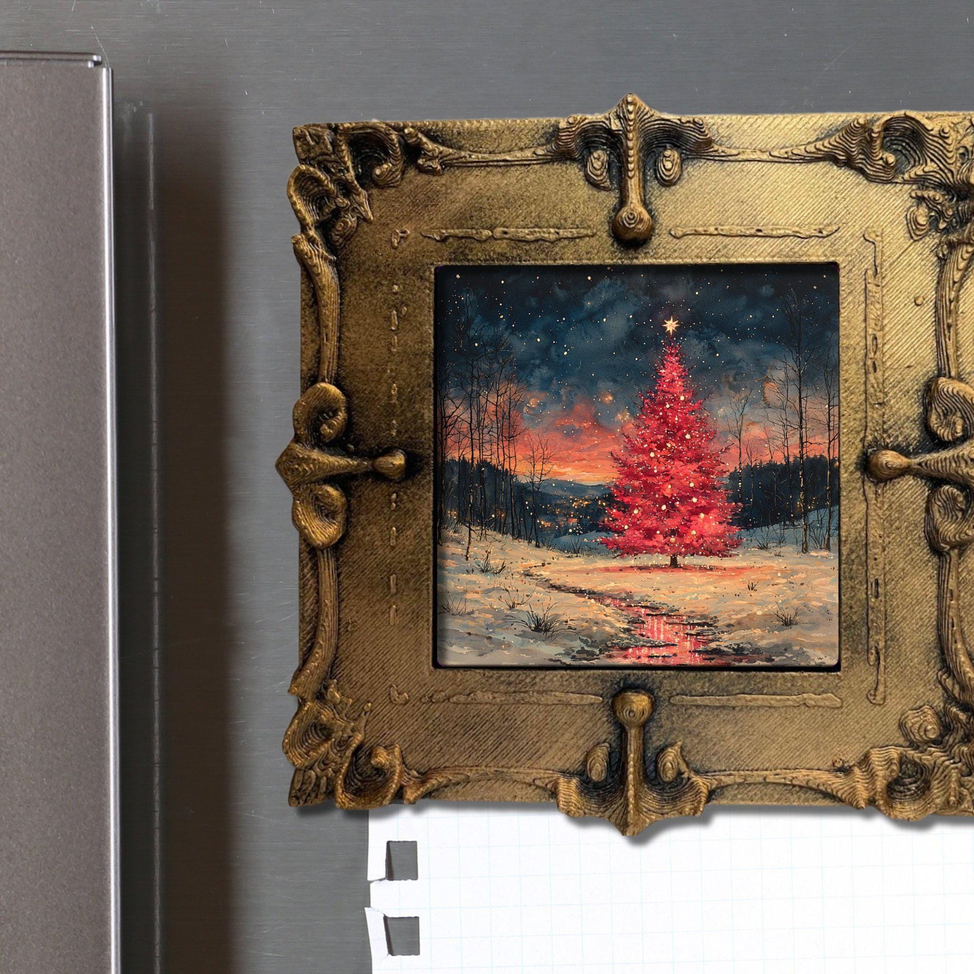 Pink Christmas Tree Gold Framed Refrigerator Magnet, Mini Art, Grand Millennial Style, Artful Kitchen Decor, Gift for Her fridgescaping