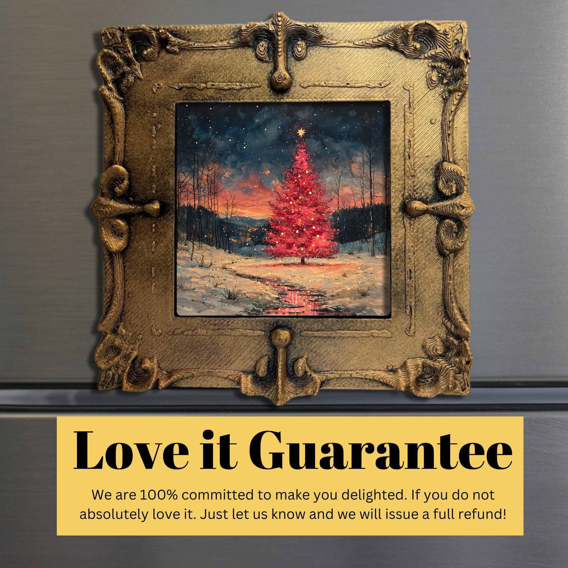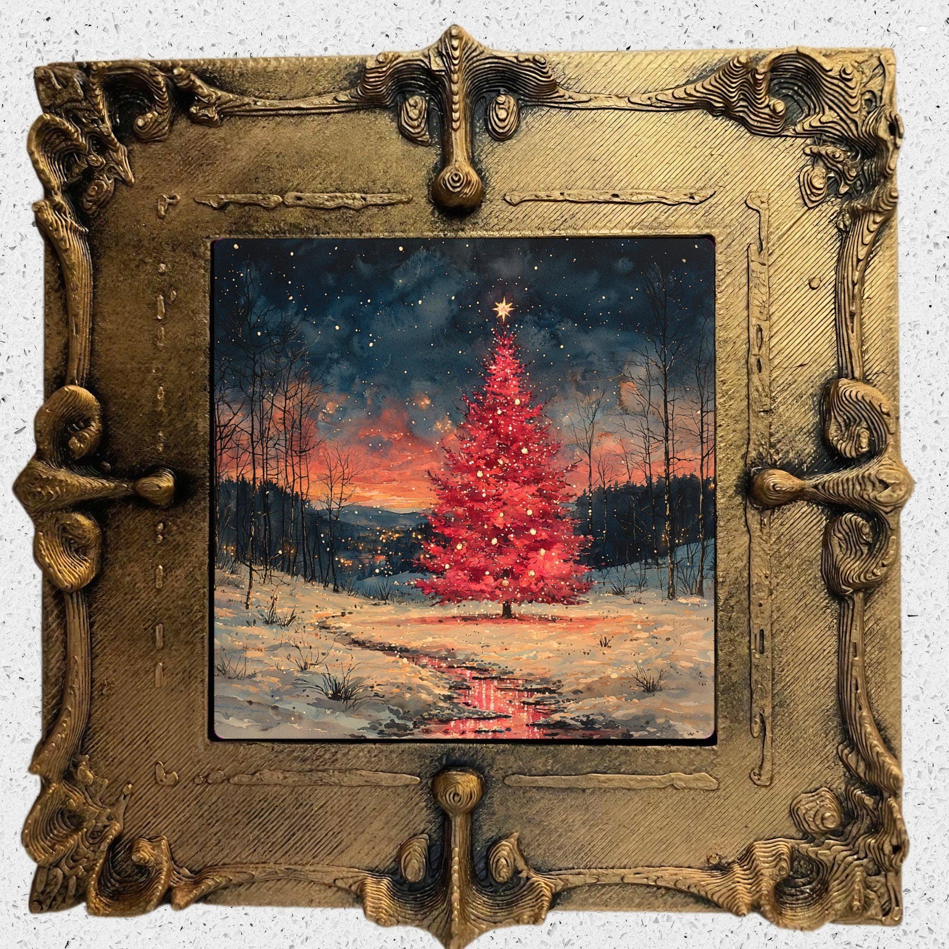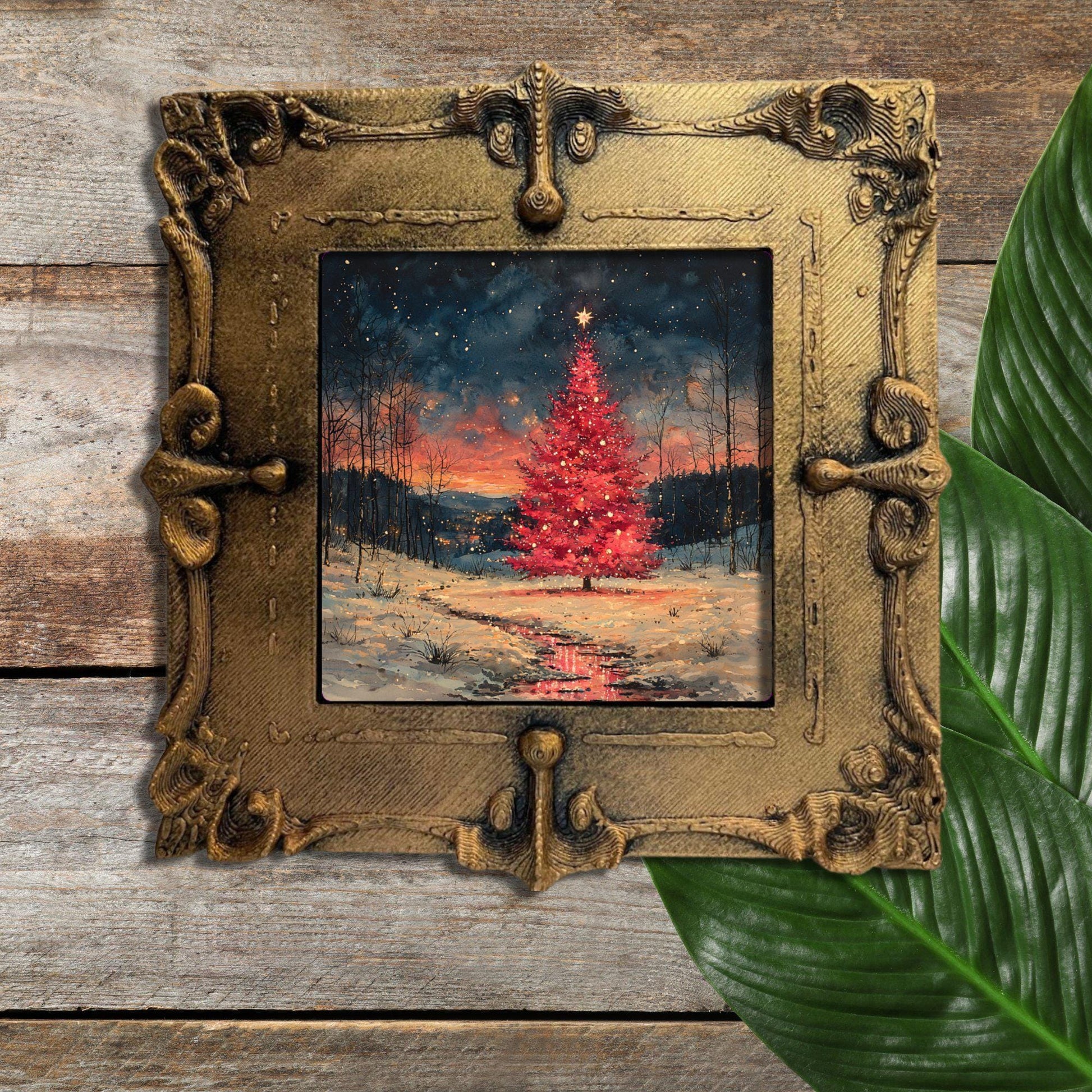Pink Christmas Tree Gold Framed Refrigerator Magnet, Mini Art, Grand Millennial Style, Artful Kitchen Decor, Gift for Her fridgescaping
