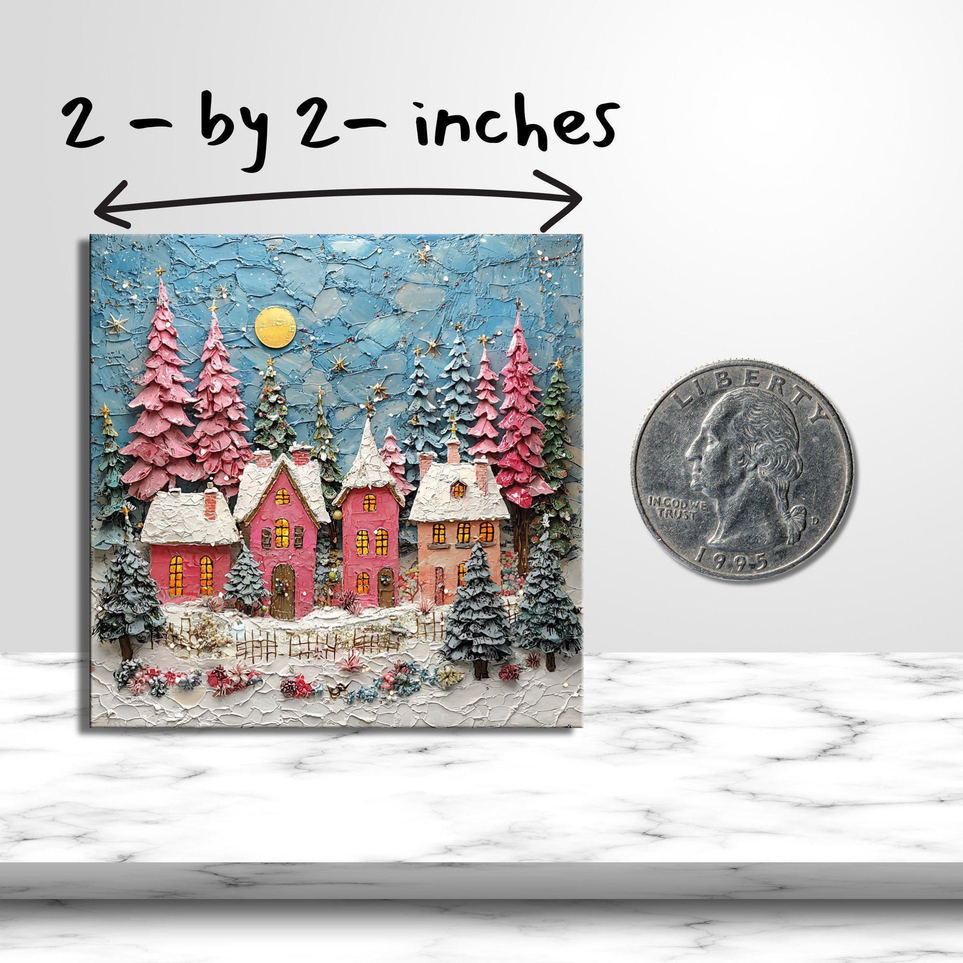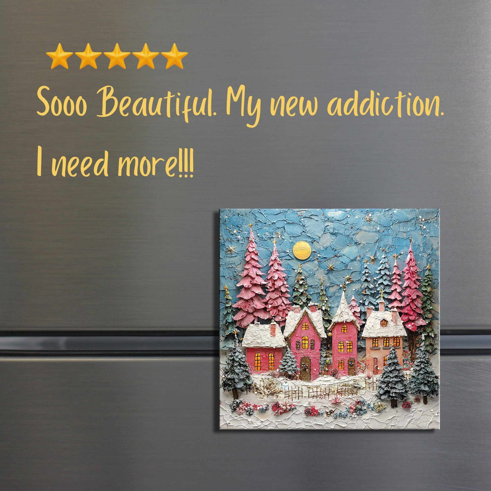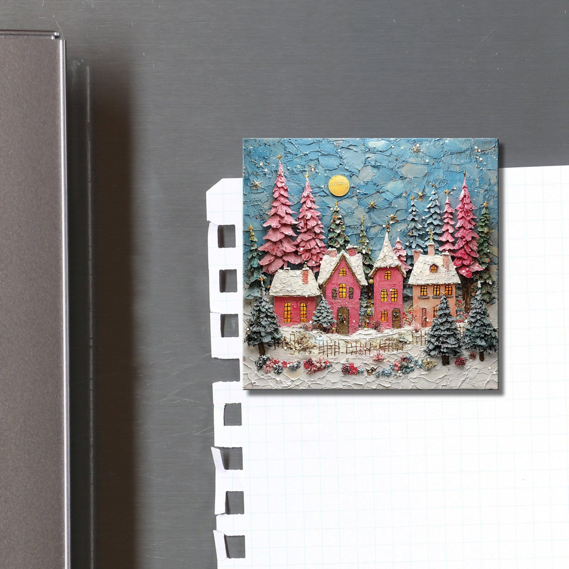 Pink Christmas Village Fridge Magnet 2-inch Strong Refrigerator Magnet Kitchen Decor Dopamine Ceramic Tile Art Gift for Her fridgescaping